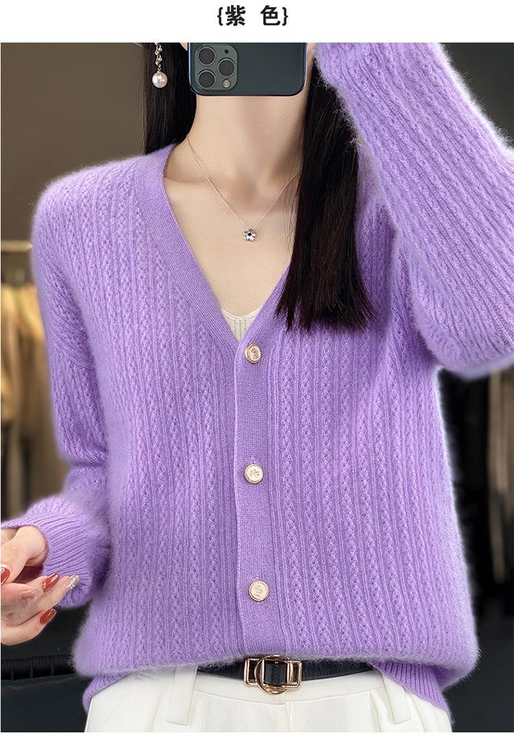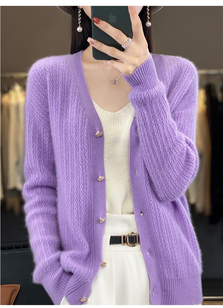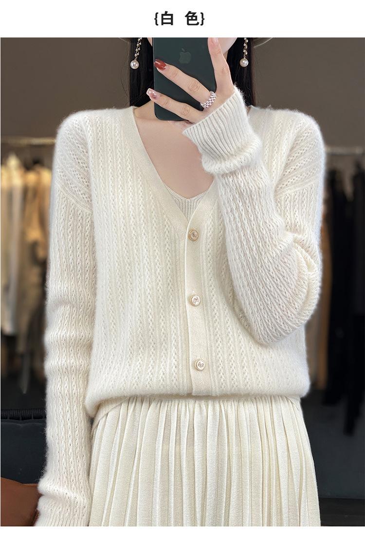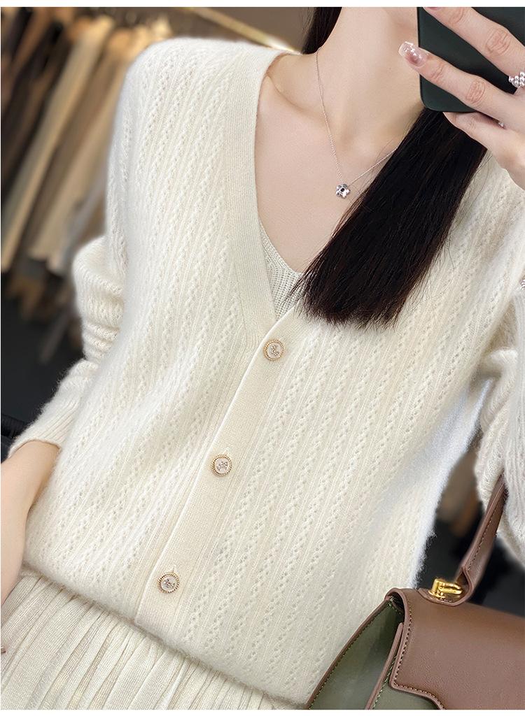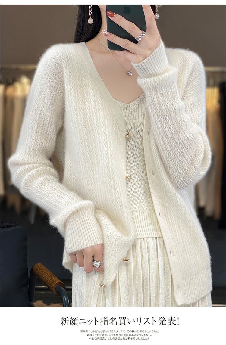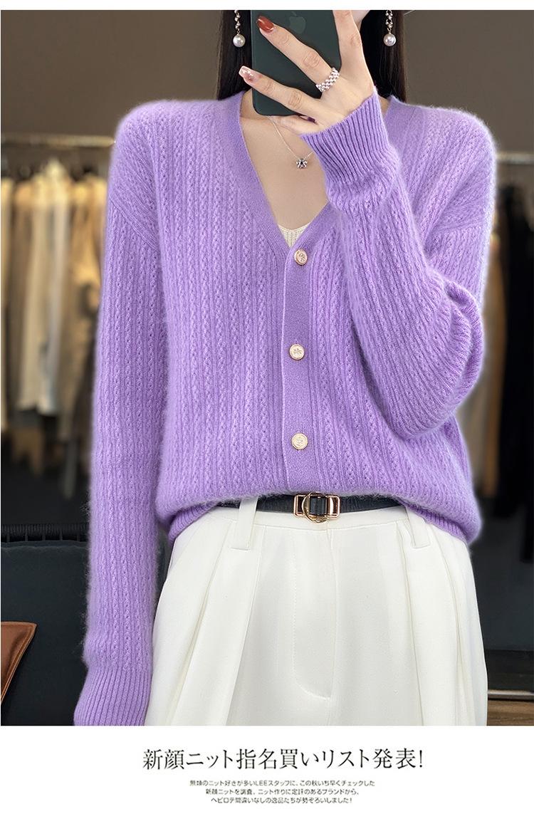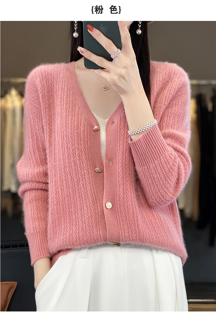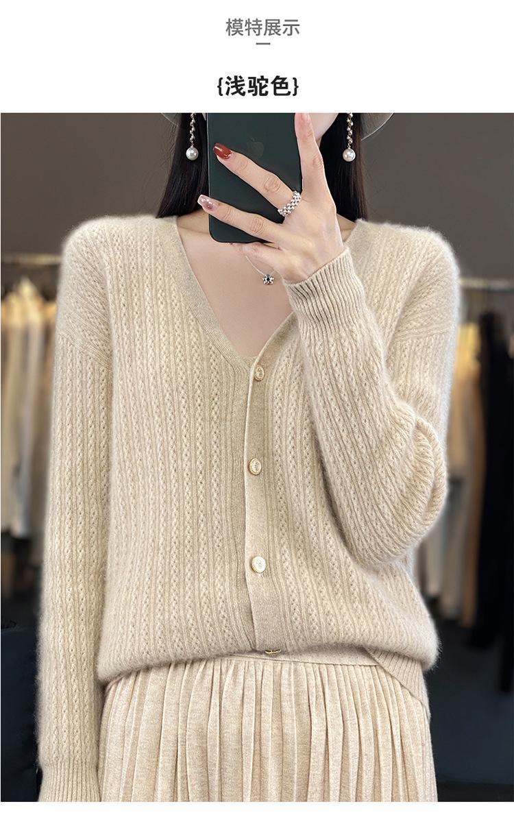 Cárdigan de lana pura para mujer, suéter holgado torcido con cuello en V, abrigo informal de moda de punto, nuevo otoño e invierno