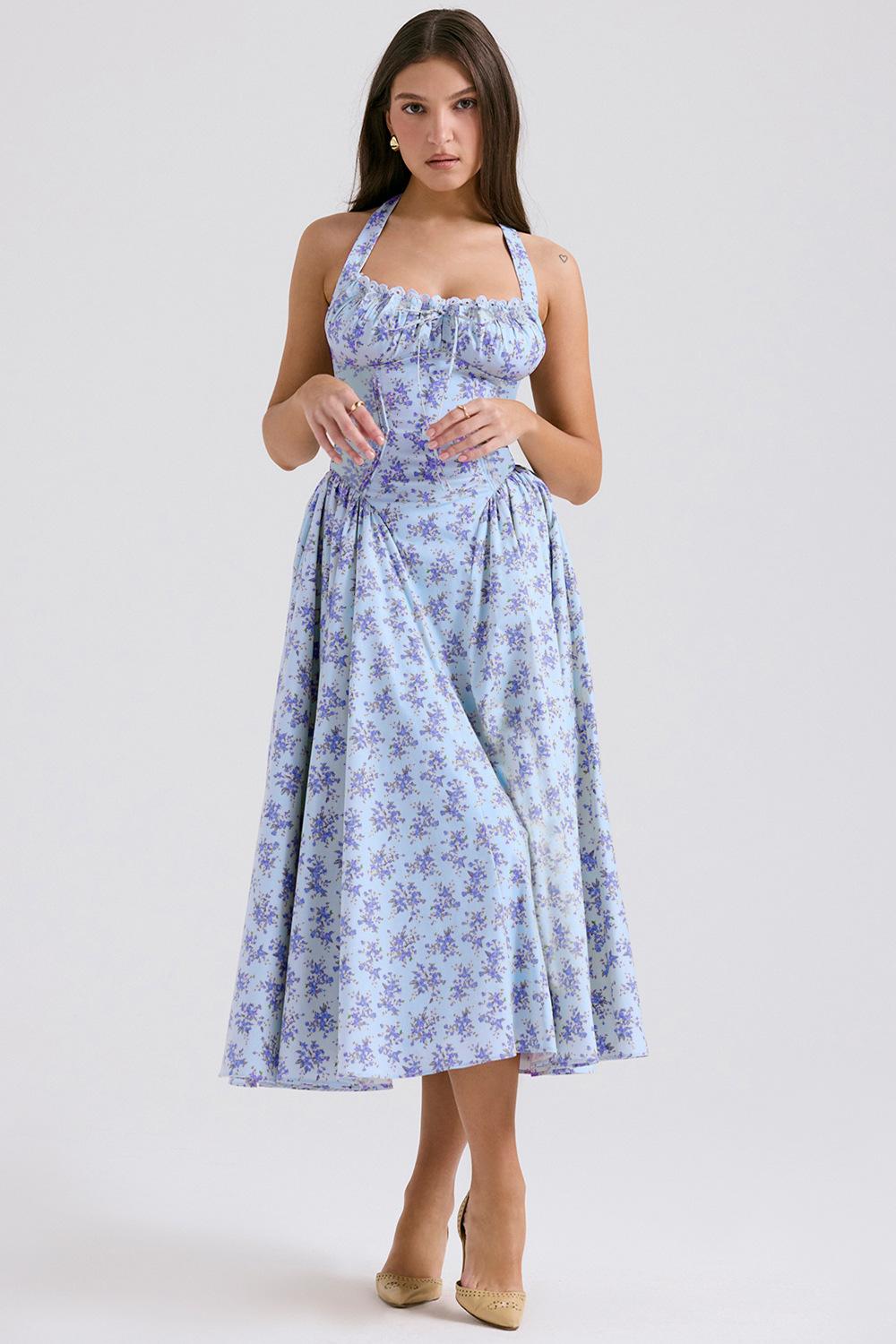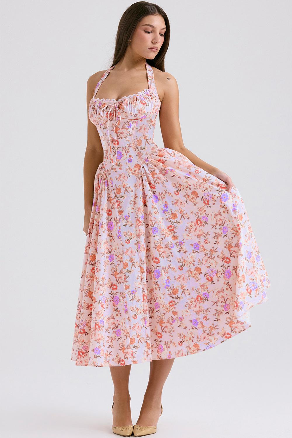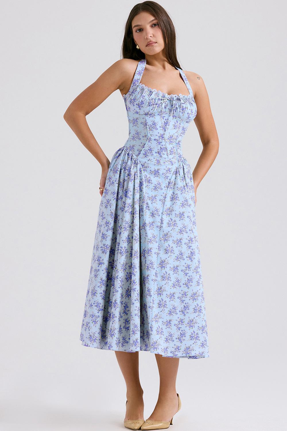 Vestido largo ajustado de verano 2025, estilo europeo y americano, con cuello estampado y encaje.