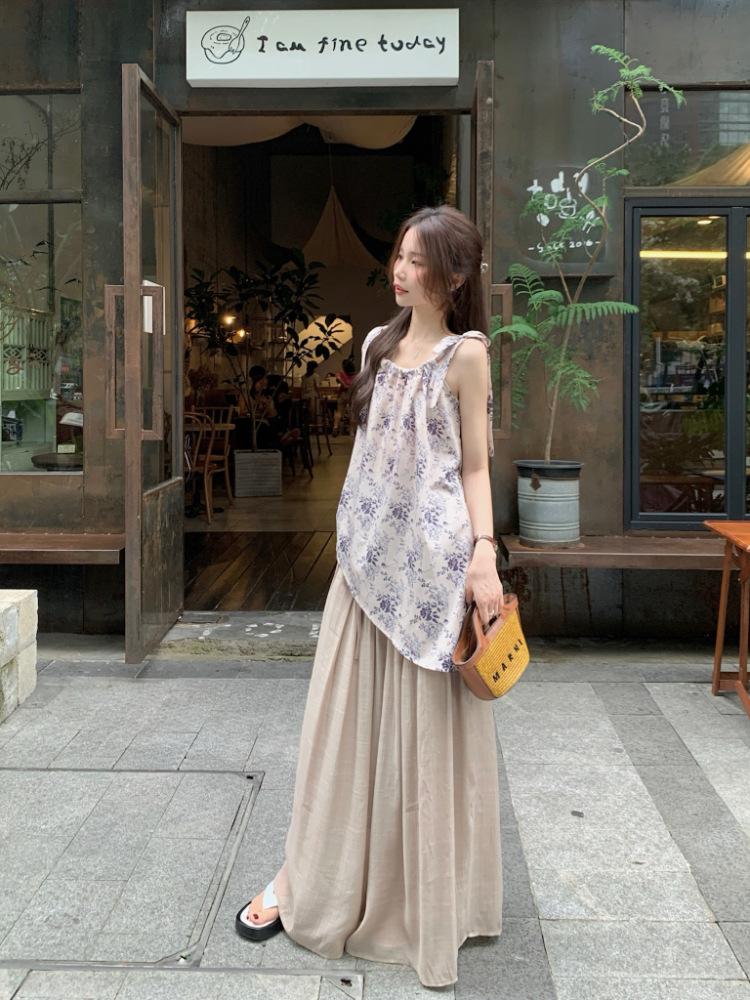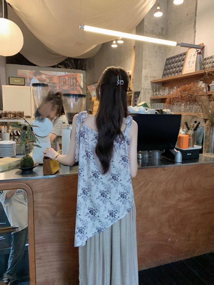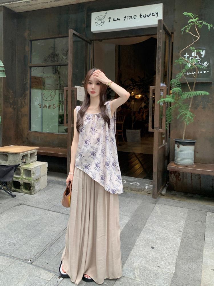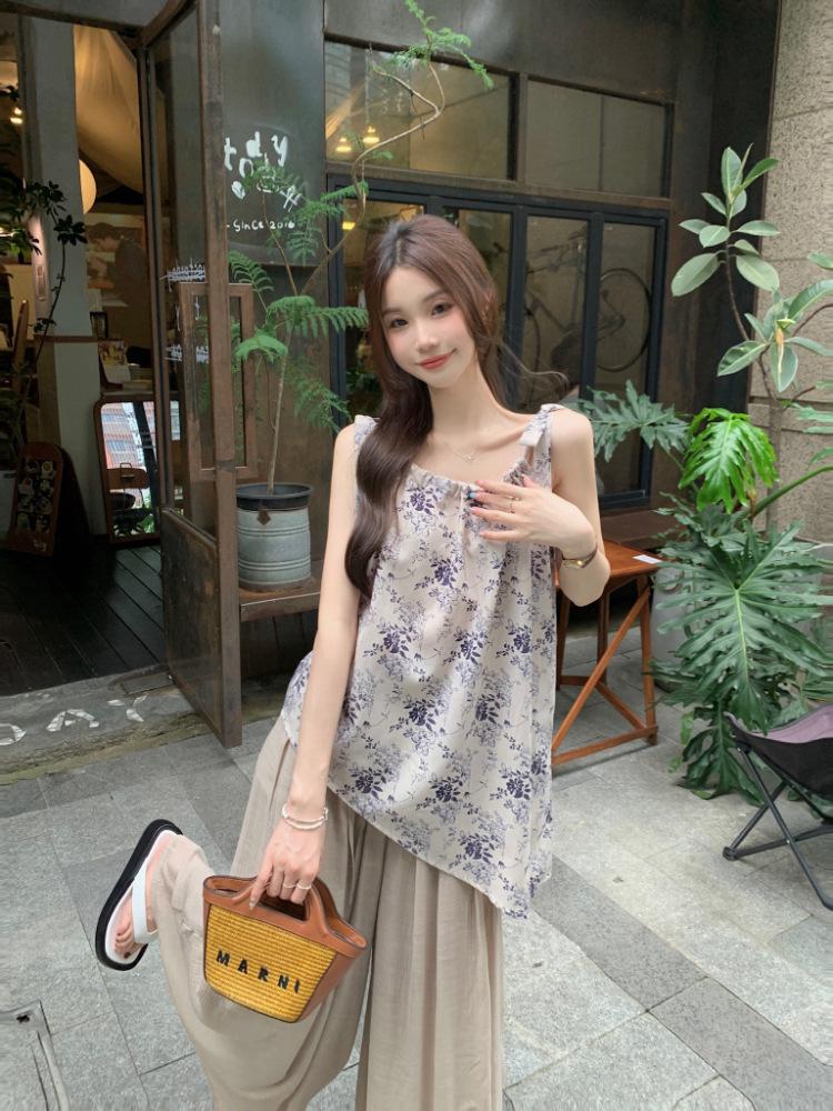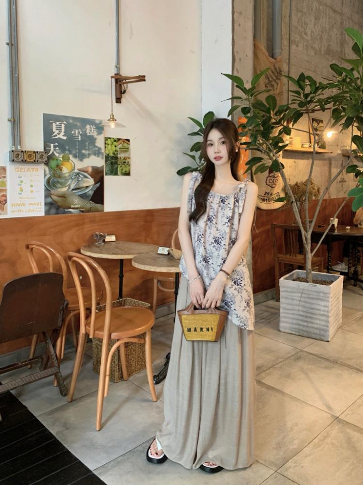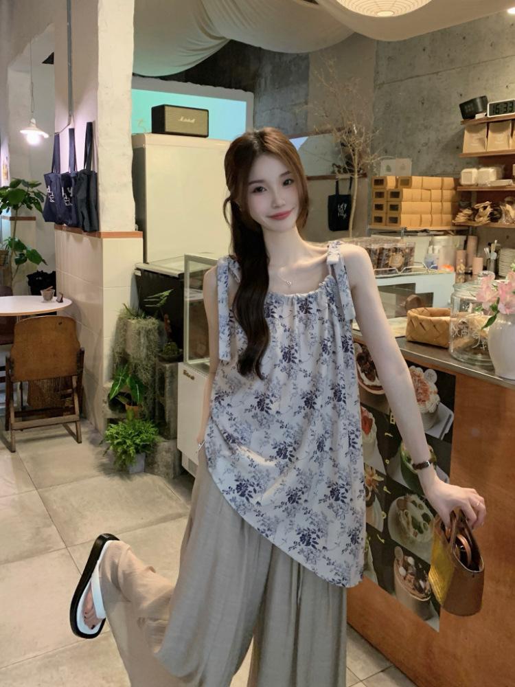 Pantalones largos de pierna ancha con encaje floral estilo coreano, holgados, de corte irregular, con tirantes, combinables, 65594