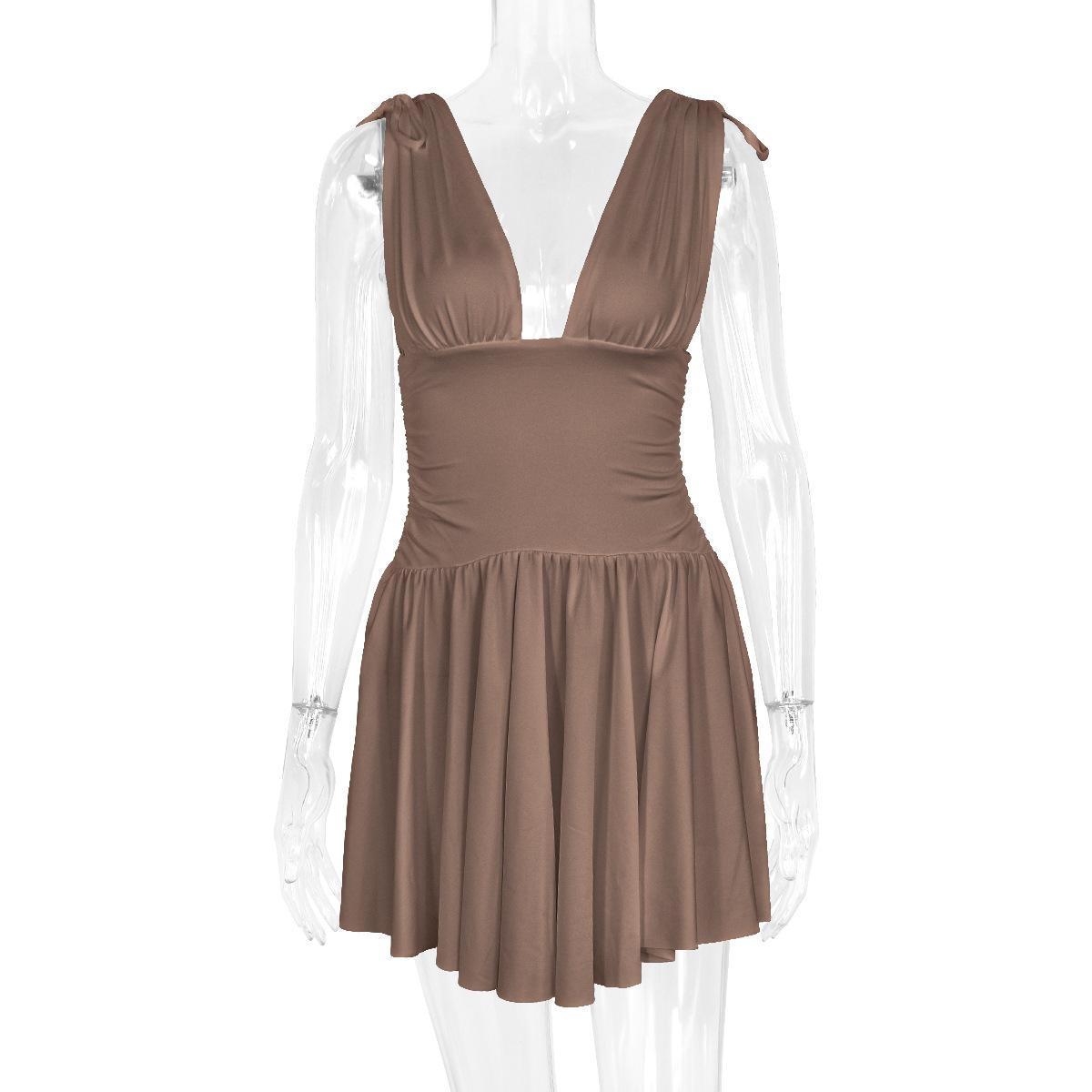 2024 novo vestido transfronteiriço com decote em V profundo e sem mangas