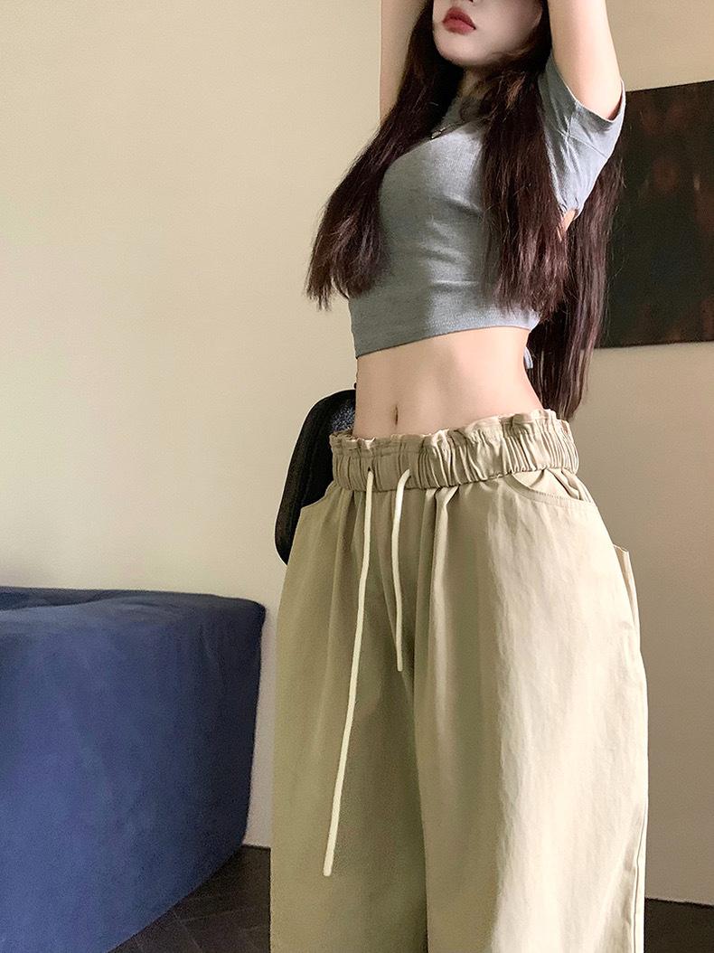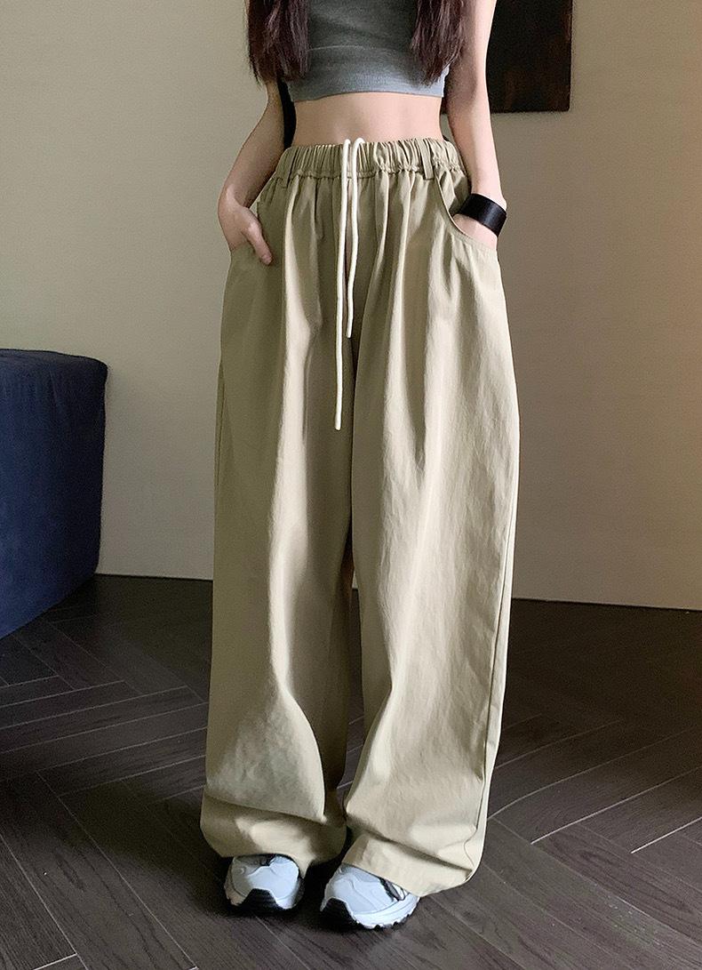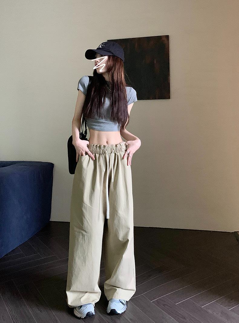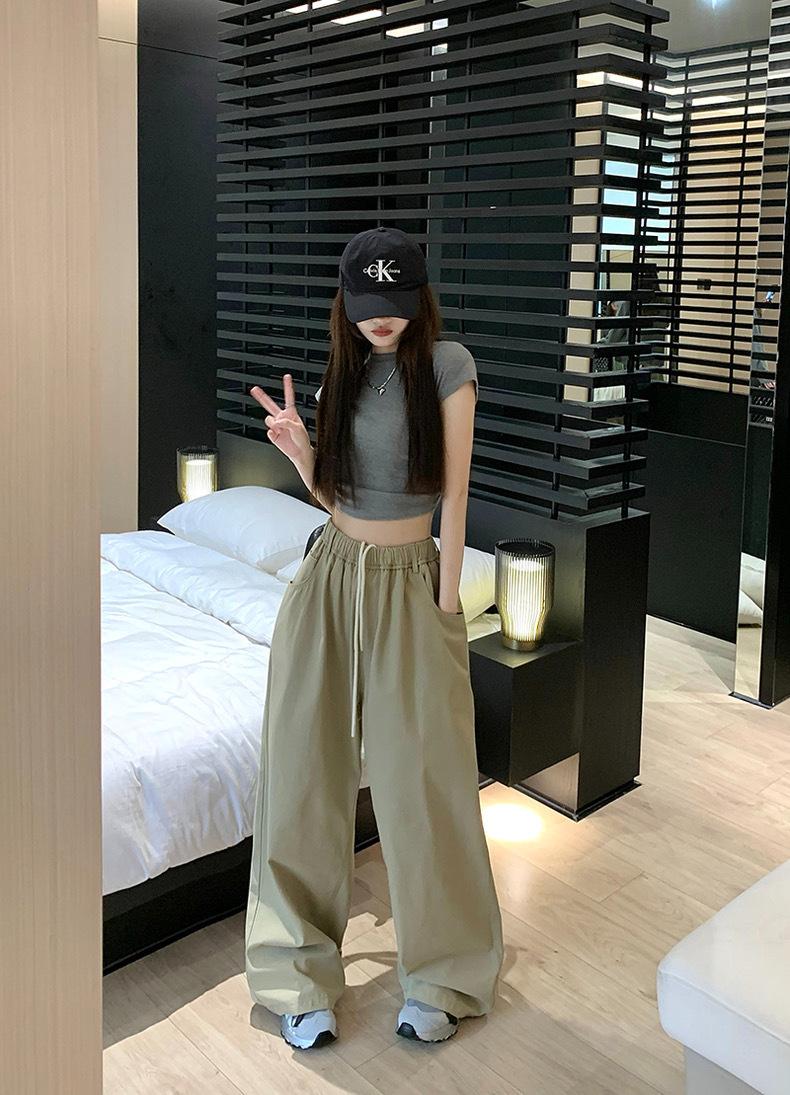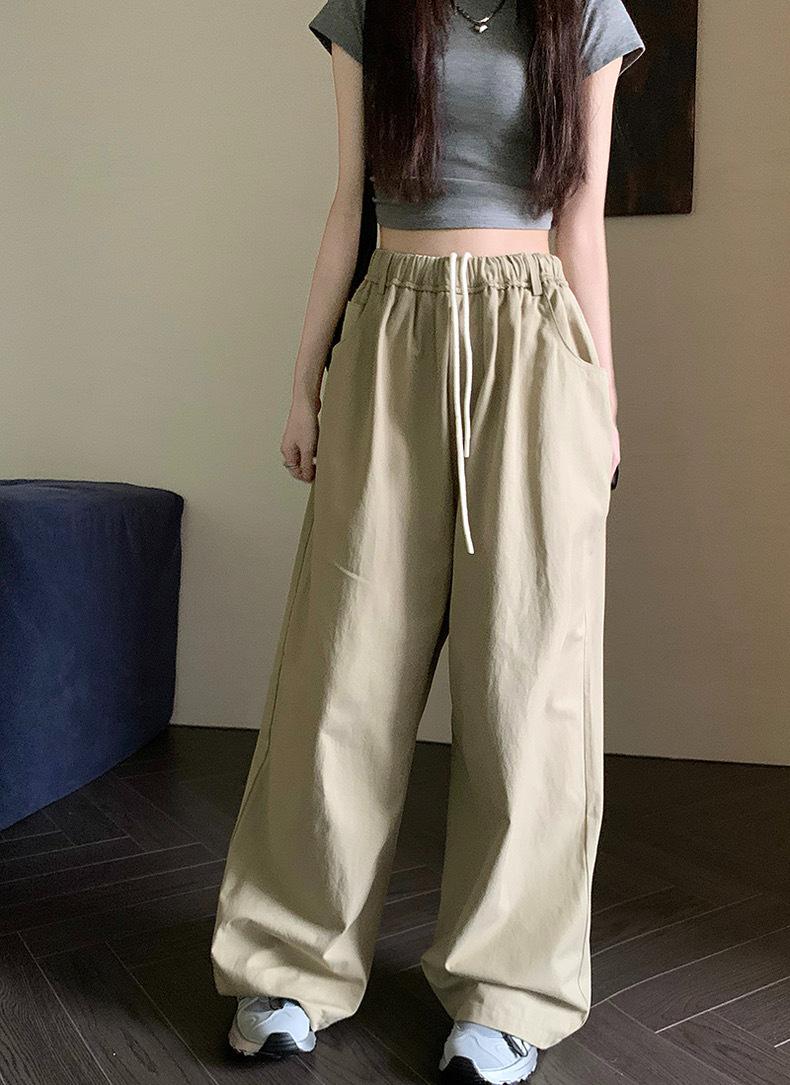 Pantalones Casuales Adelgazantes de Cintura Alta con Sentido del Diseño Estilo Coreano para Mujer Primavera y Verano 2024 Nuevos Pantalones Holgados de Pierna Ancha que Combinan con Todo