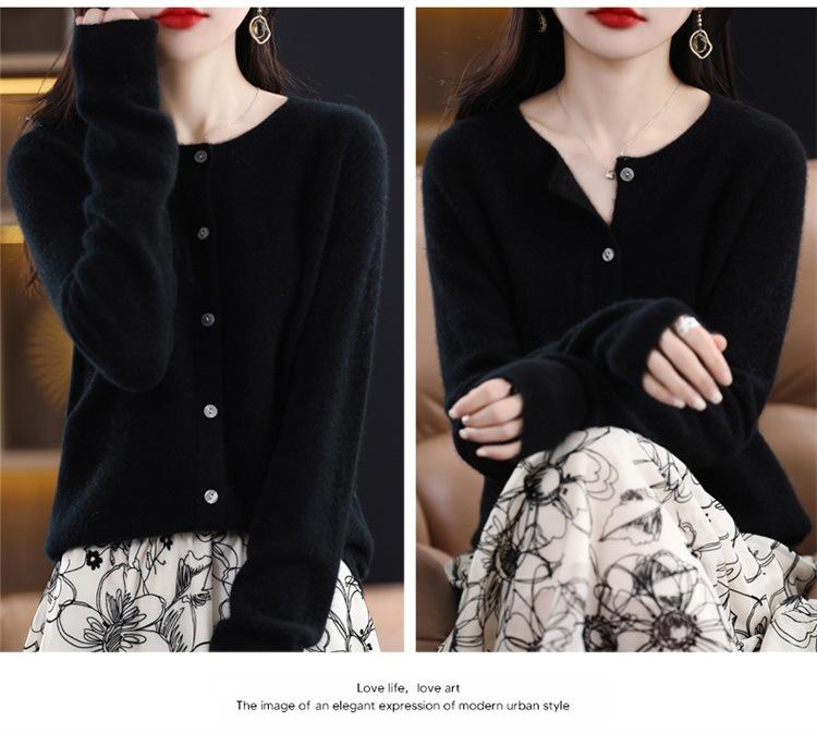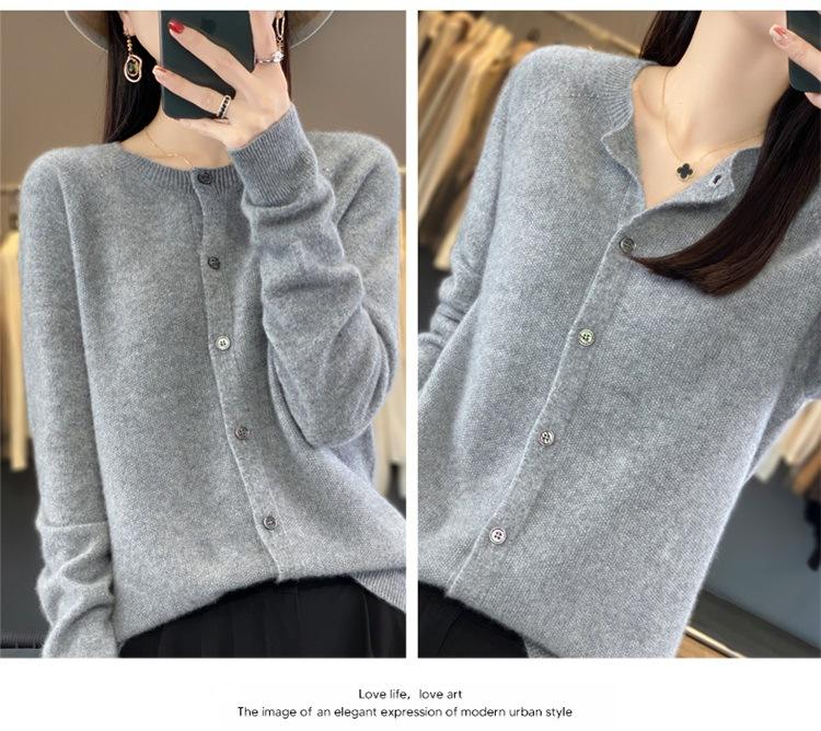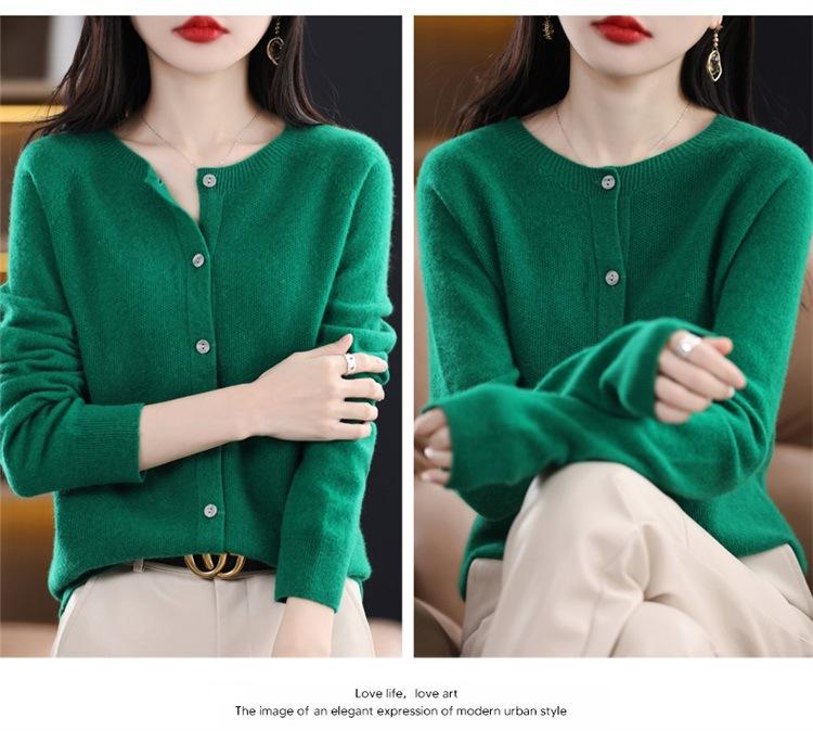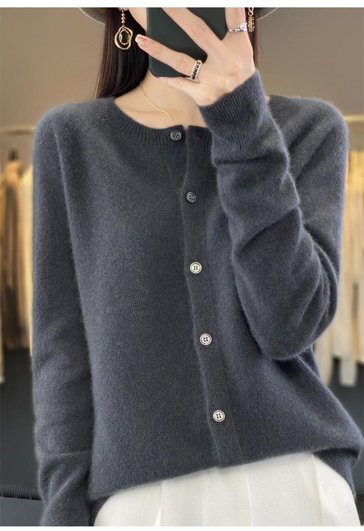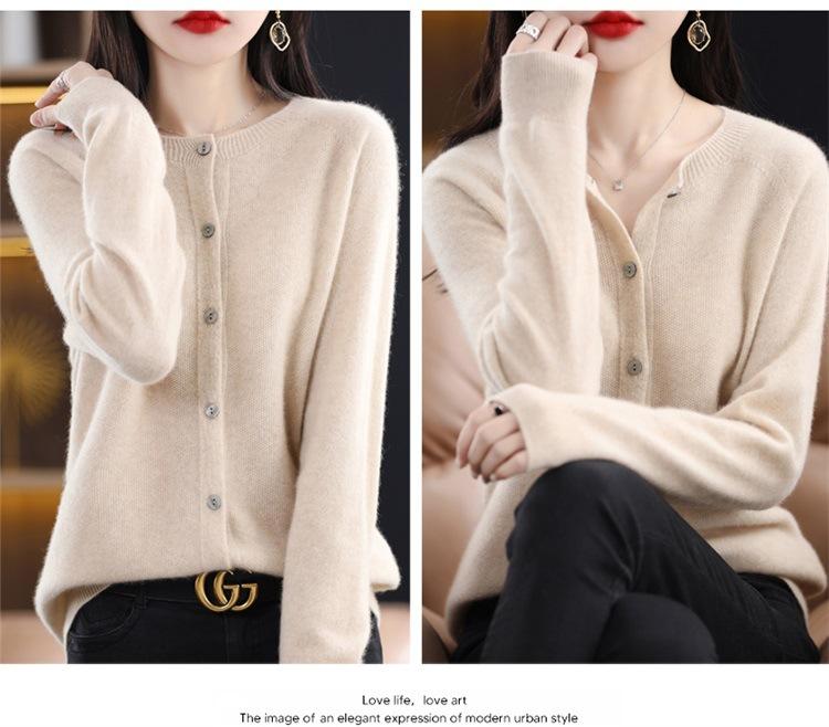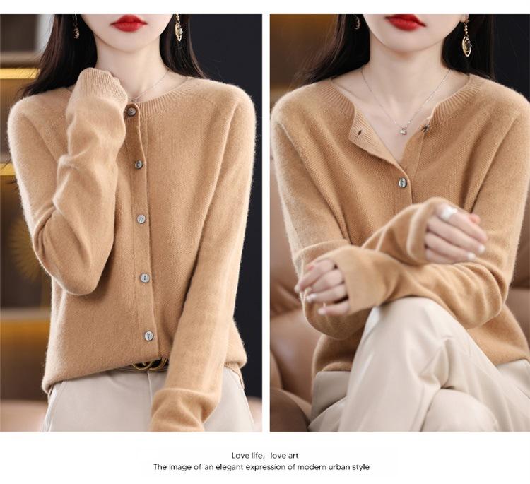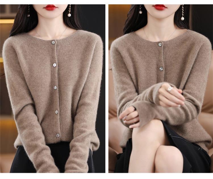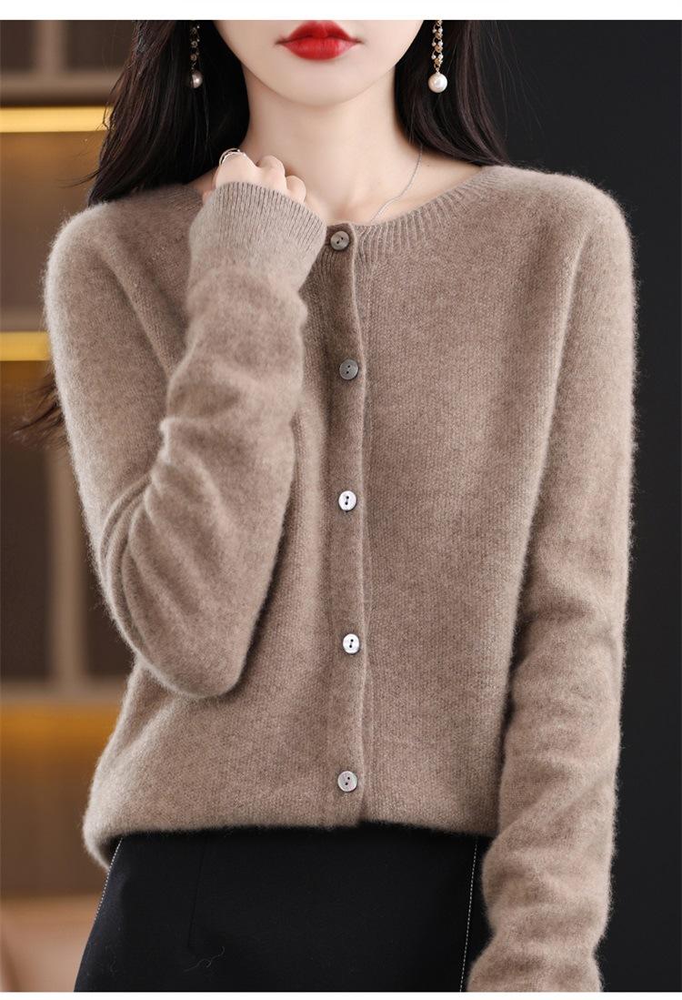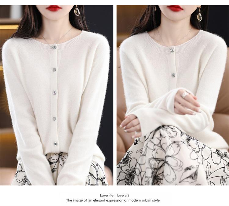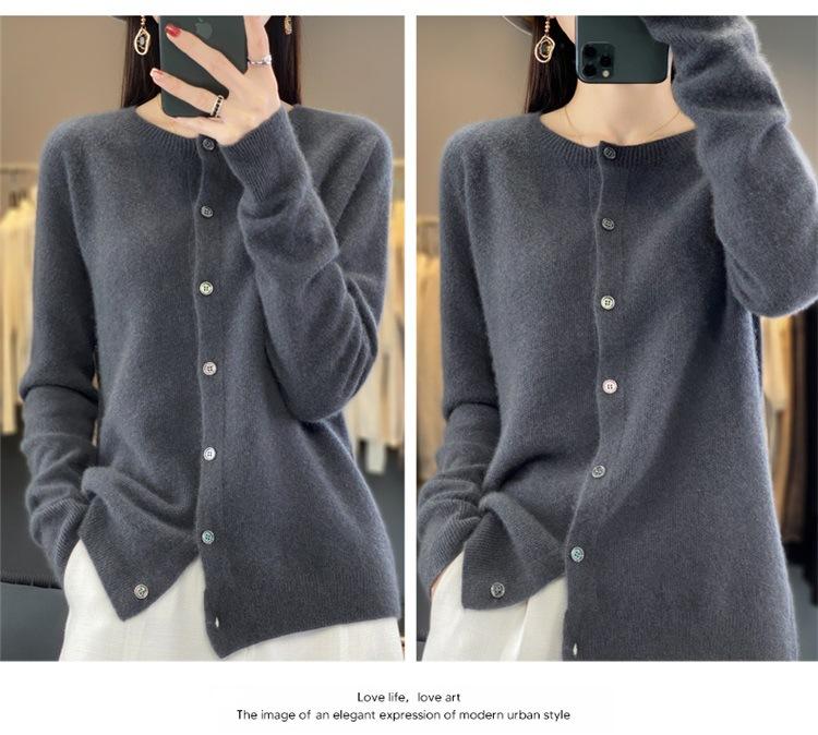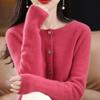 Cárdigan de Lana Fina para Mujer Corto Estilo Coreano Cuello Redondo Tejido 2024 Otoño e Invierno Nuevo Chaqueta Suéter Estilo Coreano