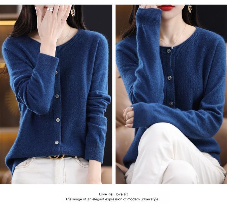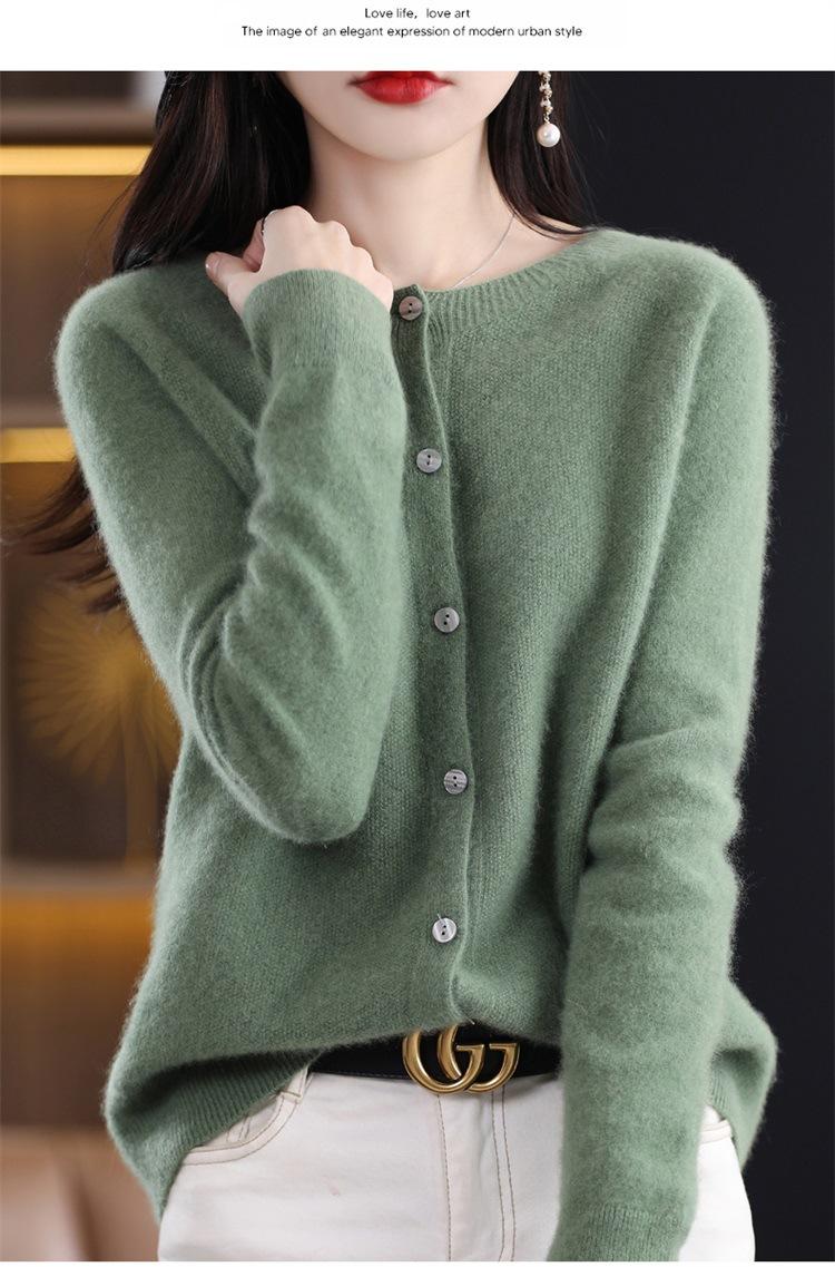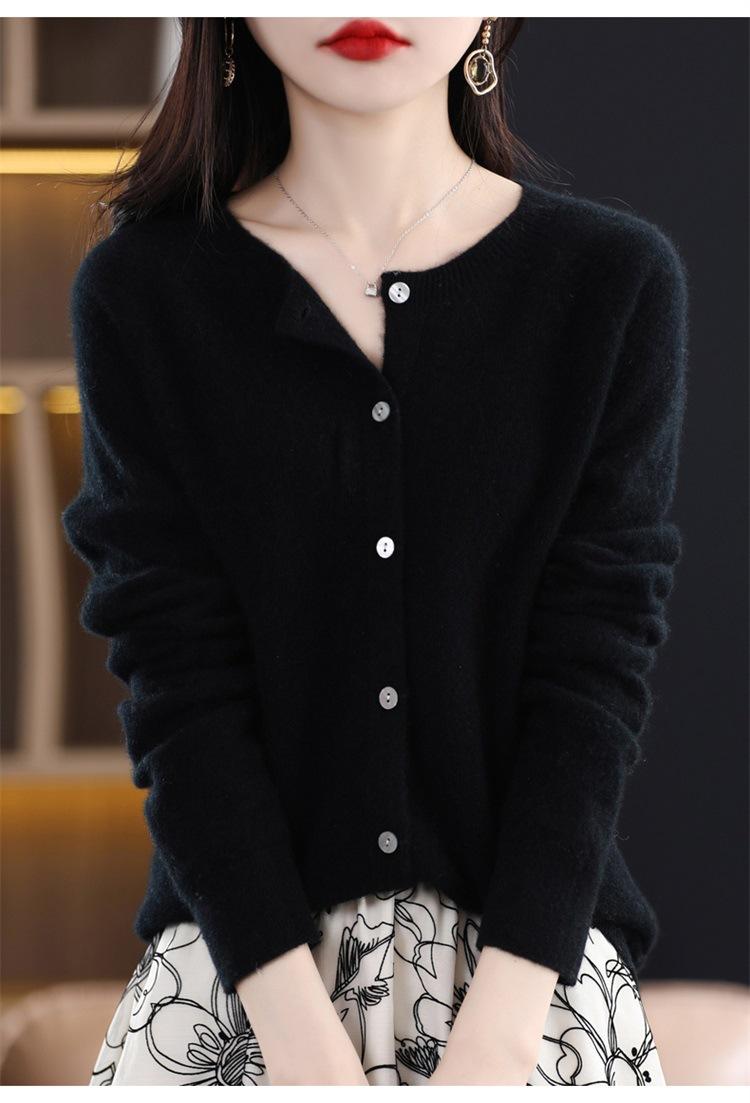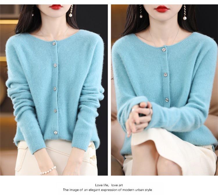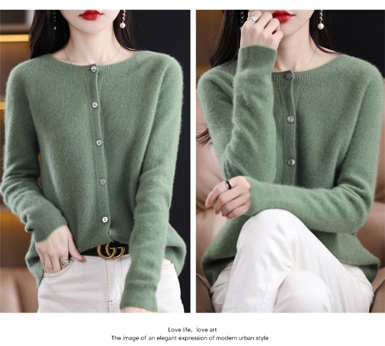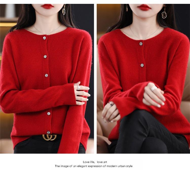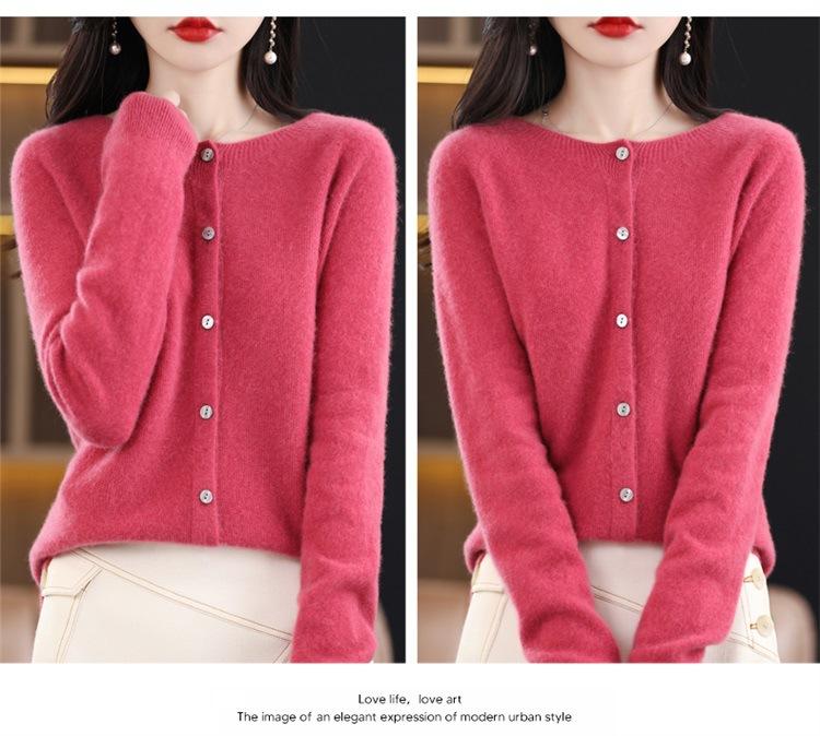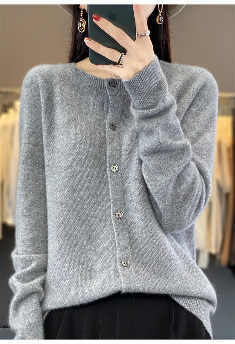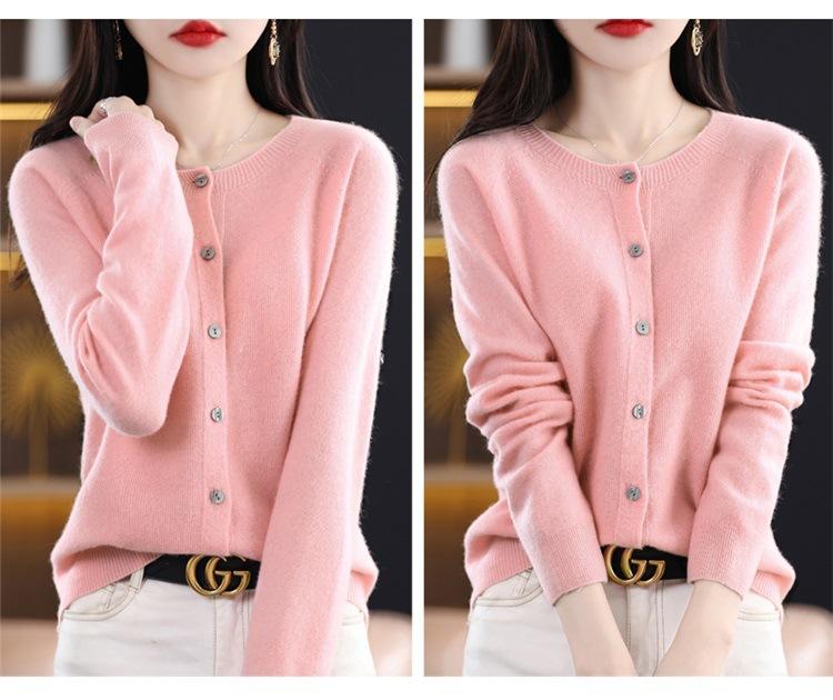 Cárdigan de Lana Fina para Mujer Corto Estilo Coreano Cuello Redondo Tejido 2024 Otoño e Invierno Nuevo Chaqueta Suéter Estilo Coreano