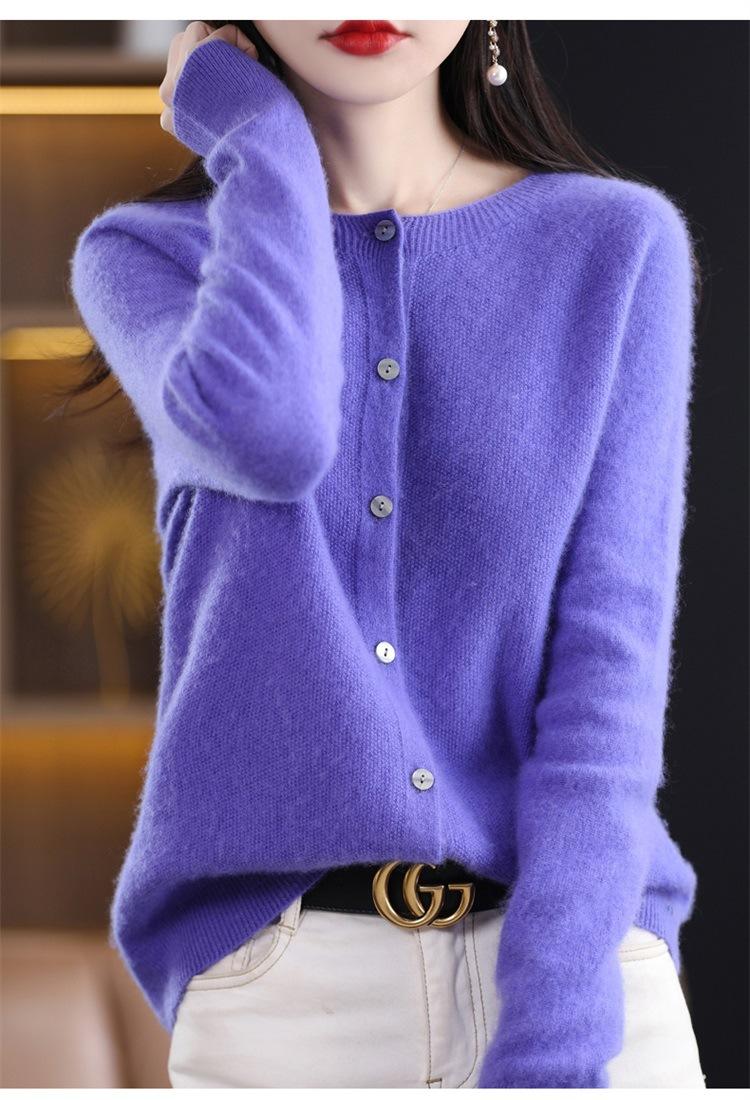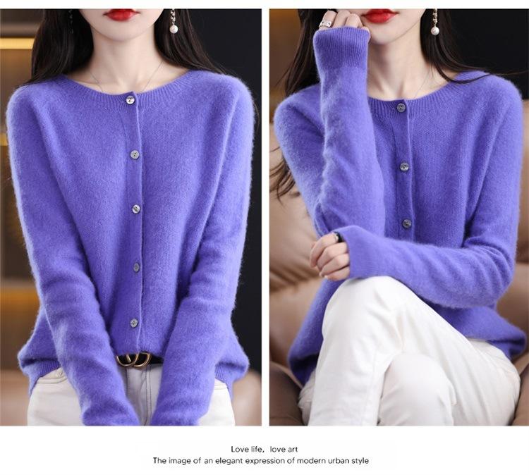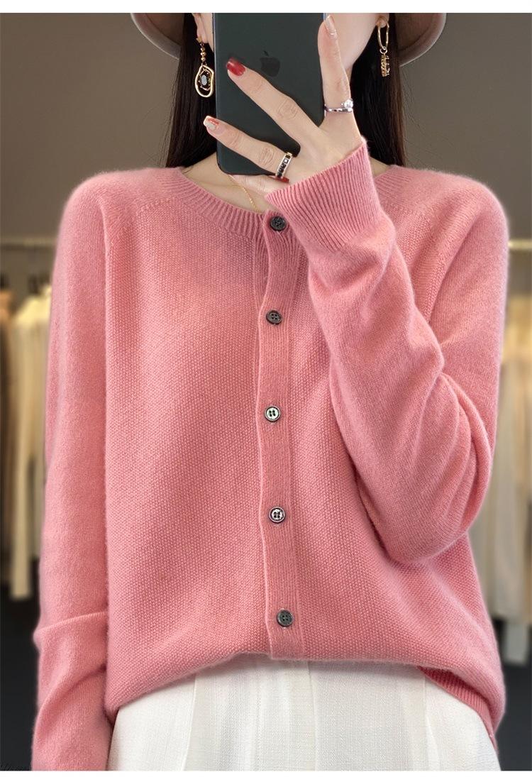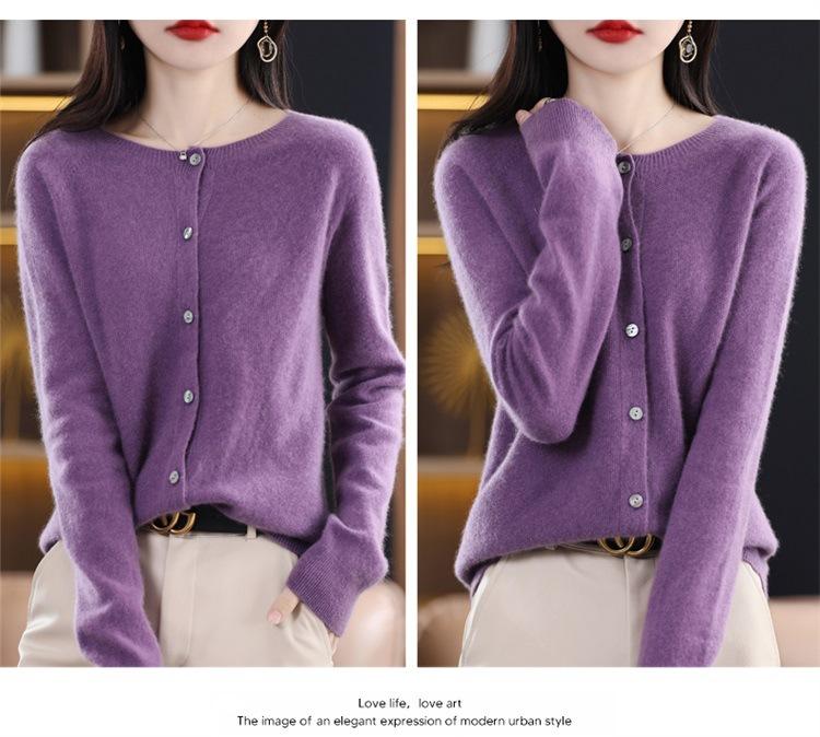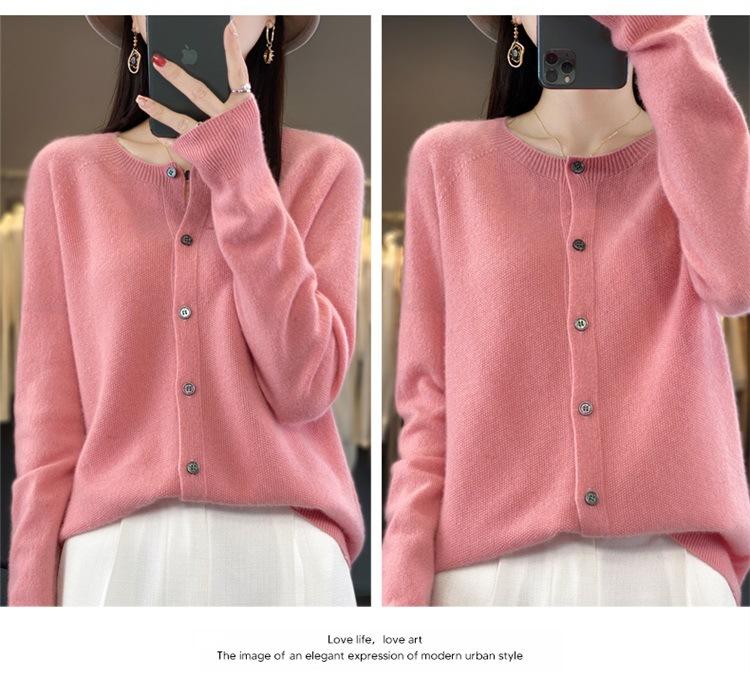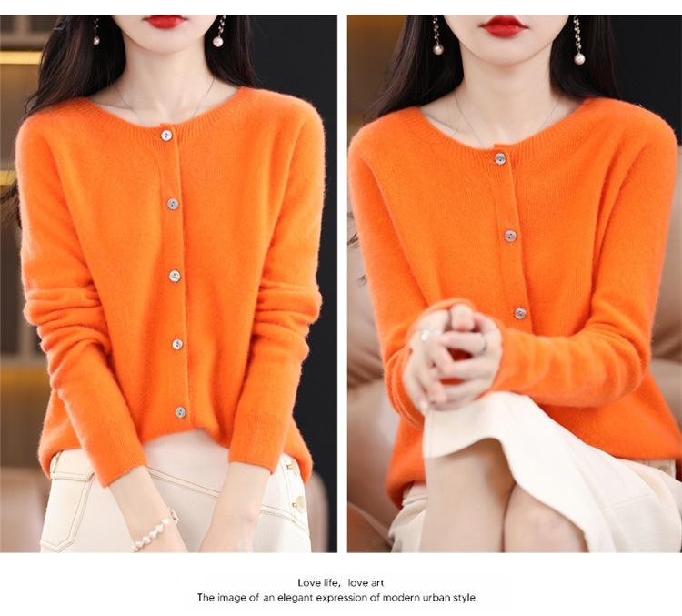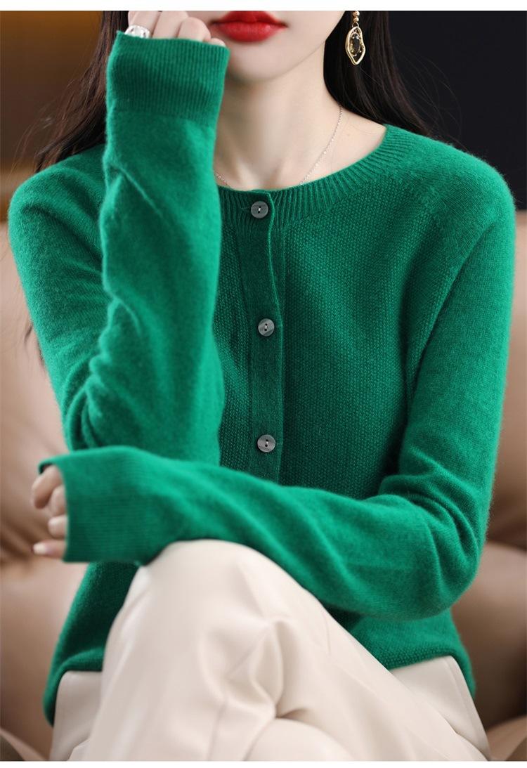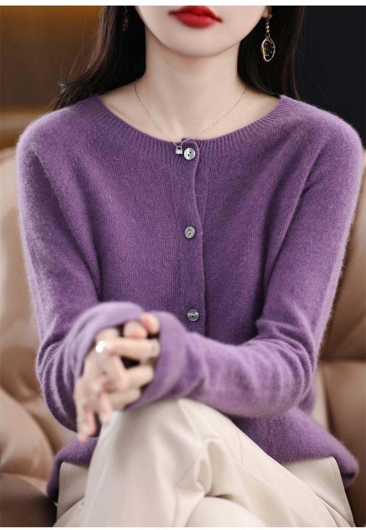 Cárdigan de Lana Fina para Mujer Corto Estilo Coreano Cuello Redondo Tejido 2024 Otoño e Invierno Nuevo Chaqueta Suéter Estilo Coreano