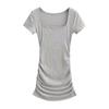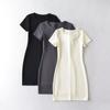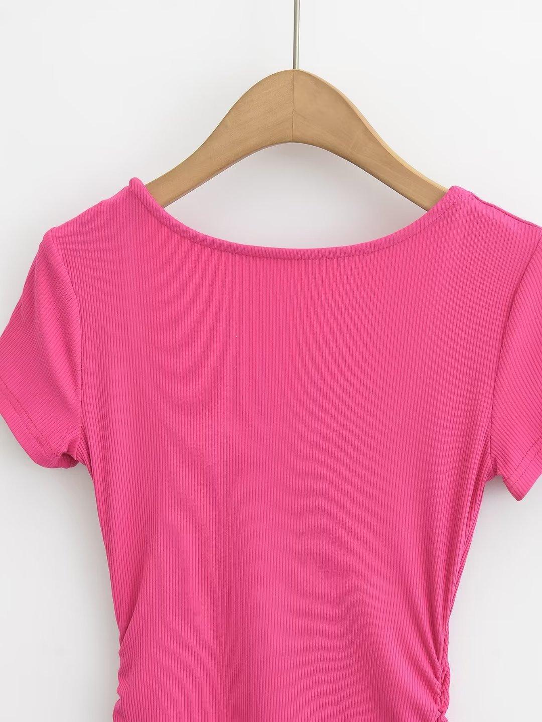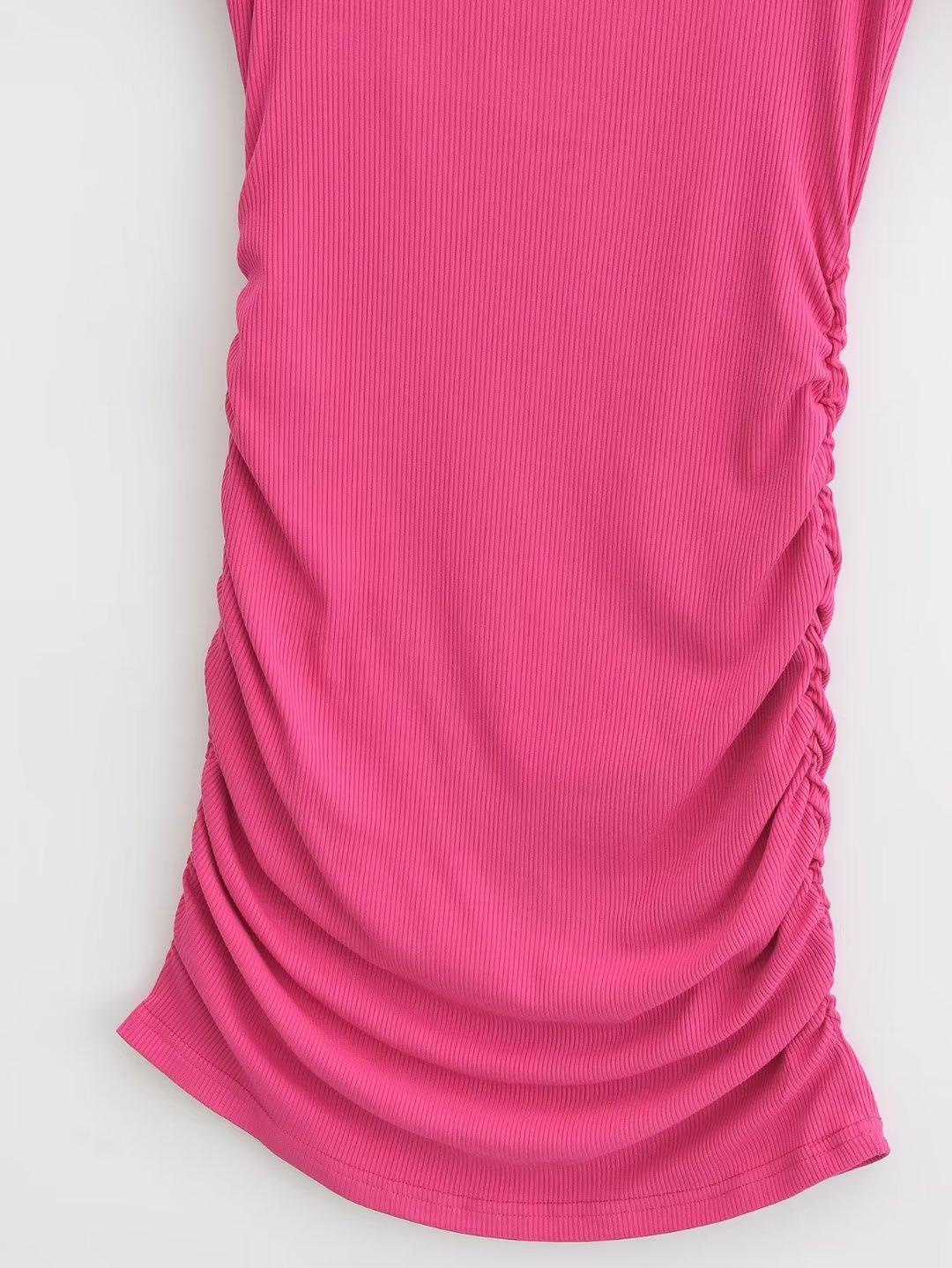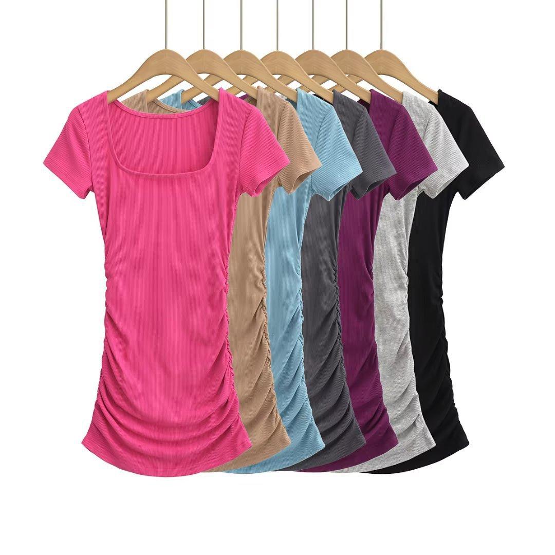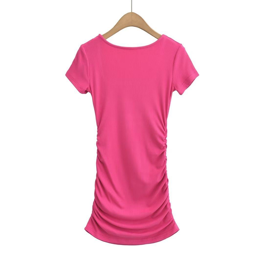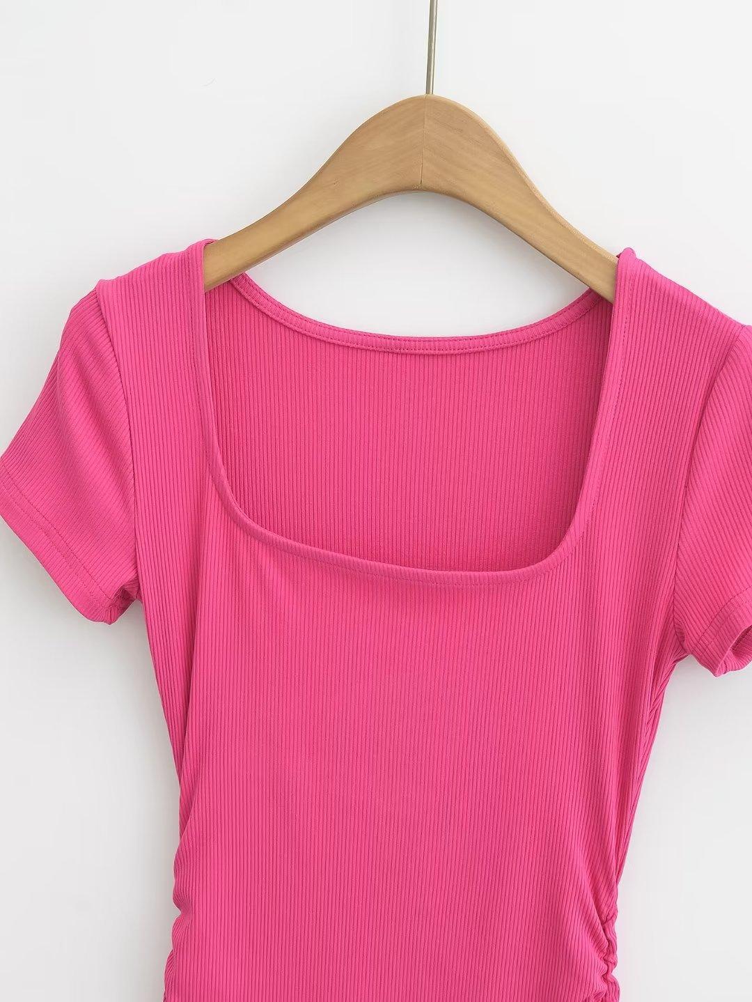 Vestido plisado de manga corta con cuello cuadrado estilo europeo y americano para mujer, verano 2023, nuevo, falda ajustada elástica de color sólido