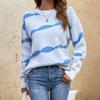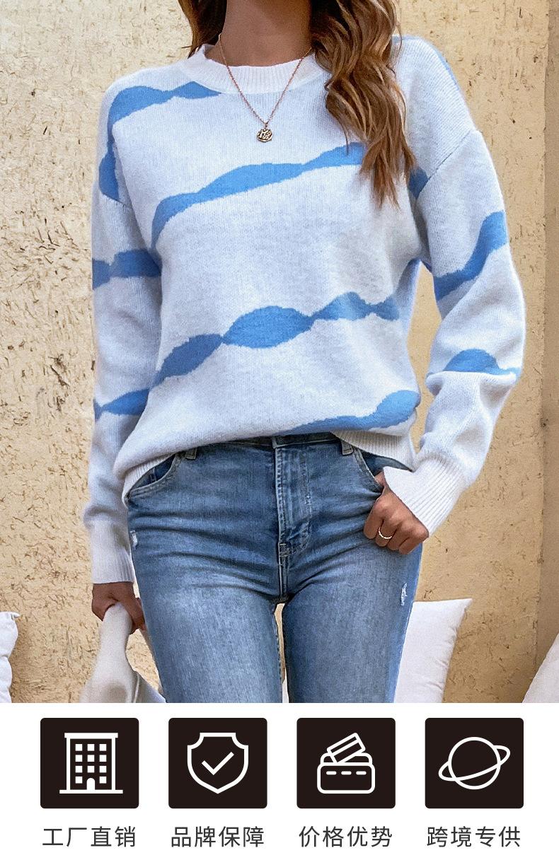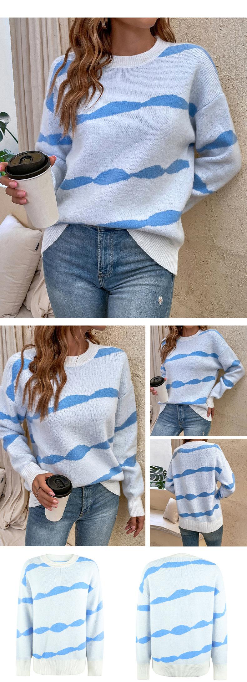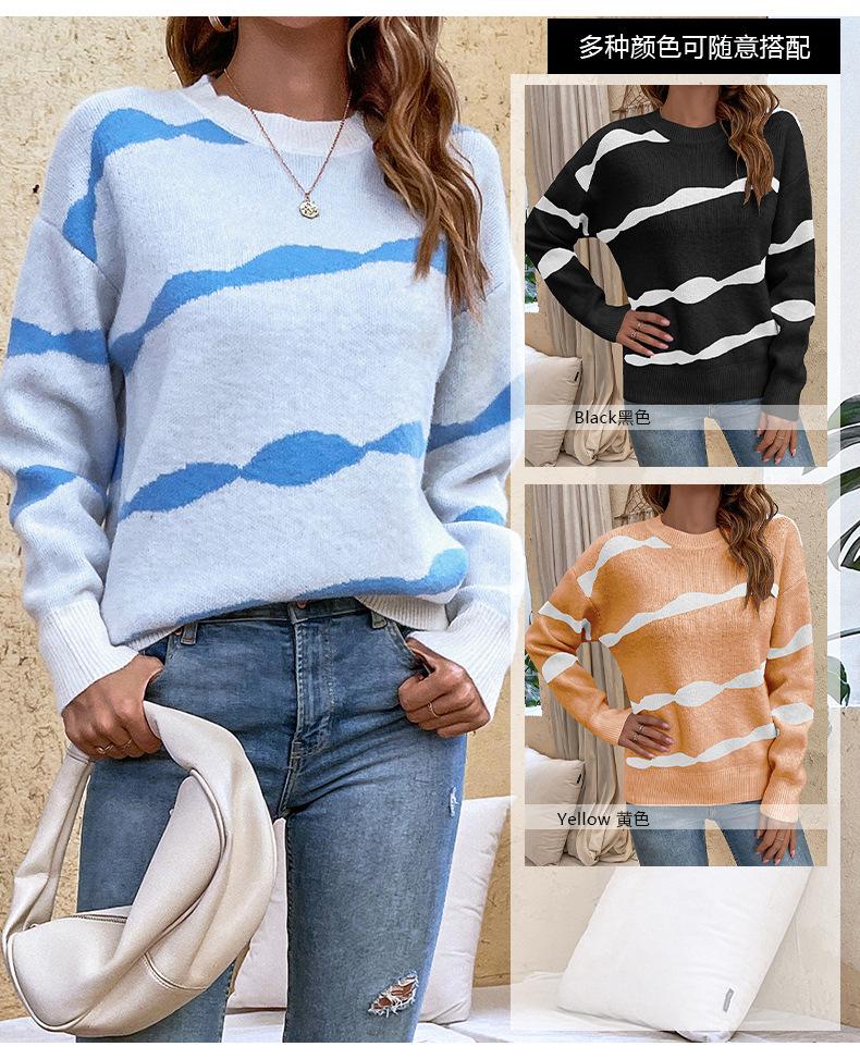 2024 otoño e invierno nuevo suéter europeo y americano transfronterizo jersey cuello redondo rayas en contraste suéter de Amazon para mujer