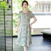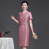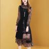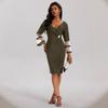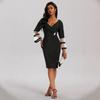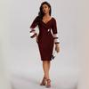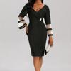 Vestido de talla grande para mujer, estilo europeo y americano, con costuras de malla de seda brillante, escote en V, cintura alta, largo medio ajustado para mujer