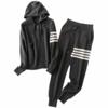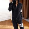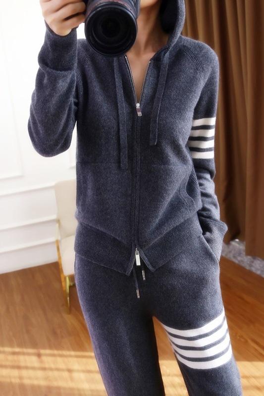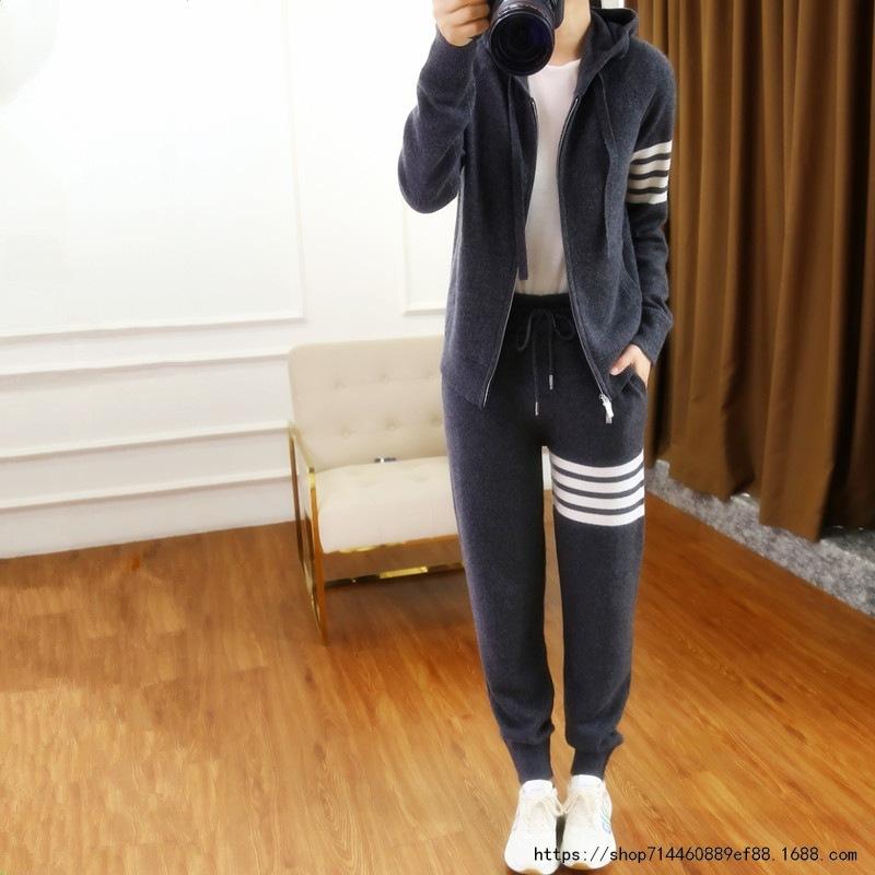 2025 Primavera y Otoño Nuevo Traje Deportivo Casual para Mujer de Dos Piezas Grueso Holgado para Fondo Top de Punto con Capucha Cárdigan