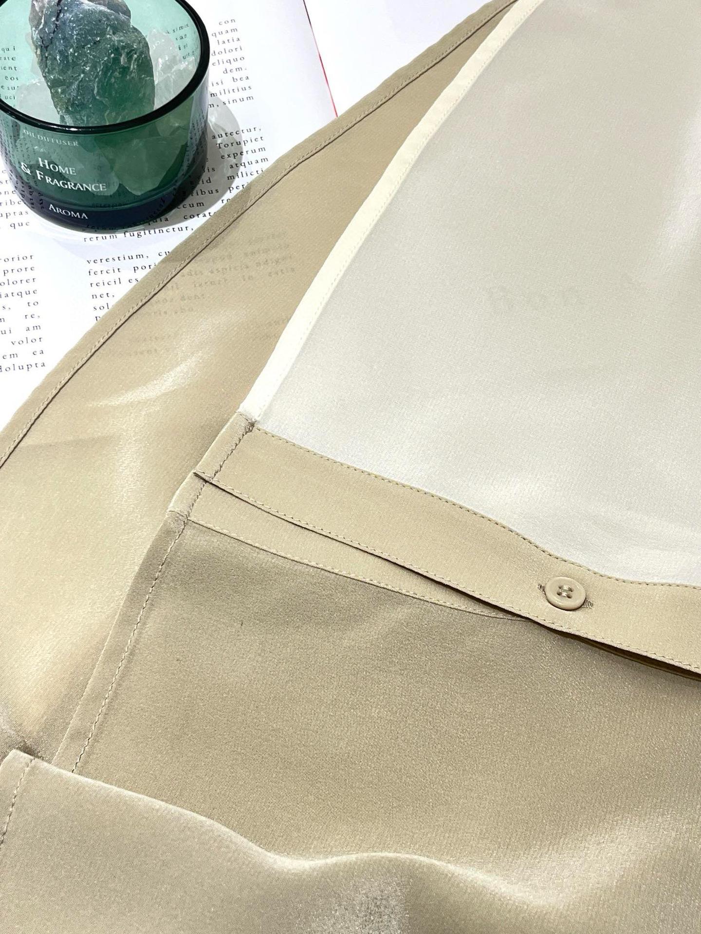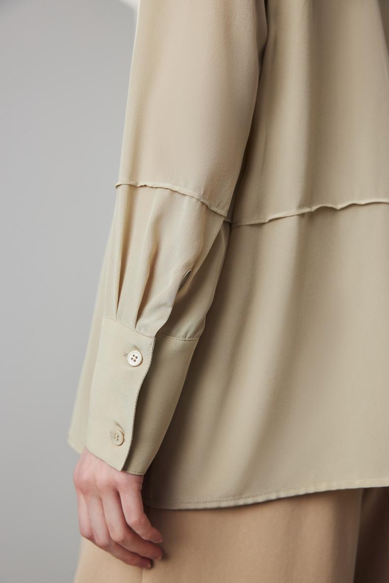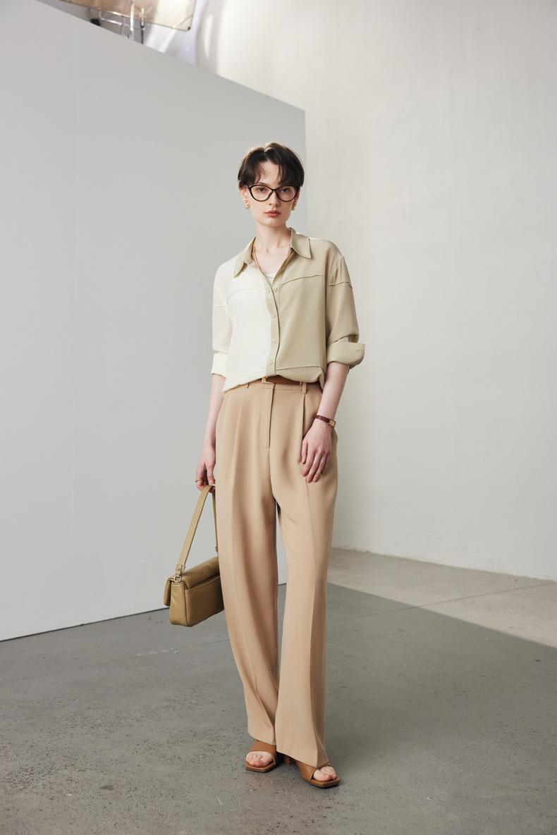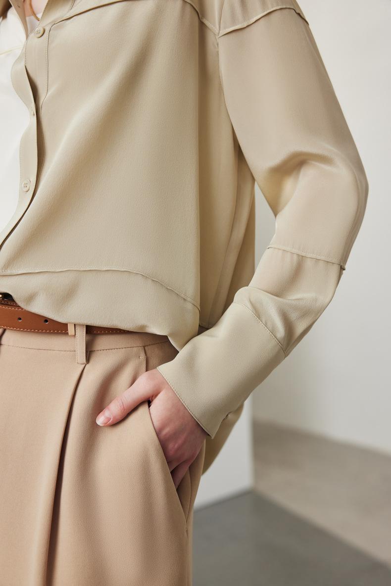 Camisa de seda para mujer, primavera y verano 2025, nueva, suelta, con bloques de color distintivos, 100% crepé de China, seda morera.