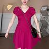 Vestido color Pitaya Verano 2023 Nueva ropa elegante para mujer de alta gama ligera de lujo pequeña falda retro francesa