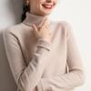 Suéter de cuello alto medio ajustado para mujer, de lana pura, para otoño e invierno, de corte corto, de cachemira de color liso, cálido, camisa de punto