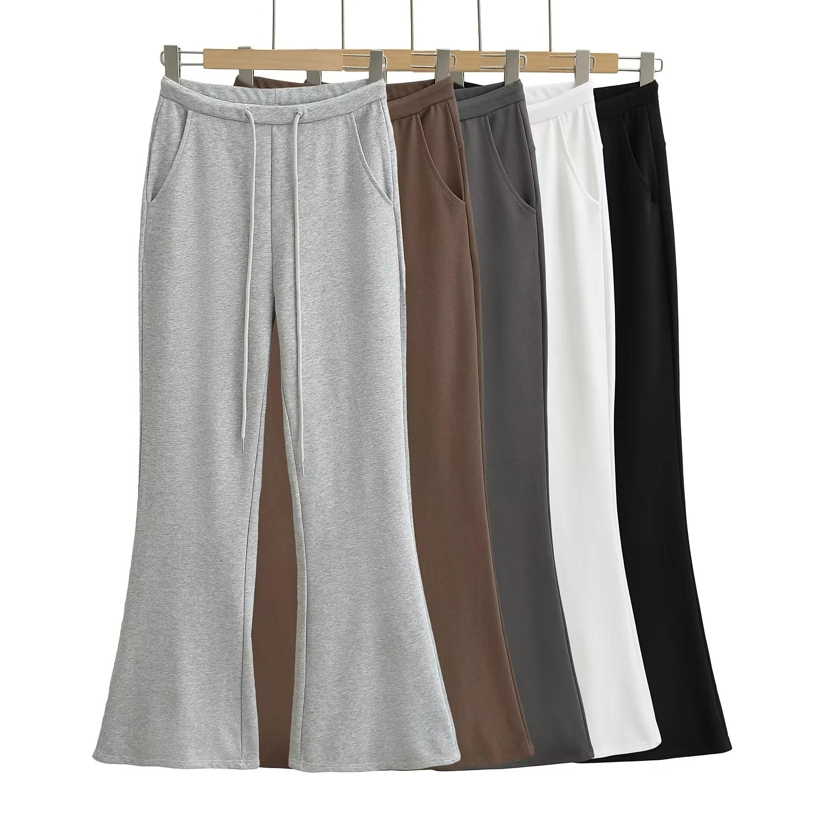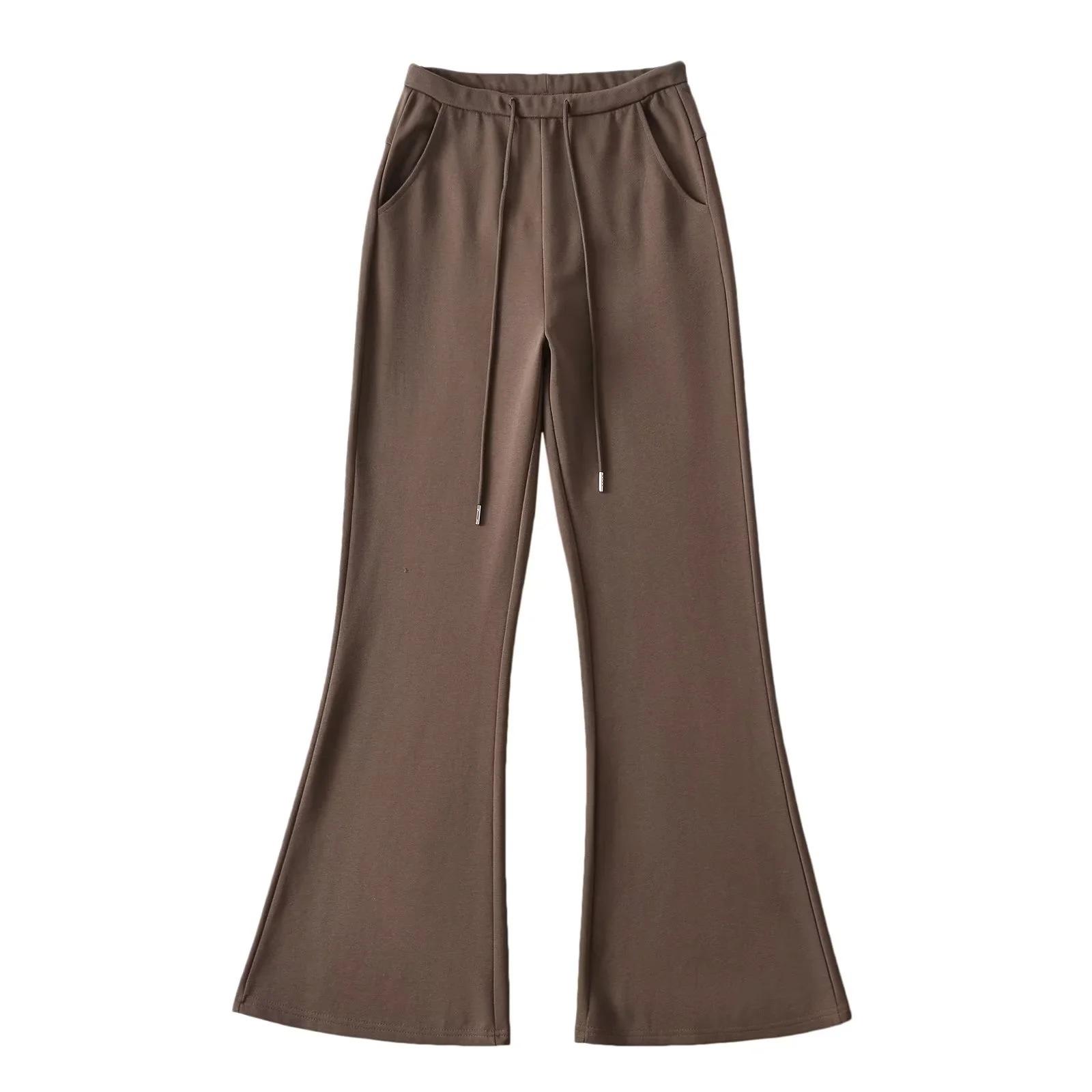 Pantalones deportivos de cintura baja estilo americano para mujer, otoño e invierno 2023, nuevos pantalones deportivos ajustados, elásticos, informales, acampanados, pantalones de fregado