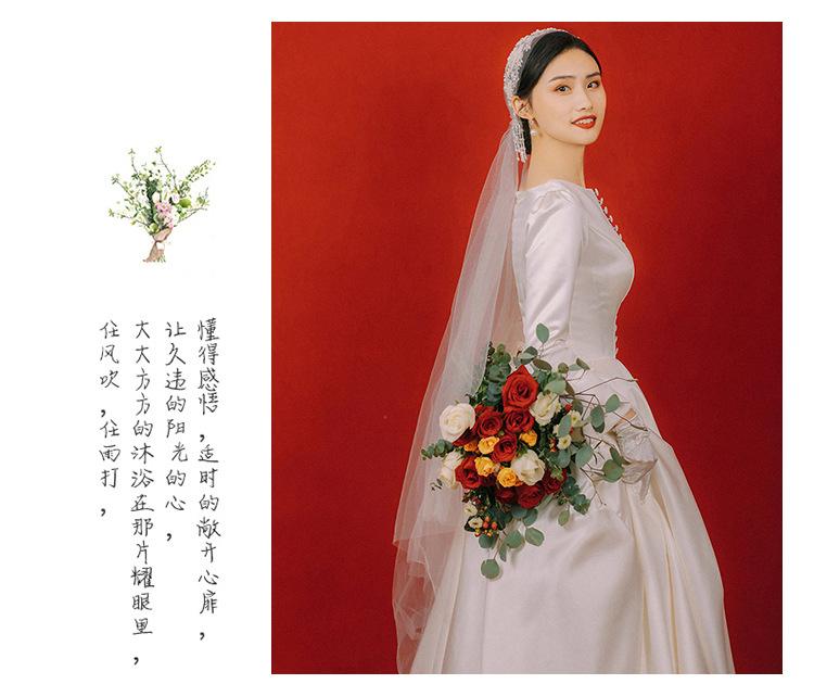 Vestido de Novia Ligero de Manga Larga de Satén 2026 Nuevo Estilo Novia Registro Simple Otoño Vestido Francés Vestido para Salir Elegante Al por Mayor