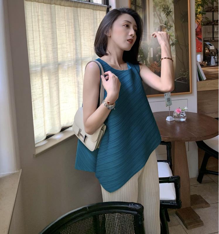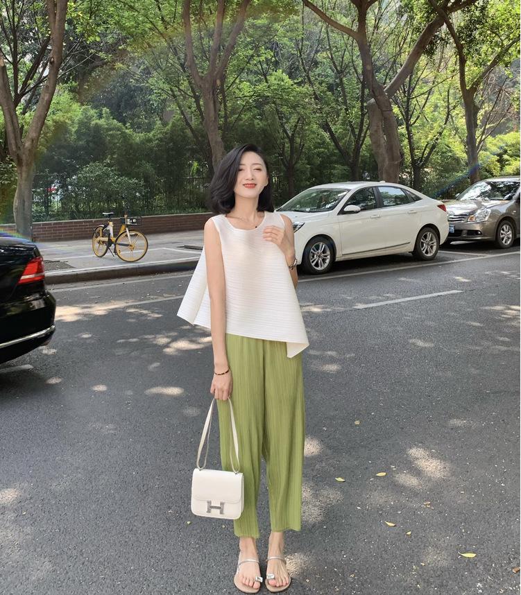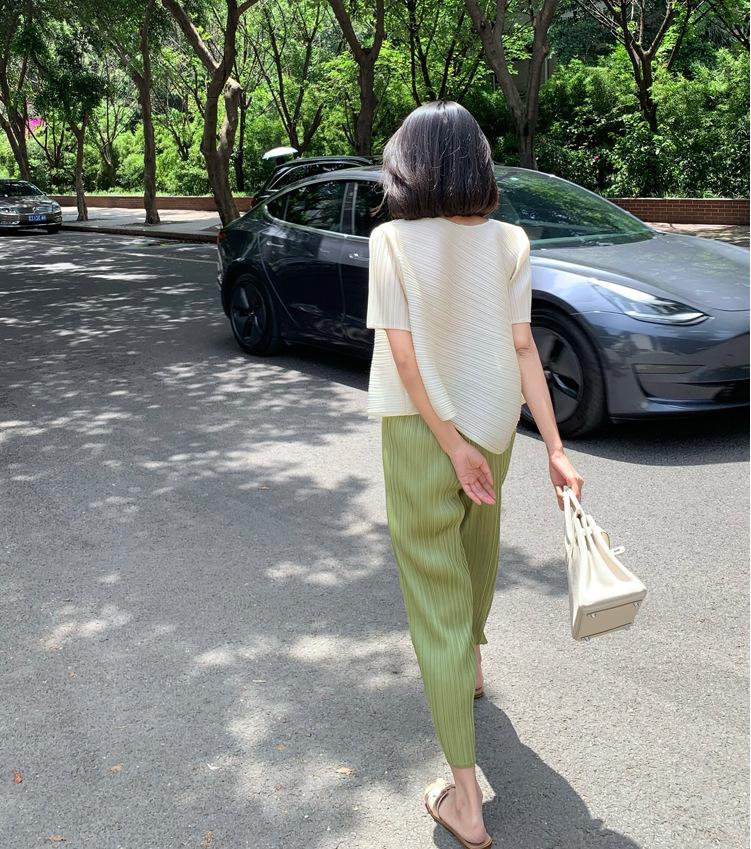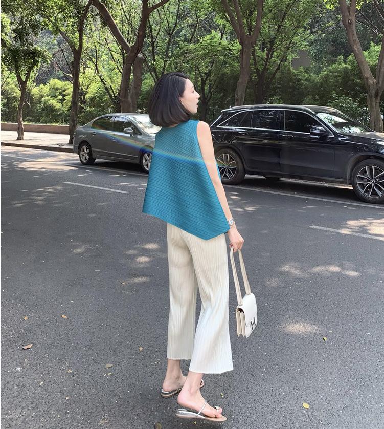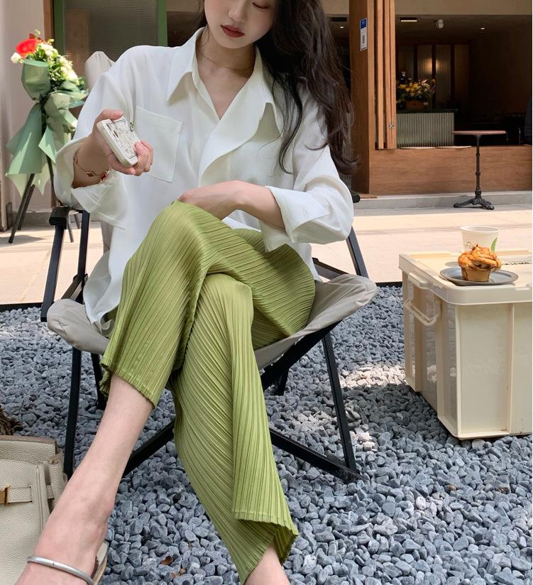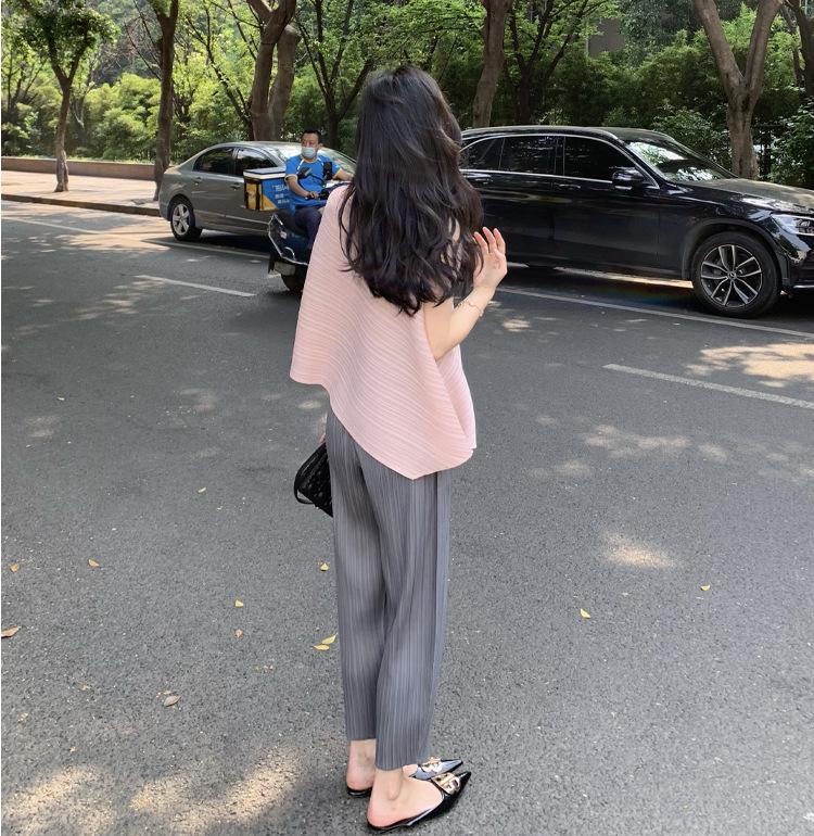 Pantalones plisados de seda de hielo para mujer de San House, pantalones cortos plisados finos de verano, pantalones casuales plisados con pernera ancha y drapeados, pantalones geniales