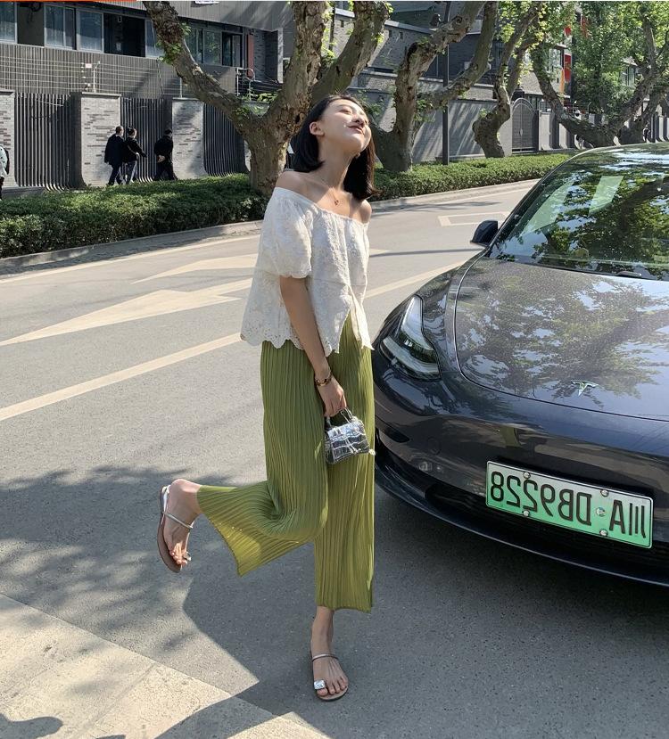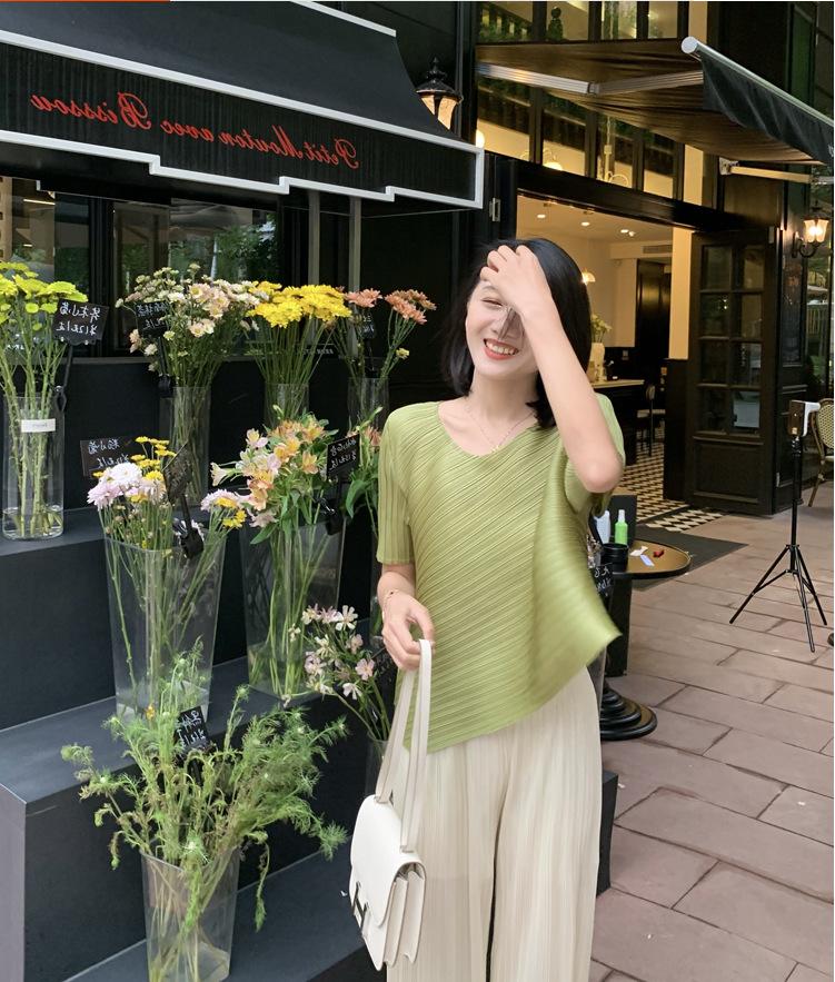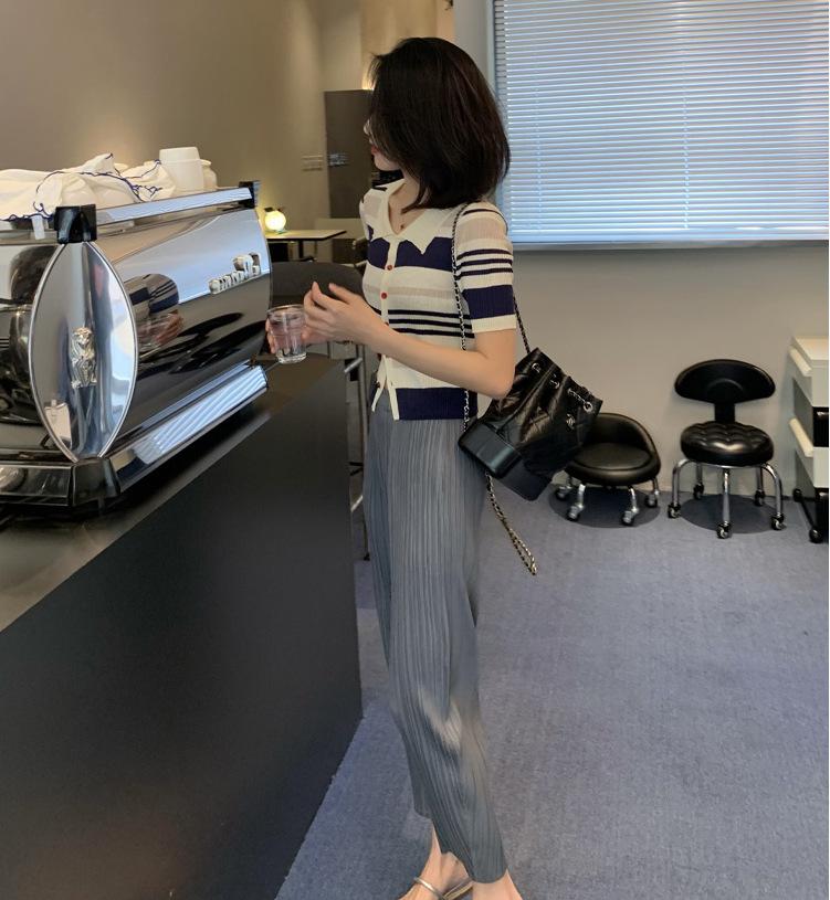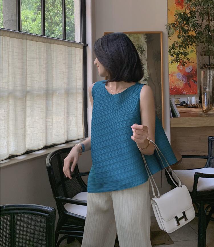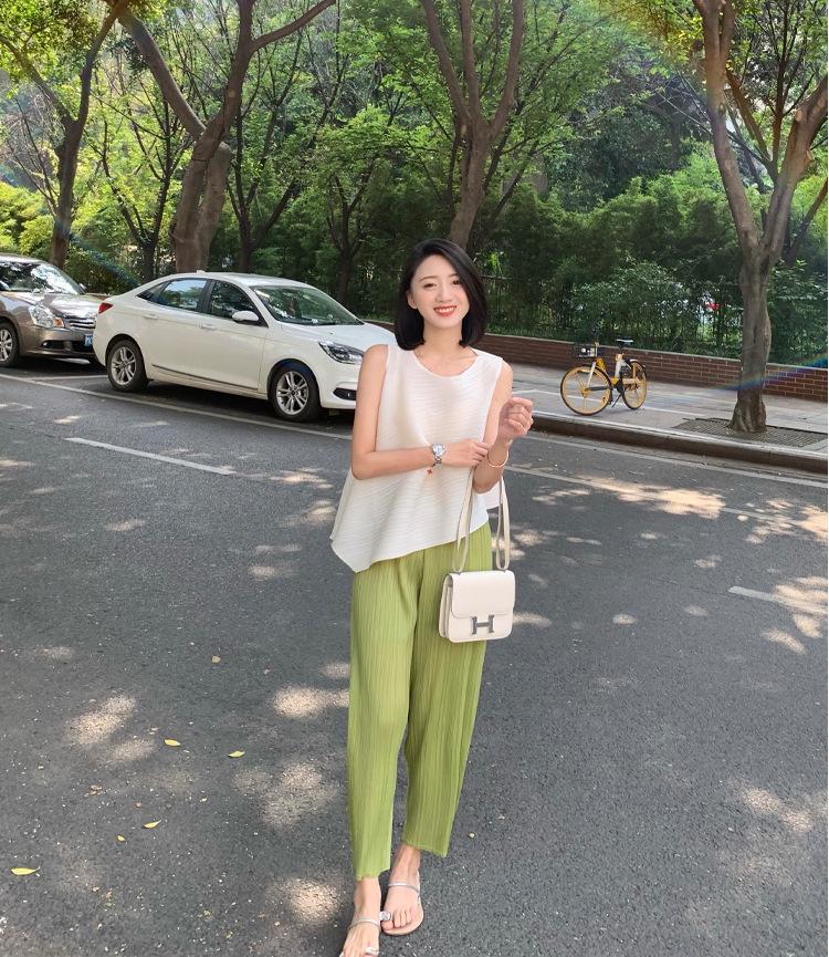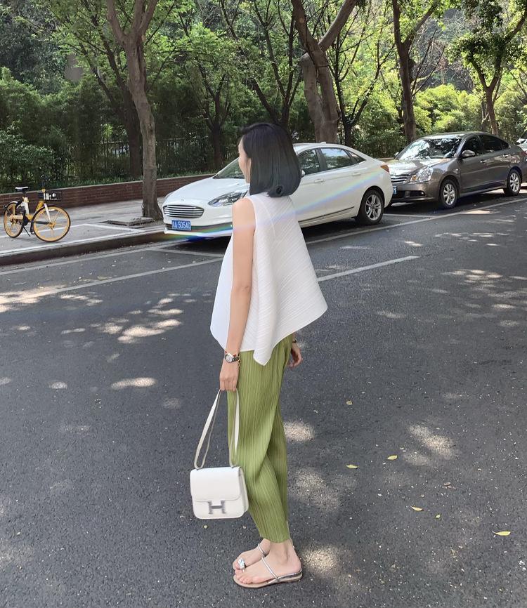 Pantalones plisados de seda de hielo para mujer de San House, pantalones cortos plisados finos de verano, pantalones casuales plisados con pernera ancha y drapeados, pantalones geniales