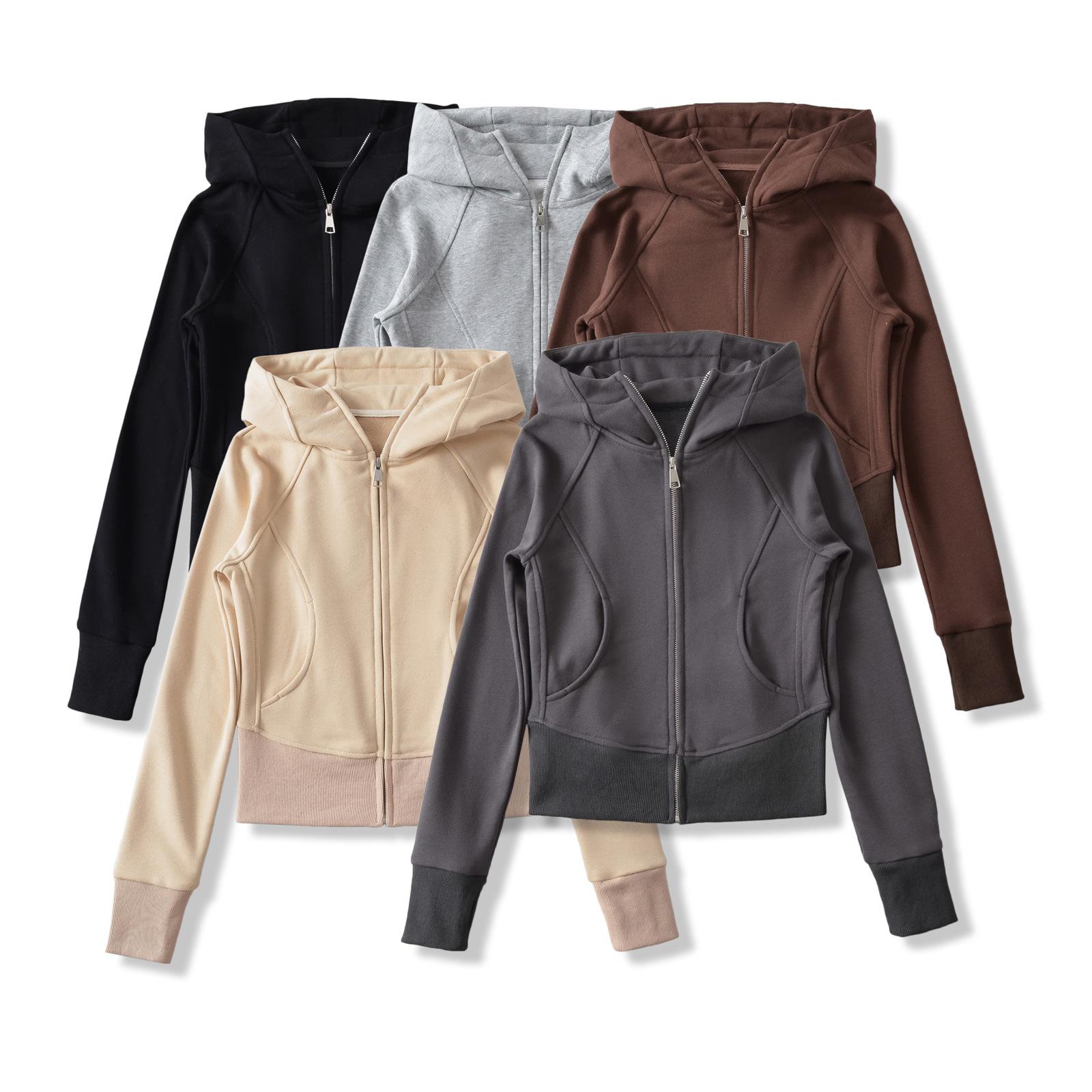 Suéter entallado con capucha estilo europeo y americano para mujer 2023 otoño e invierno nuevo color sólido cremallera manga larga cárdigan casual abrigo para mujer