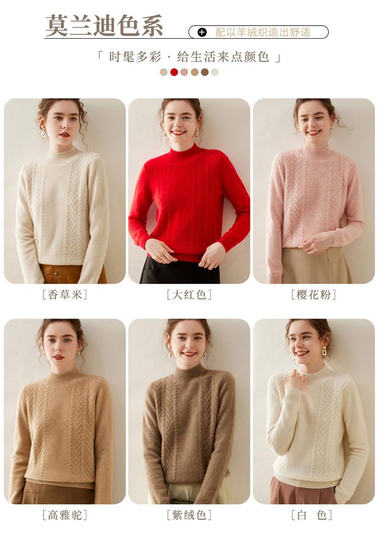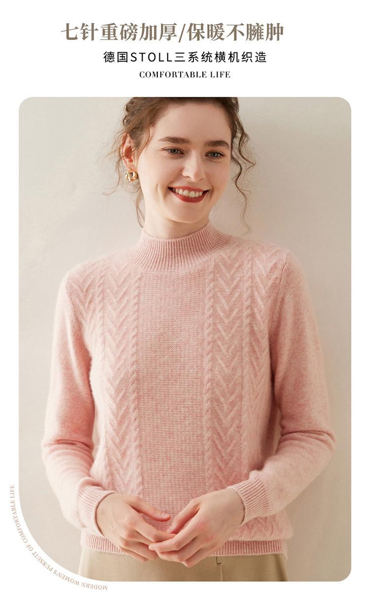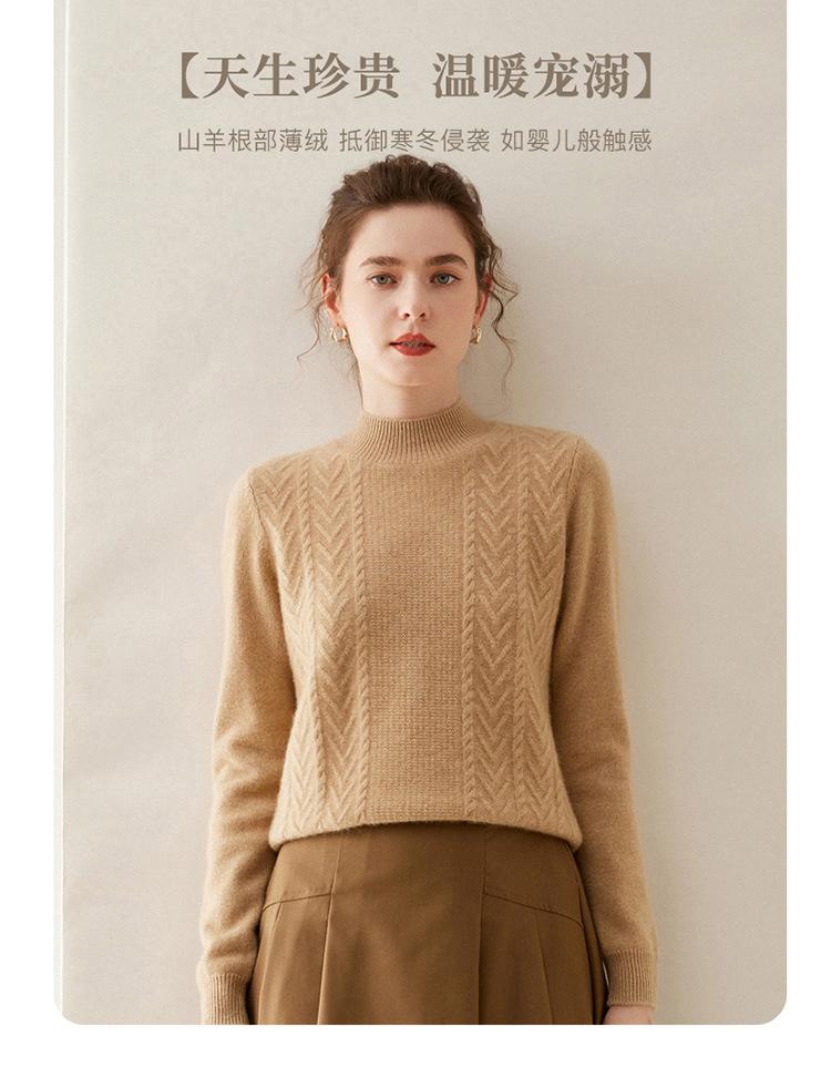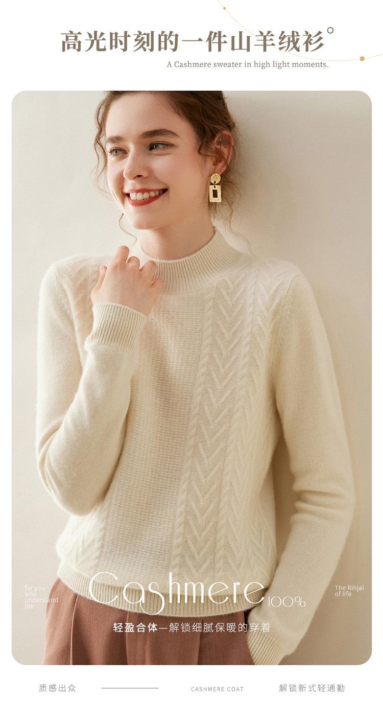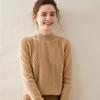 Suéter de cachemira de punto de cuello alto medio para mujer, suéter grueso de otoño e invierno, suéter de camisa holgado y cálido de color sólido interior de manga larga
