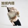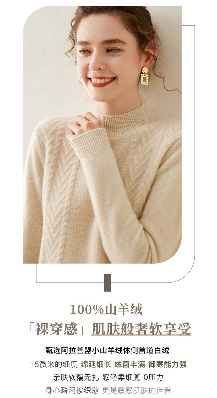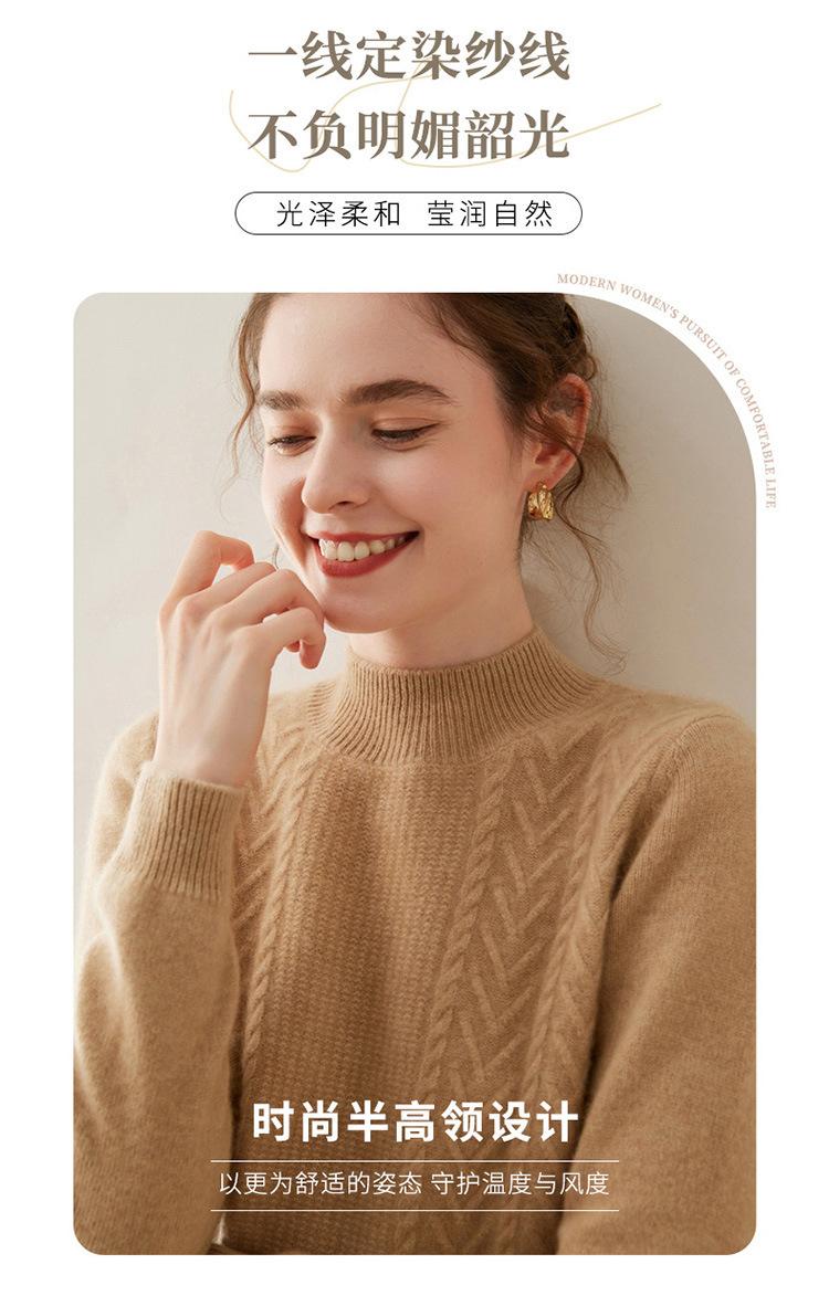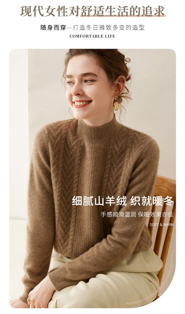 Suéter de cachemira de punto de cuello alto medio para mujer, suéter grueso de otoño e invierno, suéter de camisa holgado y cálido de color sólido interior de manga larga