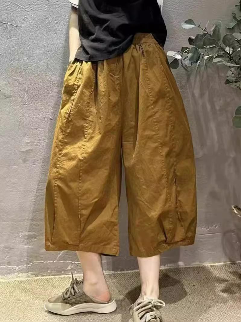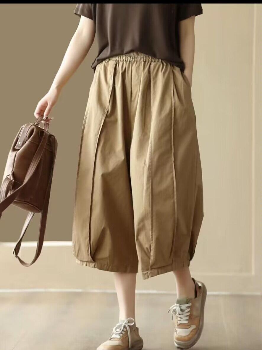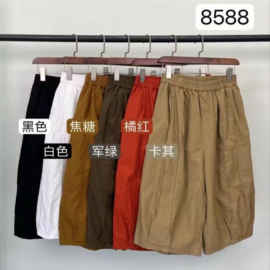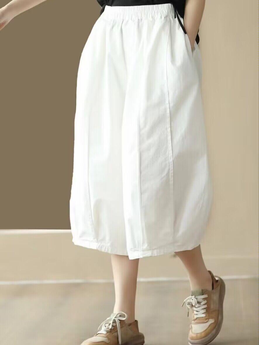 Pantalones Harem Delgados Verano Moda Simple Sueltos Slim Versátiles Patchwork Pierna Ancha Casual Pantalones Recortados Mujer 8588