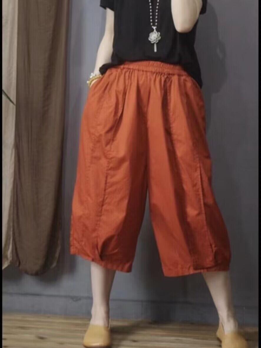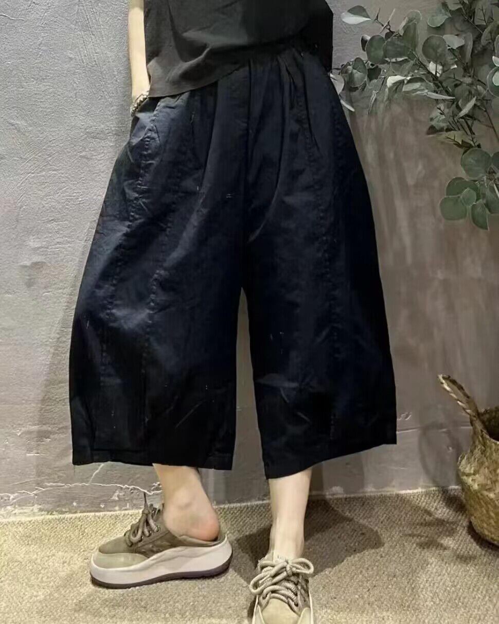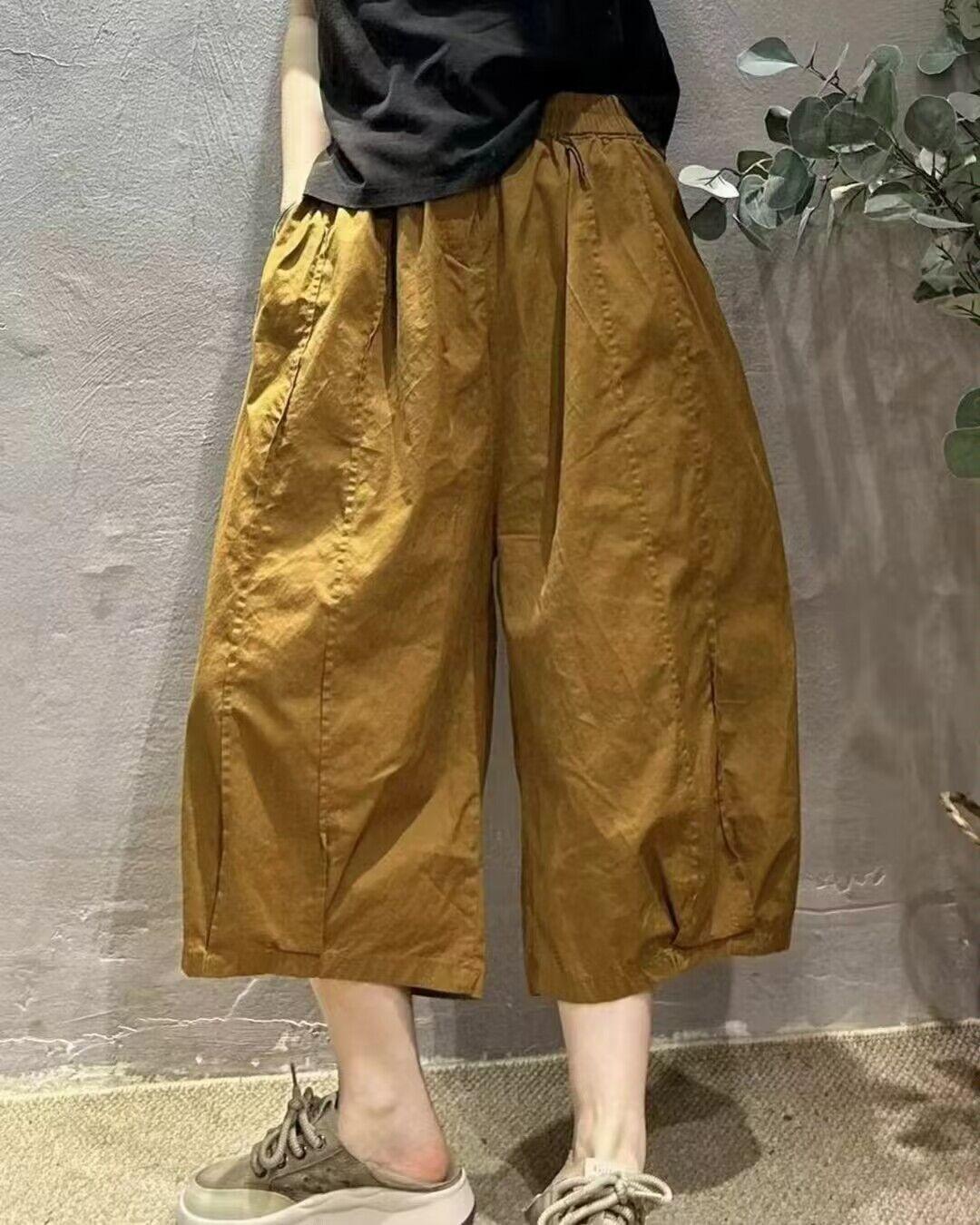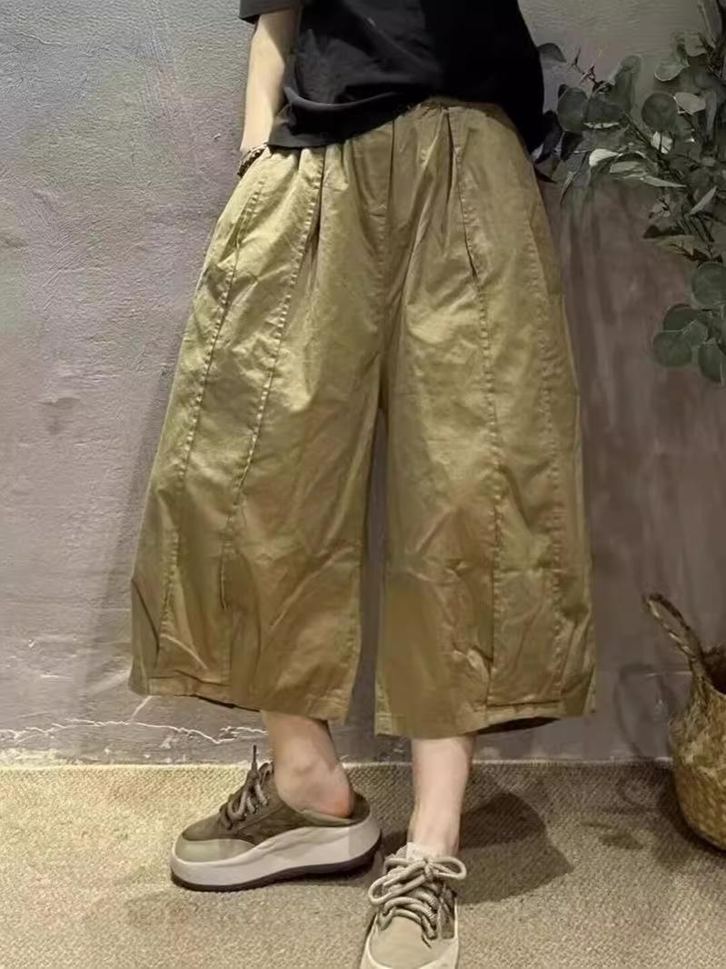 Pantalones Harem Delgados Verano Moda Simple Sueltos Slim Versátiles Patchwork Pierna Ancha Casual Pantalones Recortados Mujer 8588