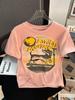 Camiseta de hombros anchos para mujer, manga corta, diseño de nicho 2023, estampado chic de verano, top de algodón de media manga