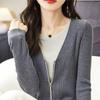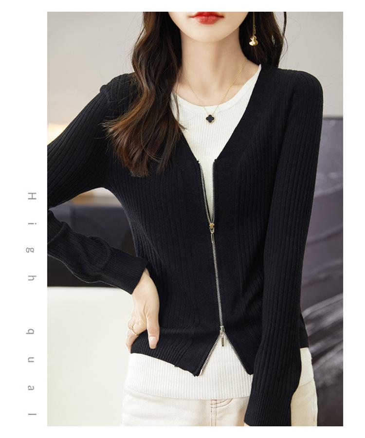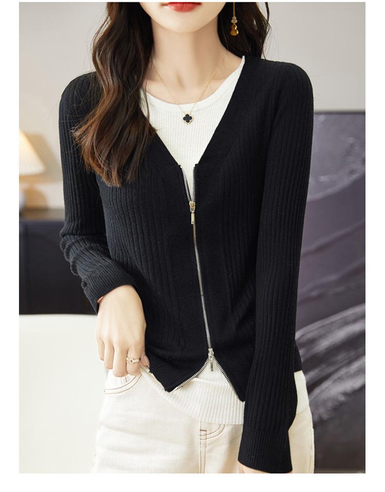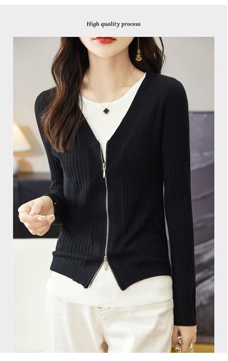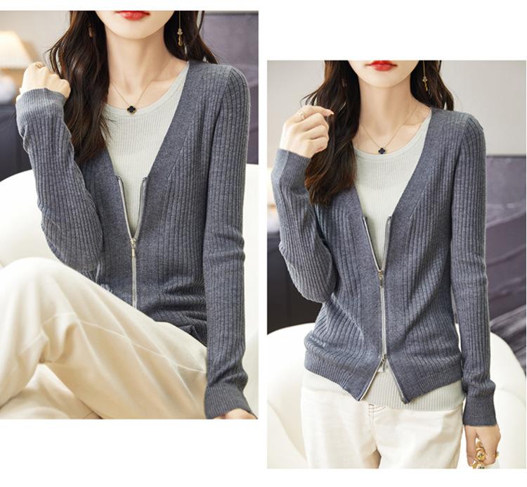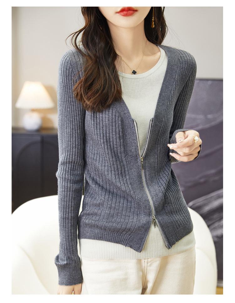 Suéter de lana peinada de primavera para mujer, suéter falso de dos piezas, cárdigan, abrigo, top de manga larga, suéter a juego de colores