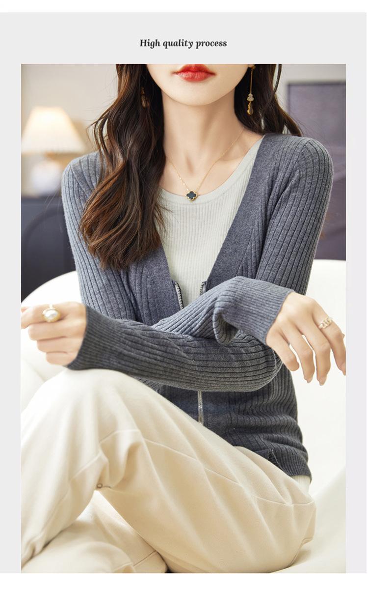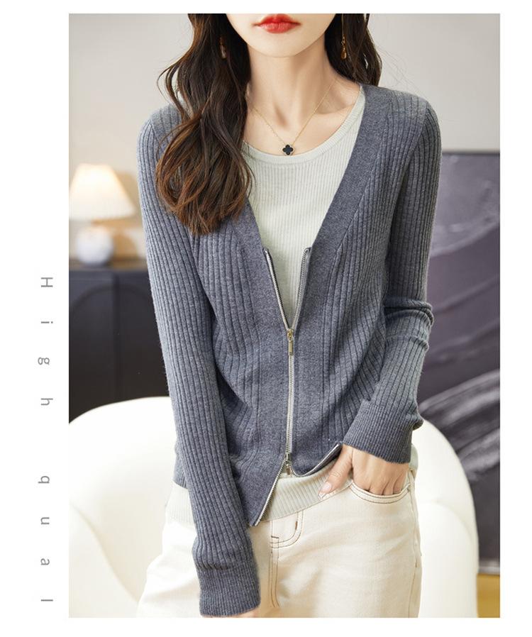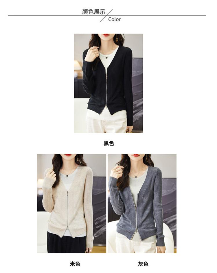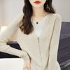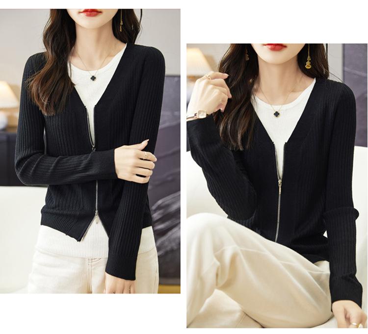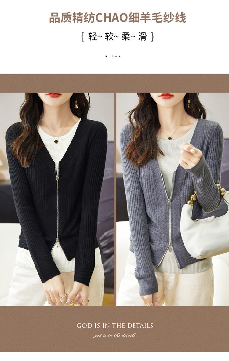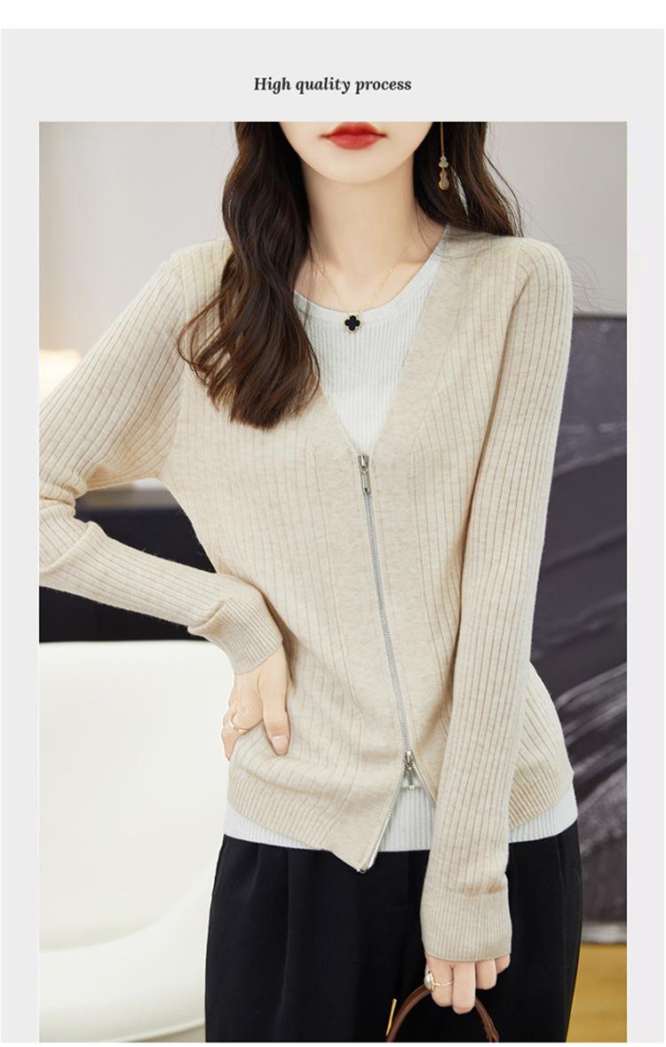 Suéter de lana peinada de primavera para mujer, suéter falso de dos piezas, cárdigan, abrigo, top de manga larga, suéter a juego de colores