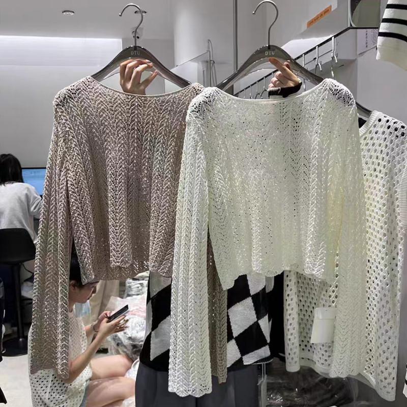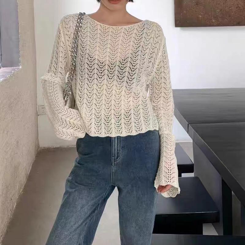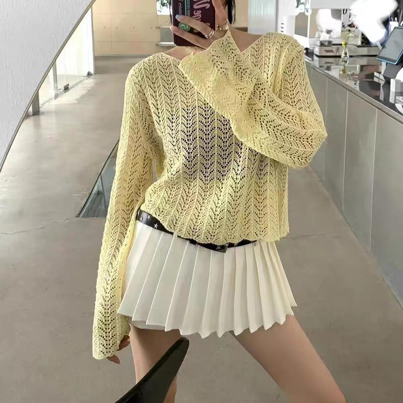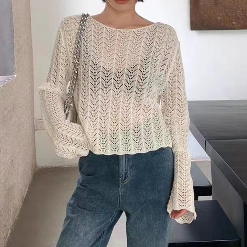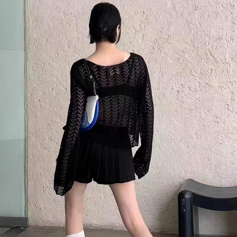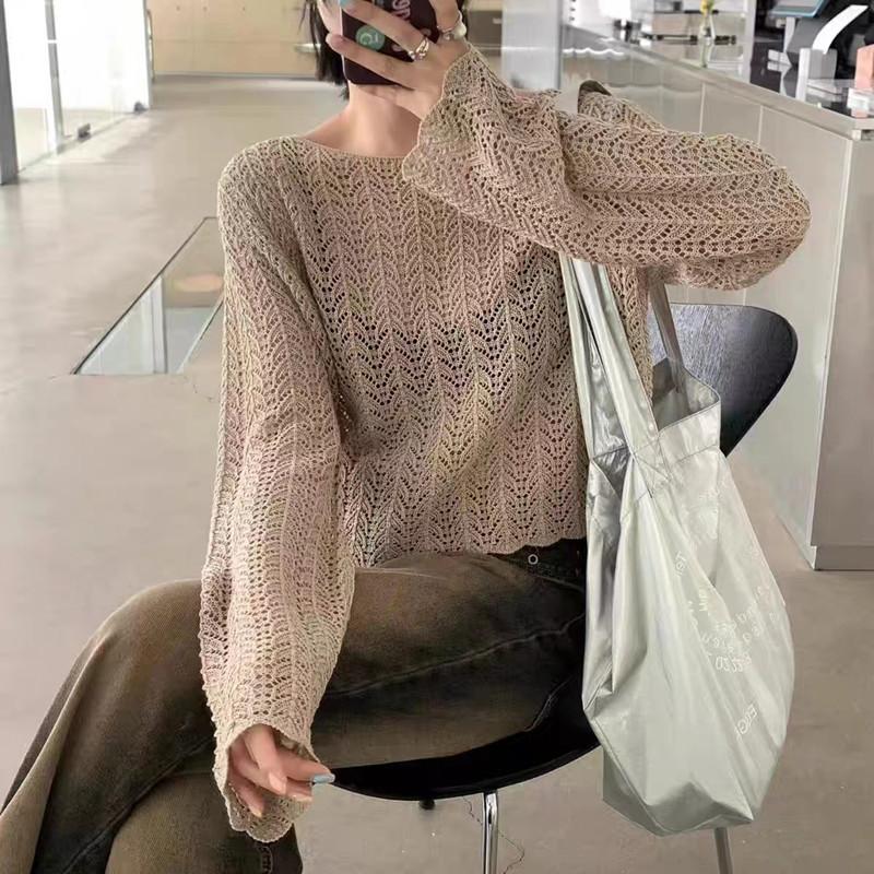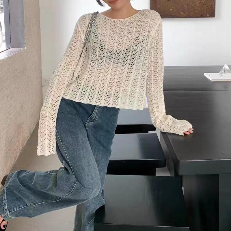 Jersey de manga larga fino y combinable con estilo coreano, diseño de punto, estilo coreano, con protección solar, para mujer, novedad de verano de 2023