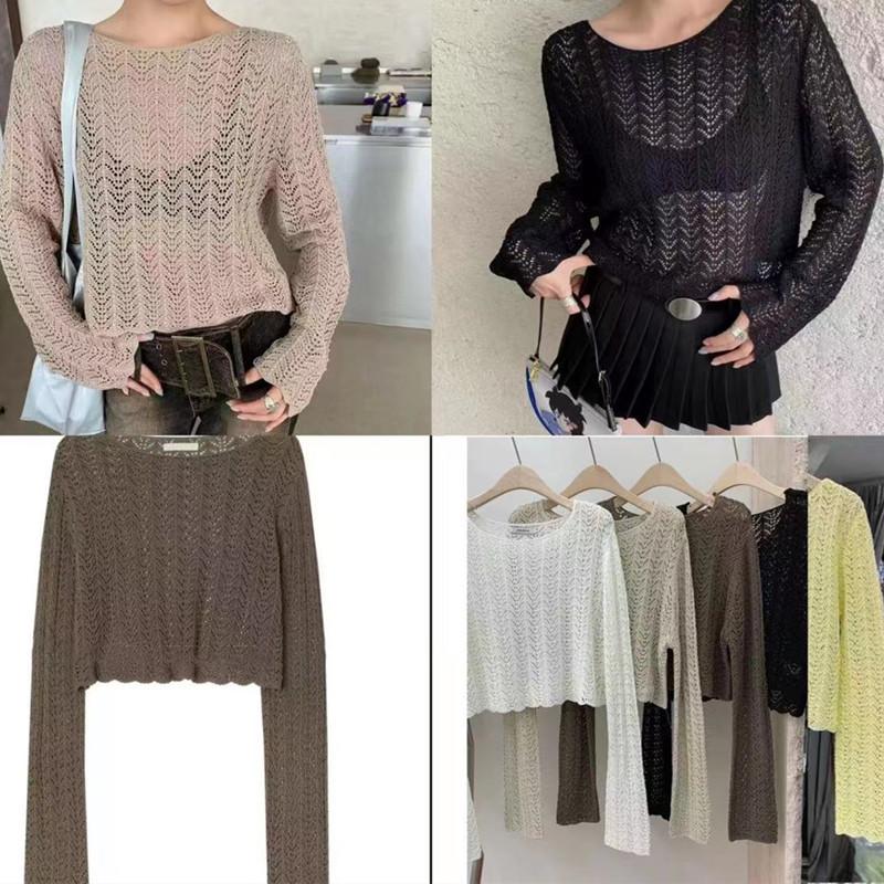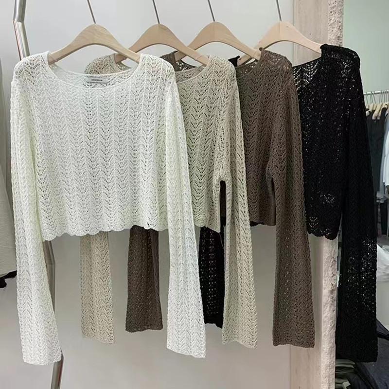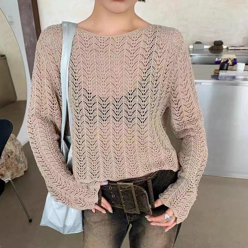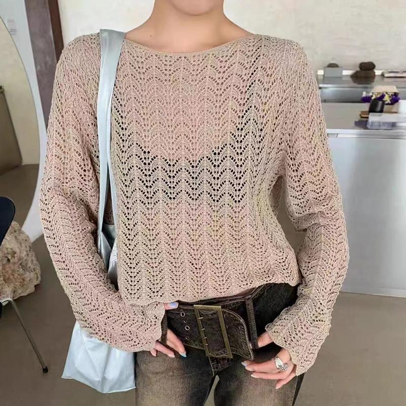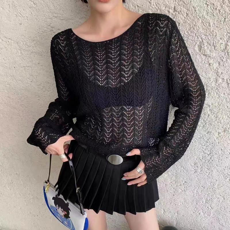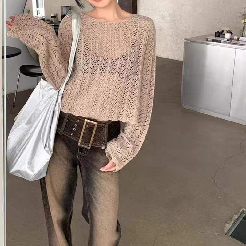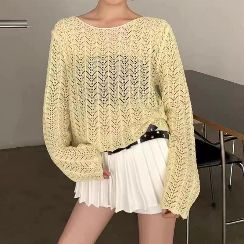 Jersey de manga larga fino y combinable con estilo coreano, diseño de punto, estilo coreano, con protección solar, para mujer, novedad de verano de 2023