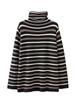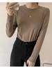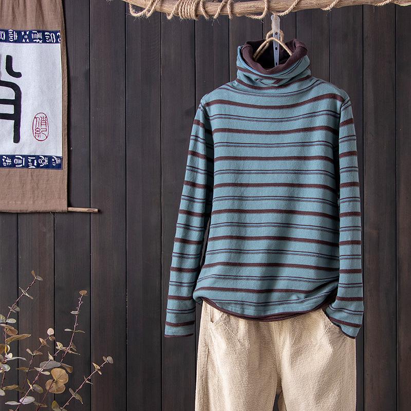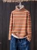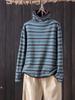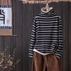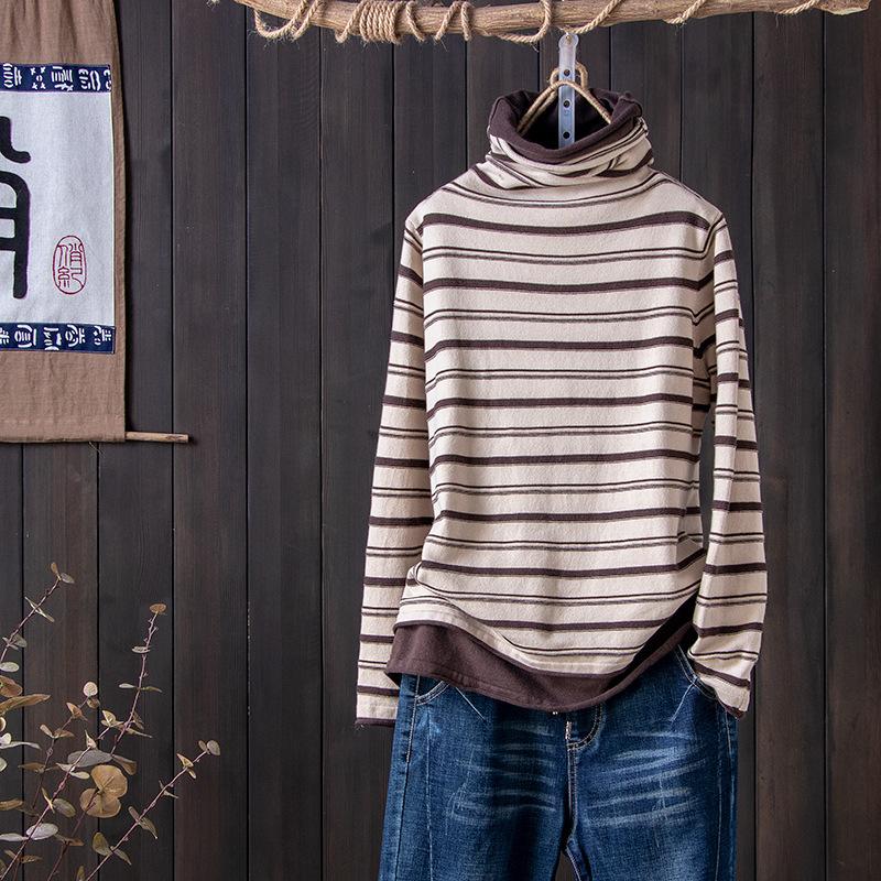 Camiseta de Manga Larga a Rayas de Cuello Alto para Mujer Otoño e Invierno Nueva Elegante Ajustada en Capas Cuello Tortuga Base Camiseta Ins