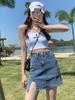 Falda de mezclilla americana para mujer Primavera y Otoño 2024 Nueva falda pantalón ajustada de cintura alta Falda corta sexy retro con abertura
