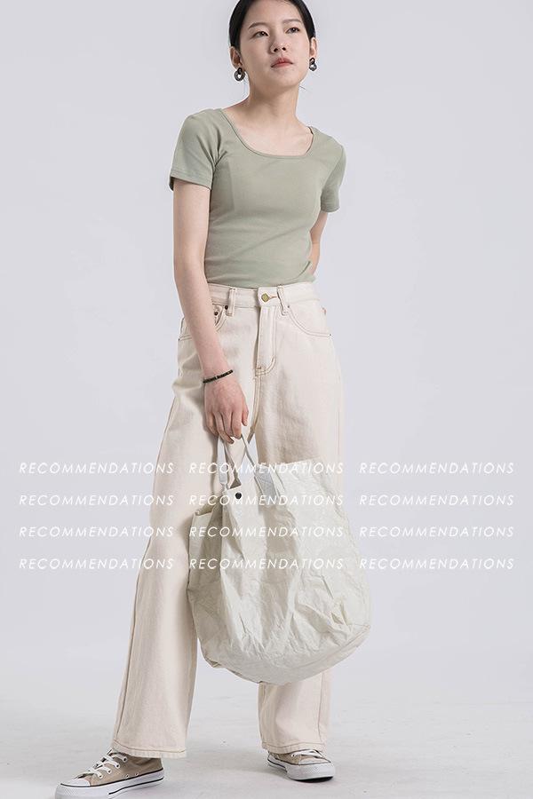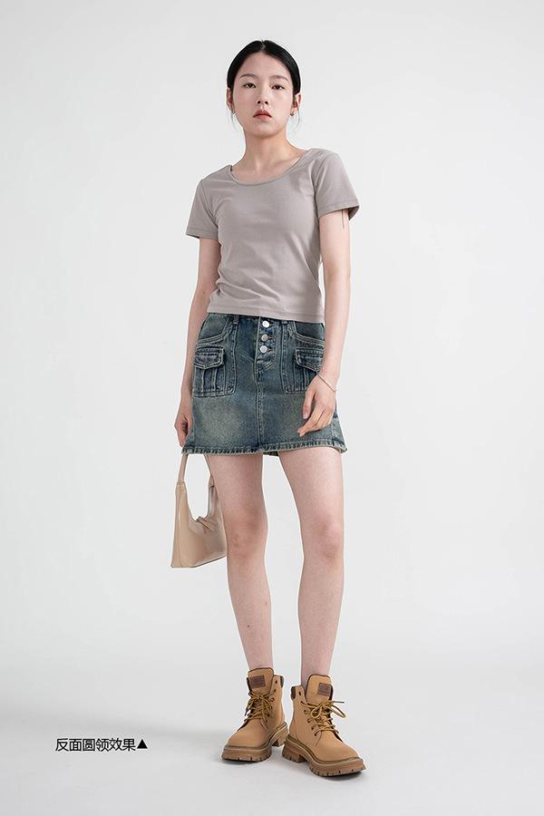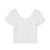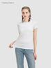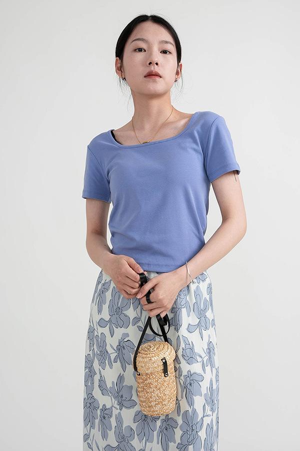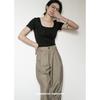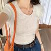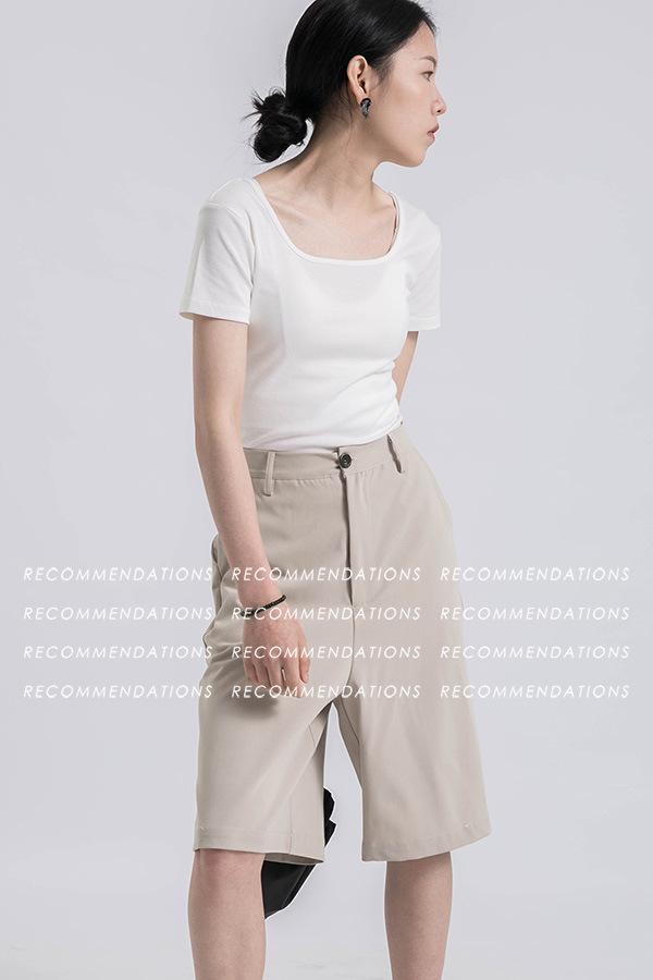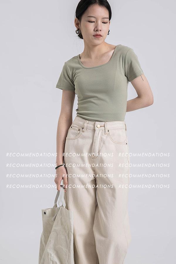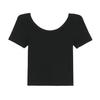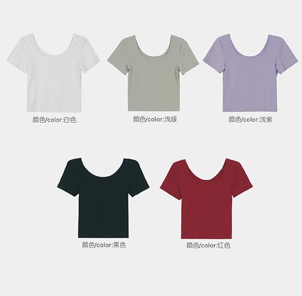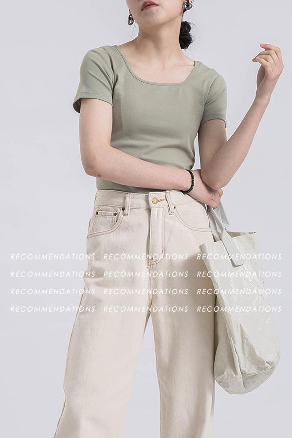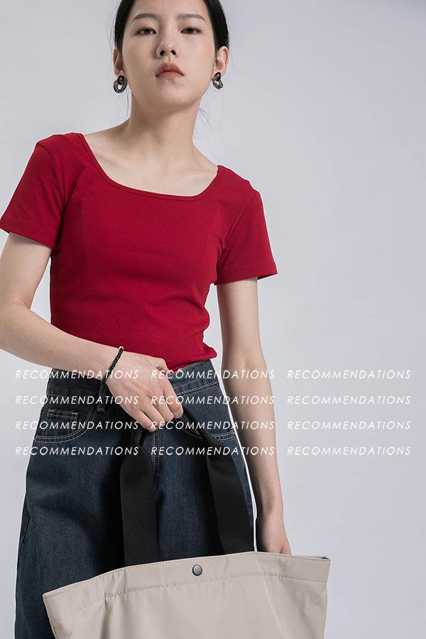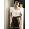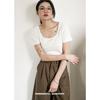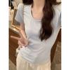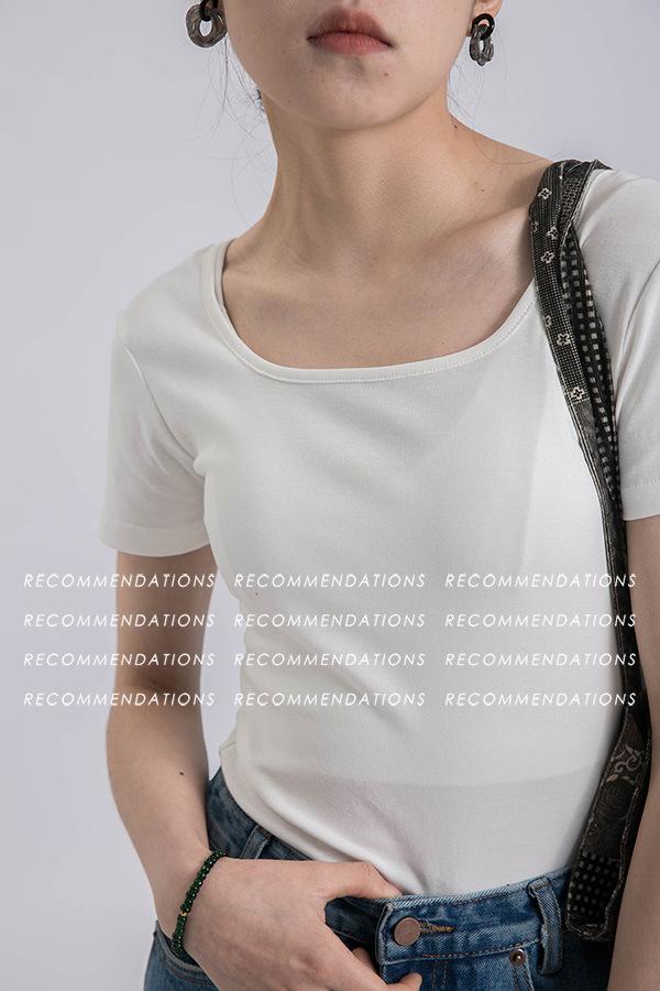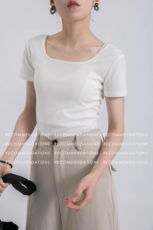 Camiseta de manga corta, corta, ajustada, blanca, con cuello cuadrado, para mujer, nuevo estilo, con hombros negros interiores, cuello en U grande, camisa de clavícula inferior