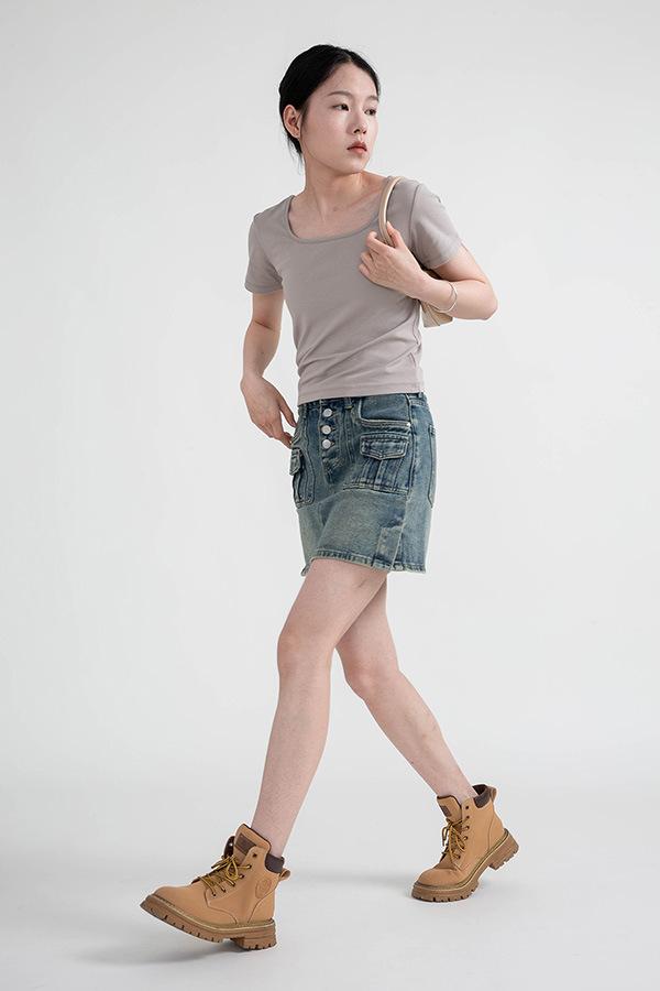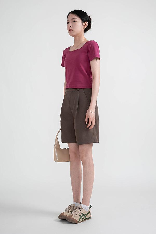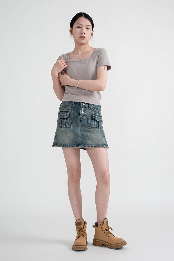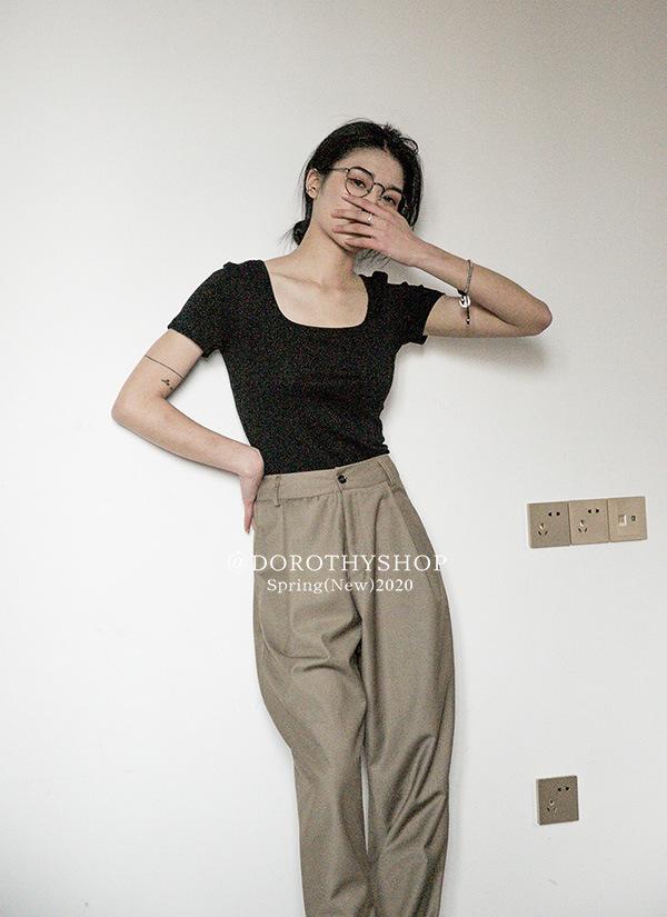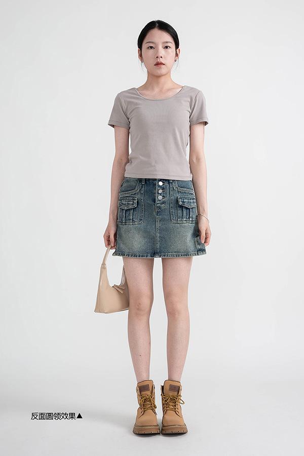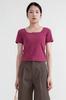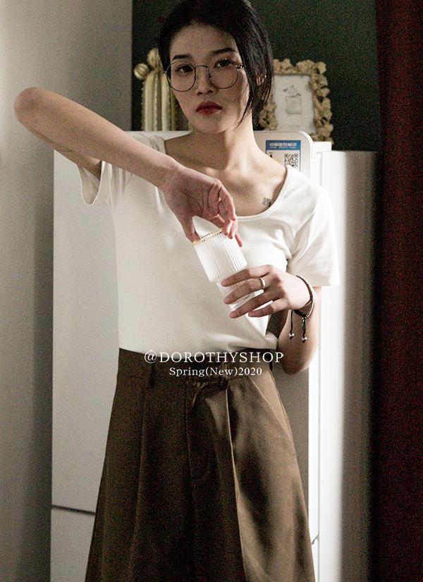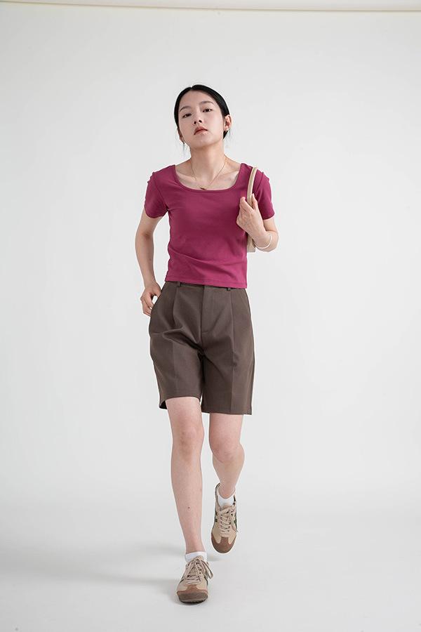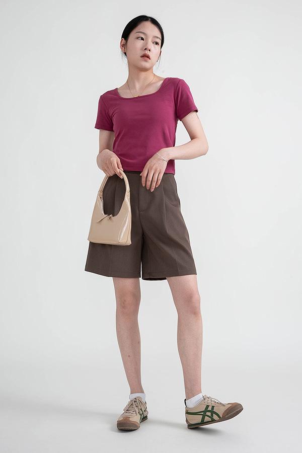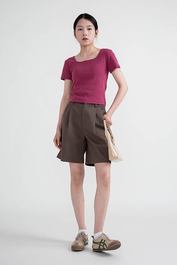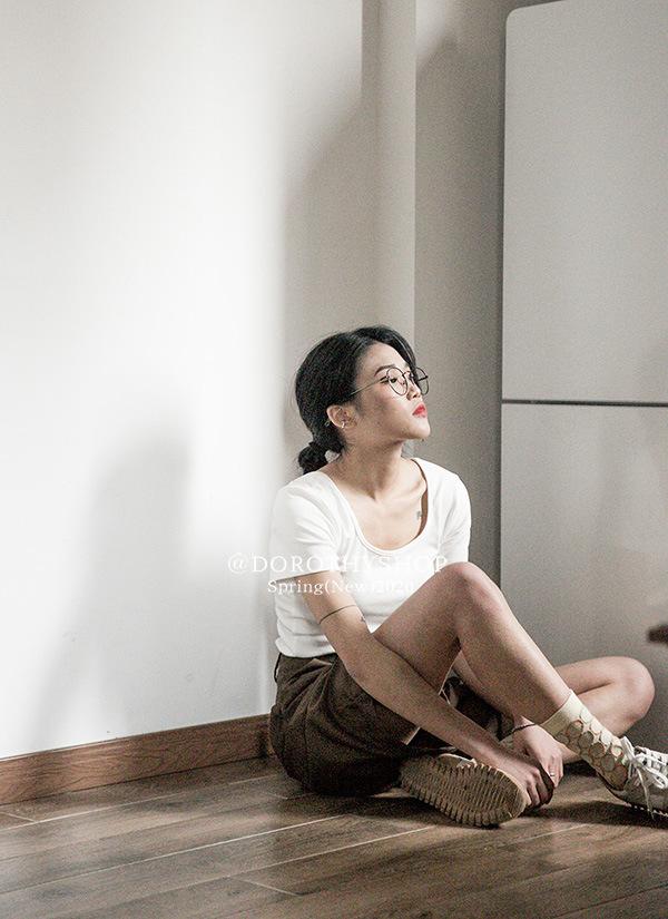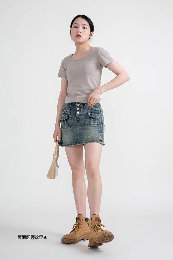 Camiseta de manga corta, corta, ajustada, blanca, con cuello cuadrado, para mujer, nuevo estilo, con hombros negros interiores, cuello en U grande, camisa de clavícula inferior