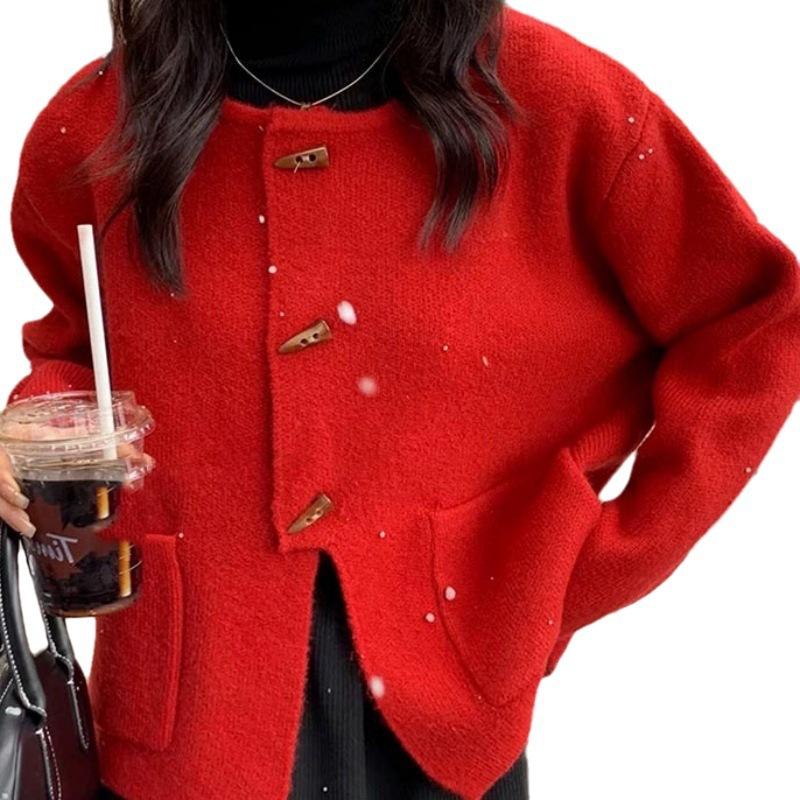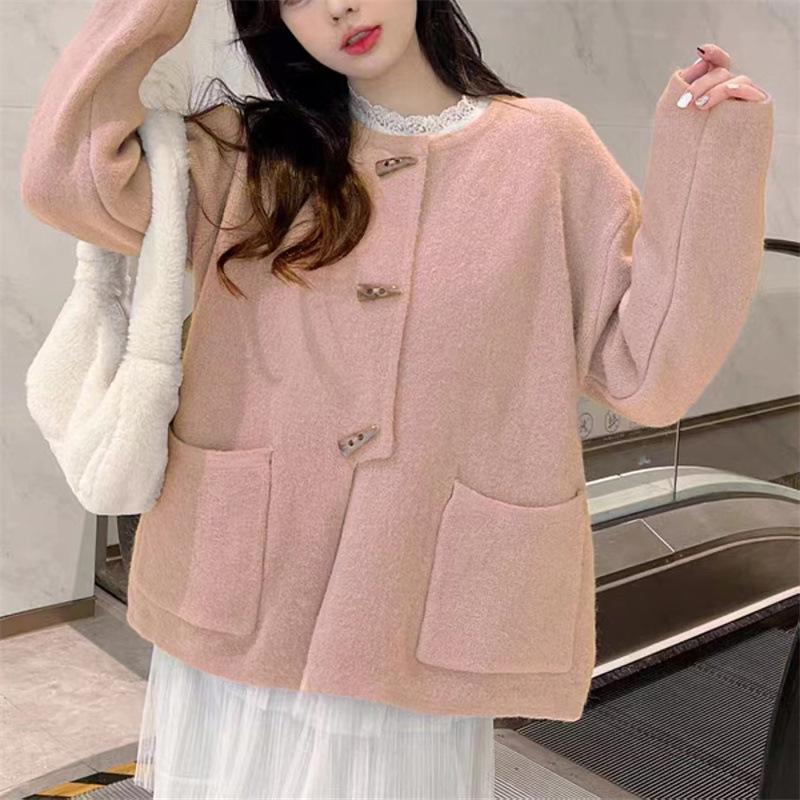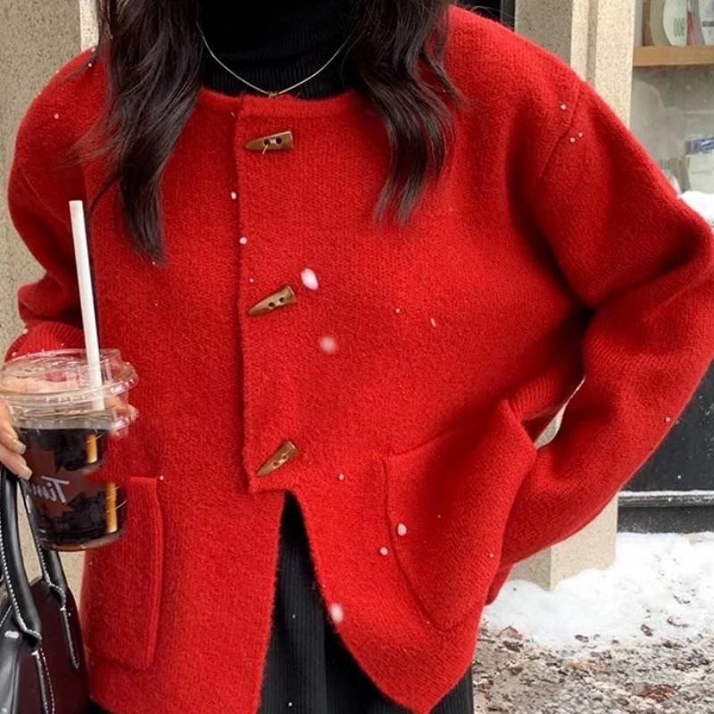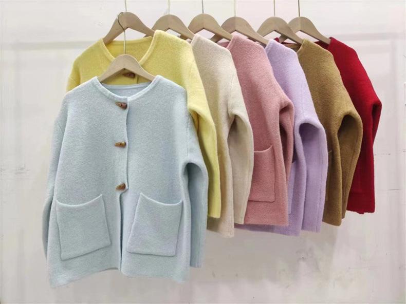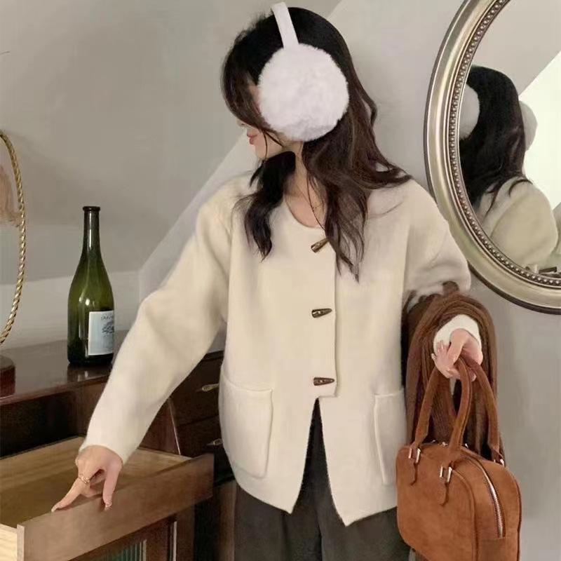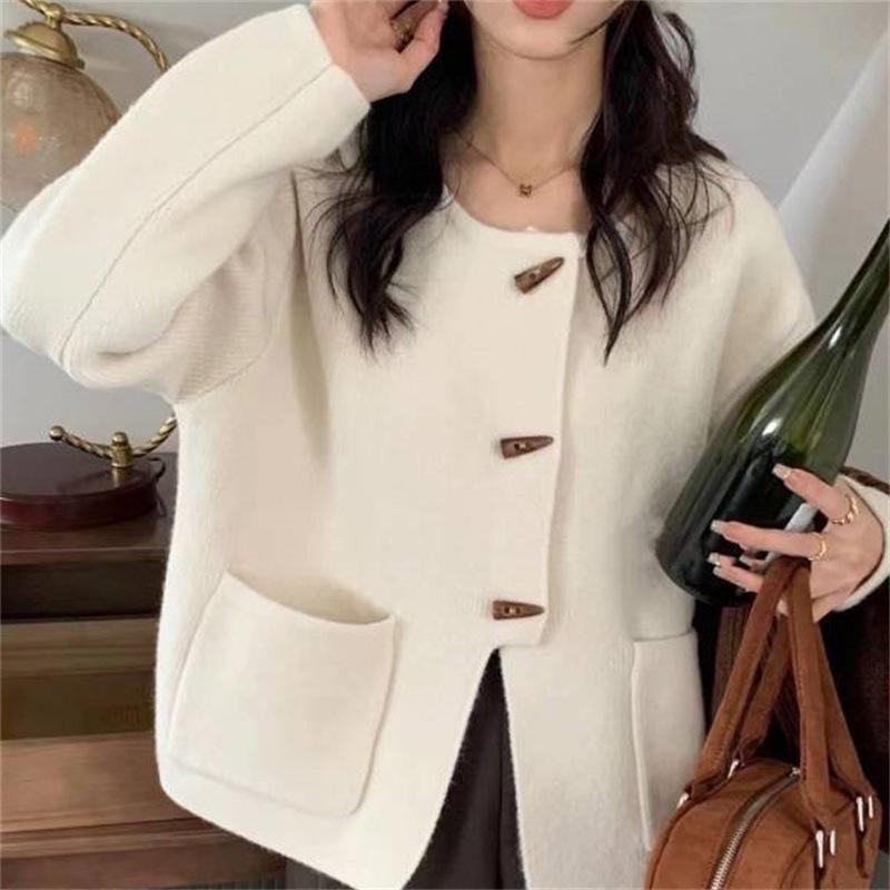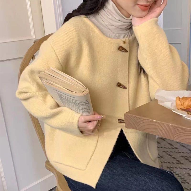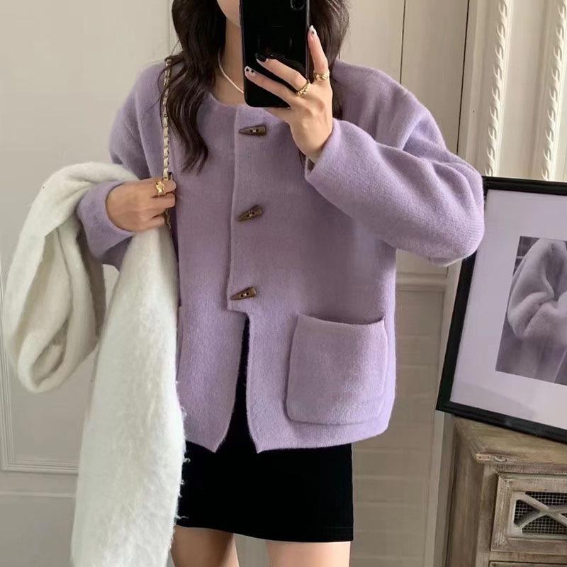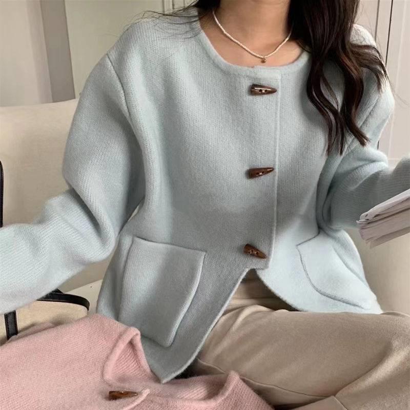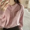 Cárdigan de punto holgado de manga larga con cuello redondo y color sólido de estilo coreano para mujer, ropa de otoño 2023
