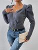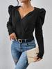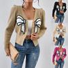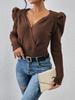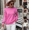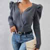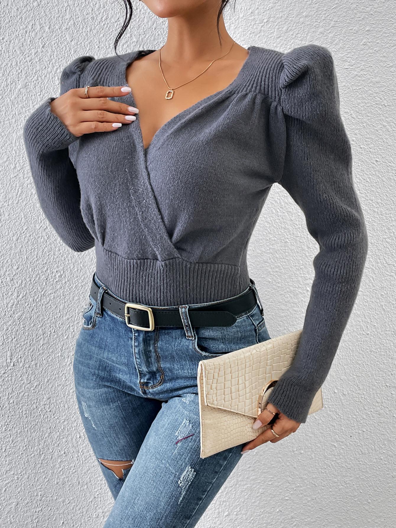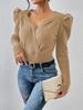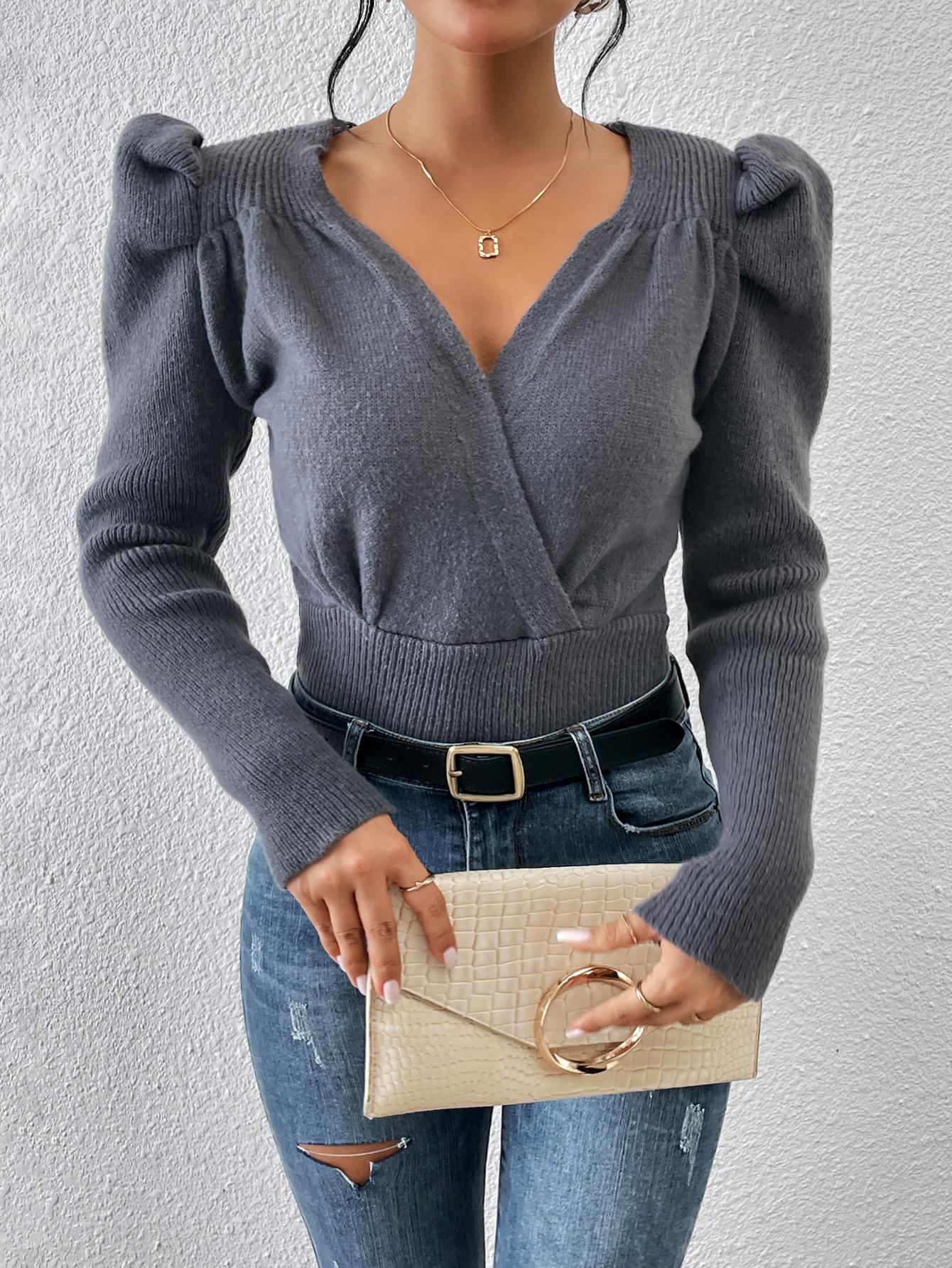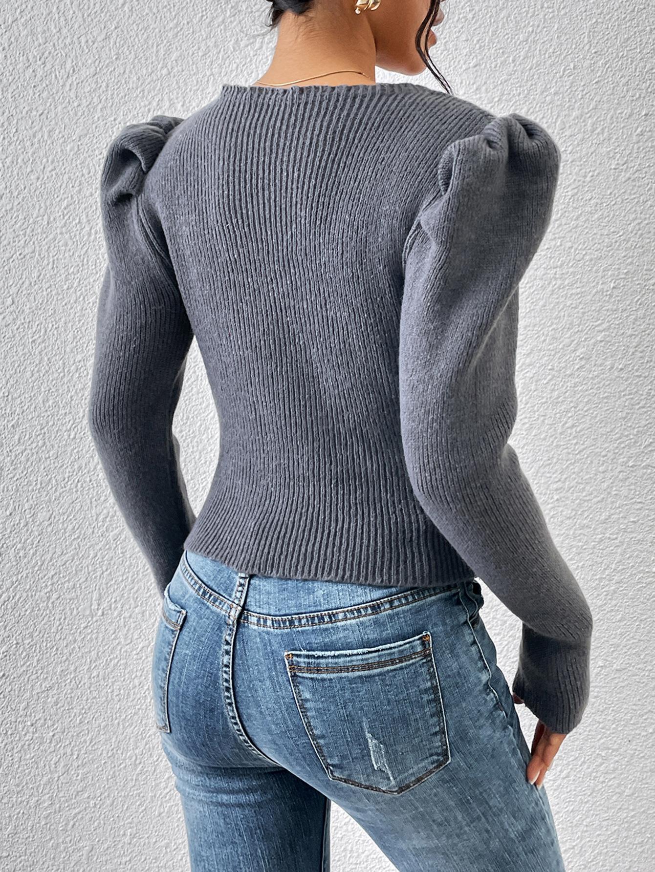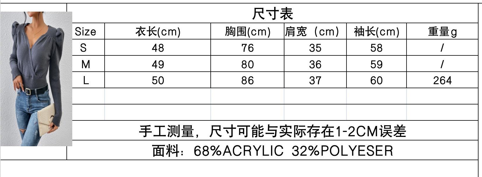 2023 Otoño e Invierno Nuevo Tejido de Punto Transfronterizo Europeo y Americano Amazon Cárdigan de Punto con Cuello en V Ins Manga Abullonada Suéter Tejido para Mujer