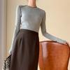 Hongshan Clásico Pliegue Invertido 2024 Nueva Camiseta Otoño Alta Elasticidad Ajustada Tejido Denso Camiseta Base Manga Larga