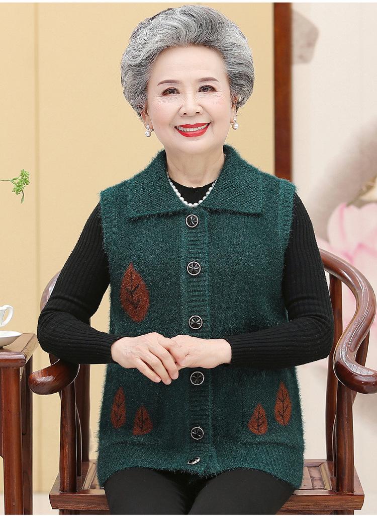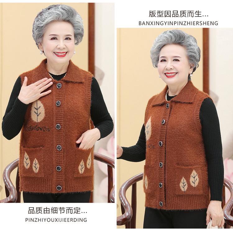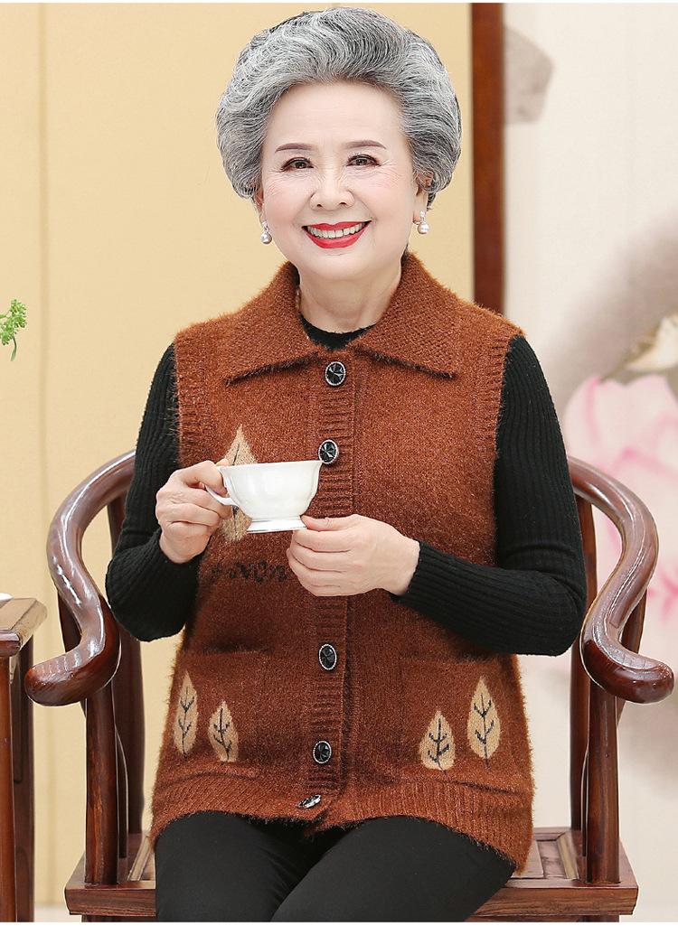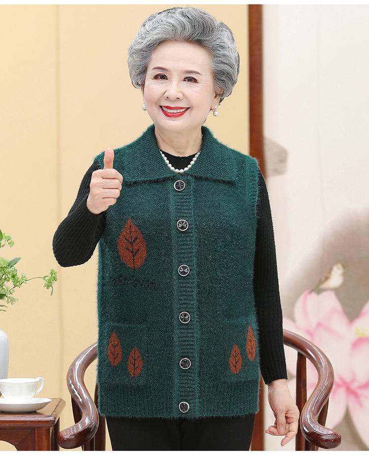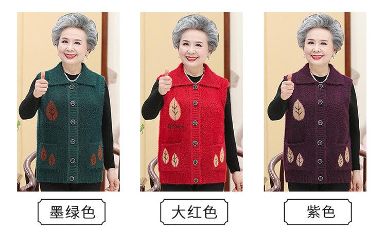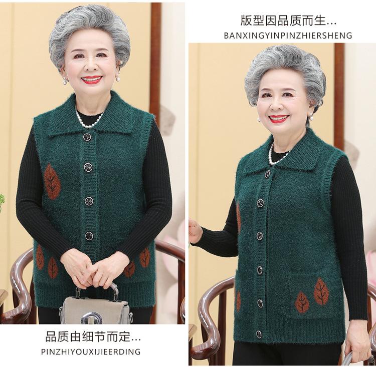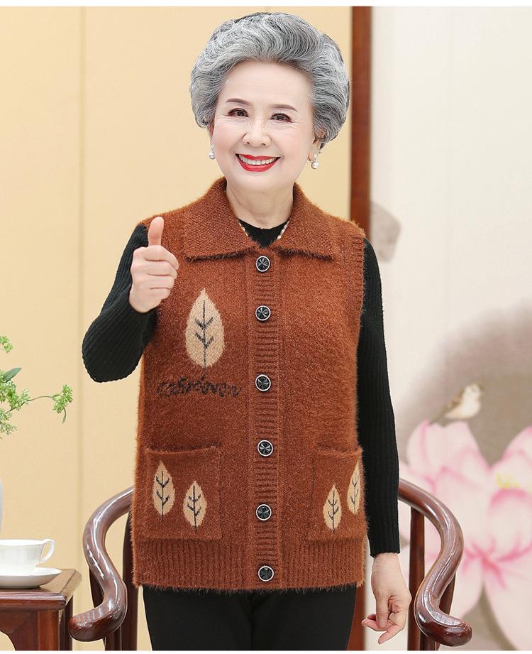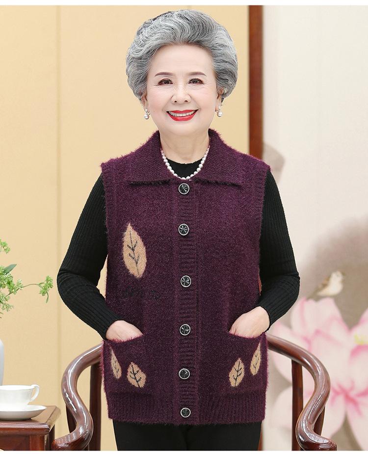 Chaleco de mujer de mediana edad y anciana, cárdigan de punto de abuela de primavera y otoño, chaleco de invierno de terciopelo para madre, chaleco tipo suéter