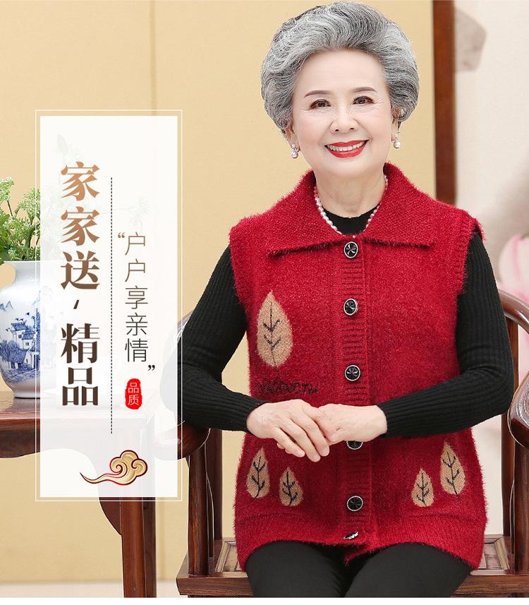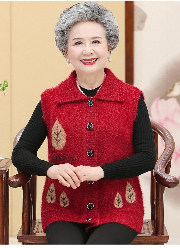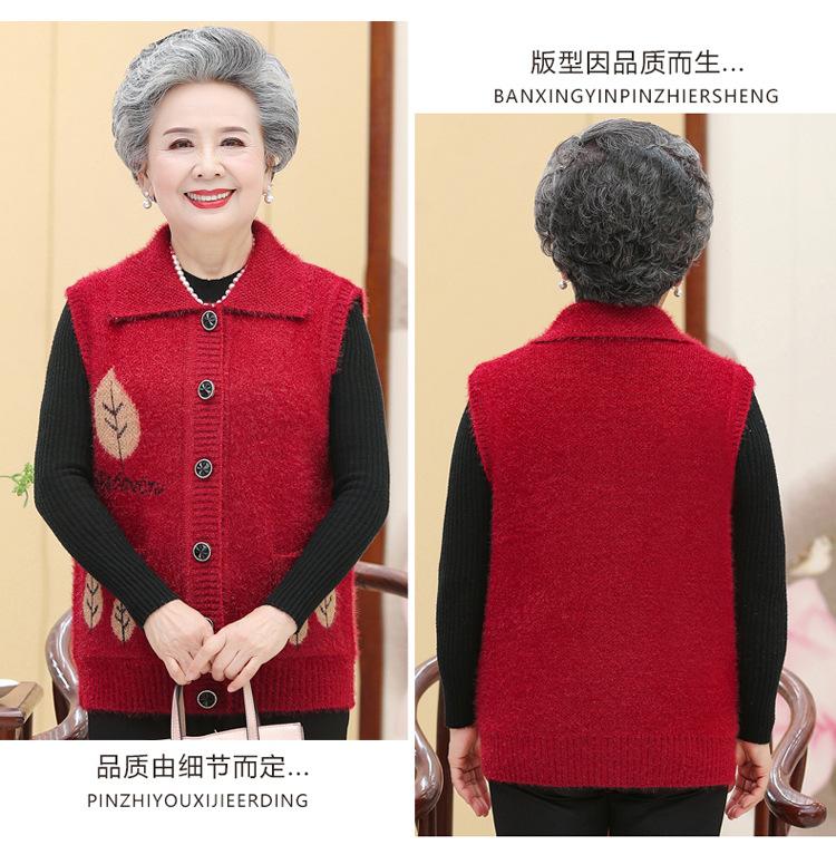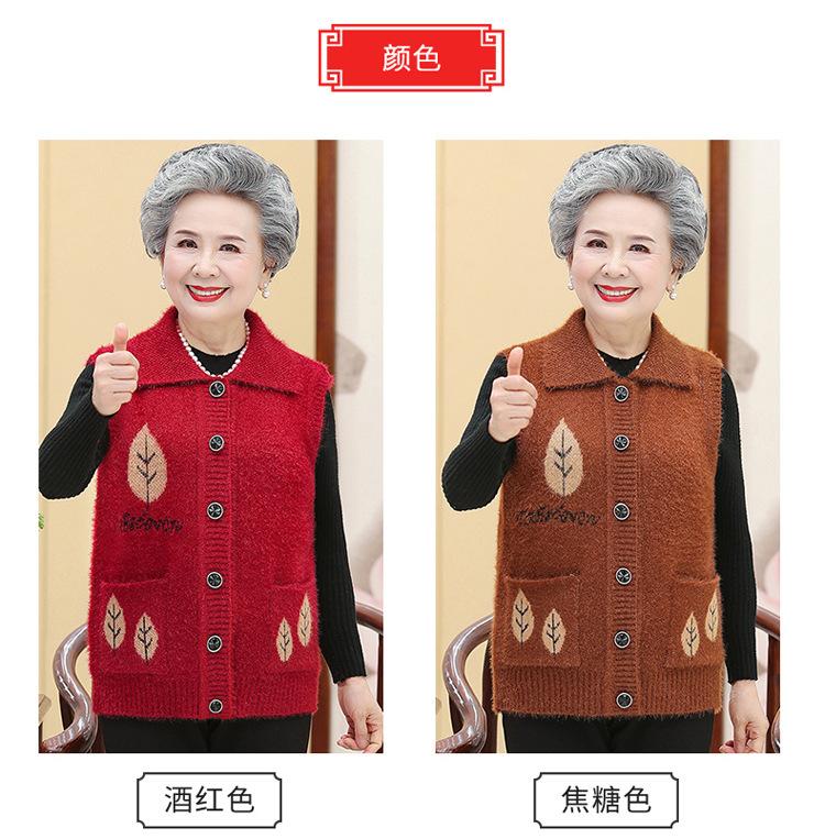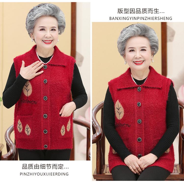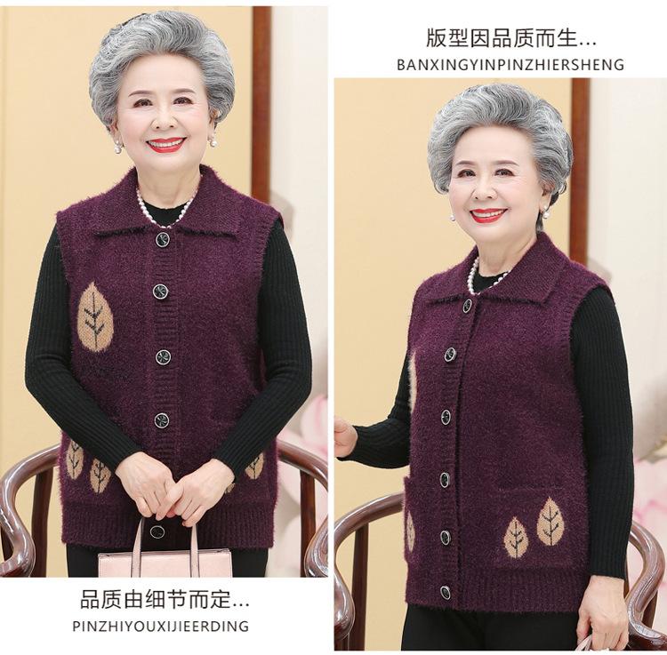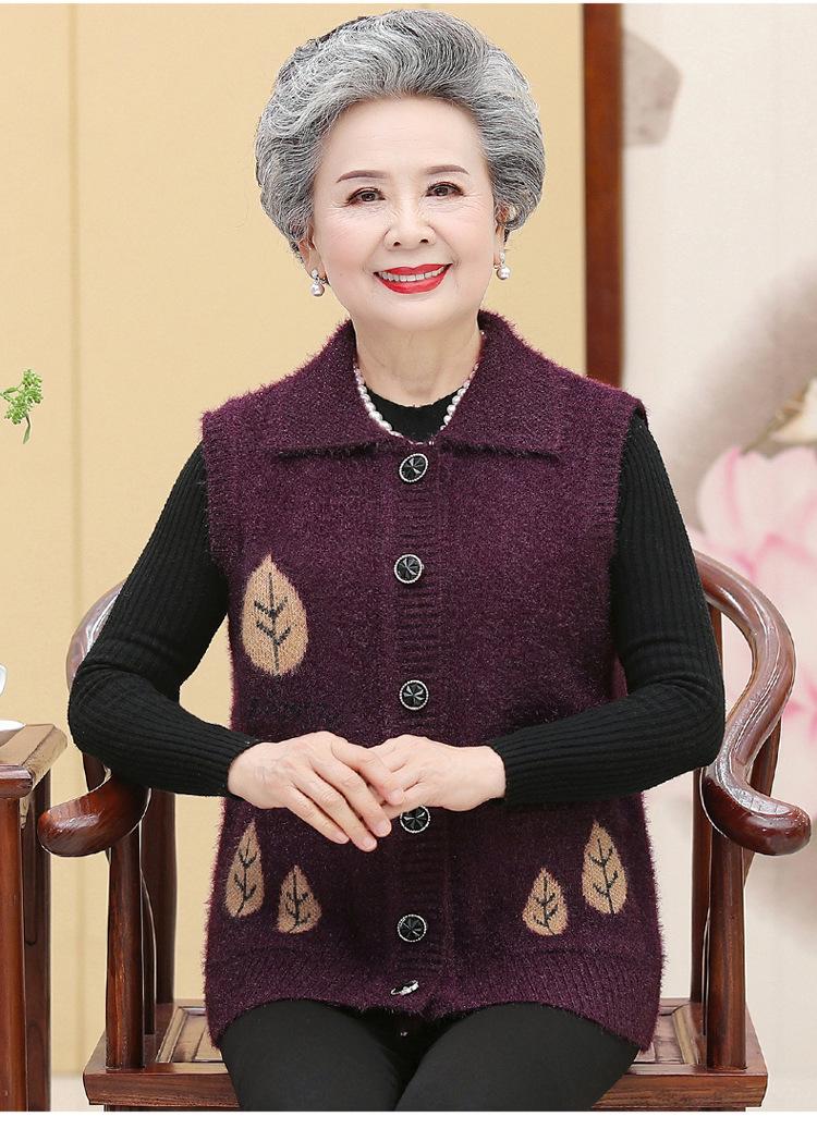 Chaleco de mujer de mediana edad y anciana, cárdigan de punto de abuela de primavera y otoño, chaleco de invierno de terciopelo para madre, chaleco tipo suéter