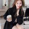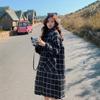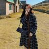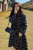 Abrigo de cachemira de cuadros negros de tiro real para mujer largo otoño e invierno 2024 nuevo abrigo de lana viento Hepburn marea