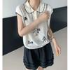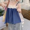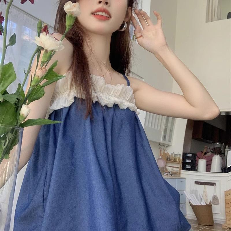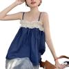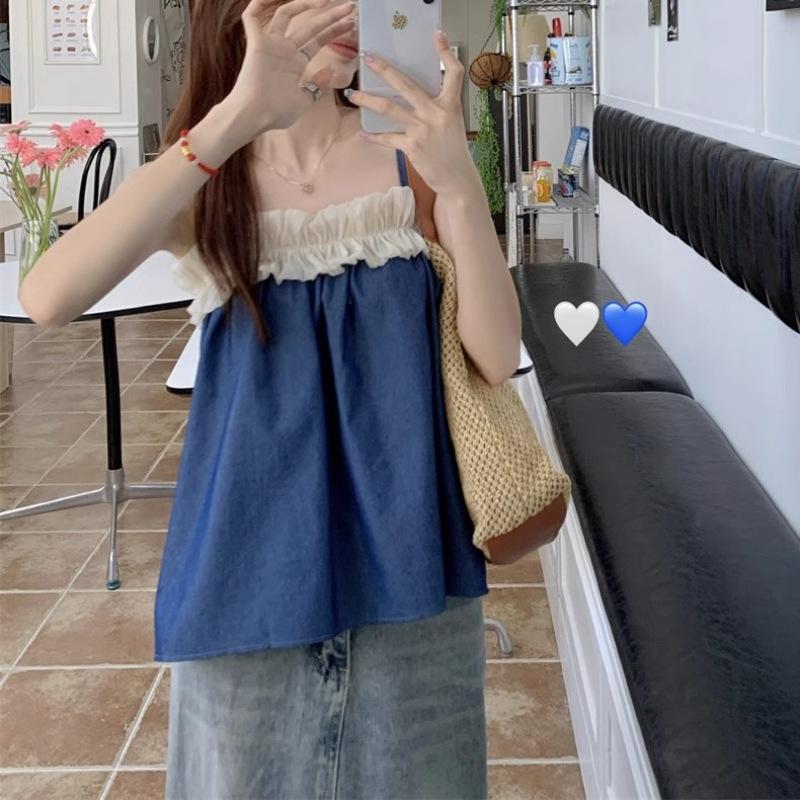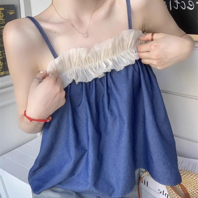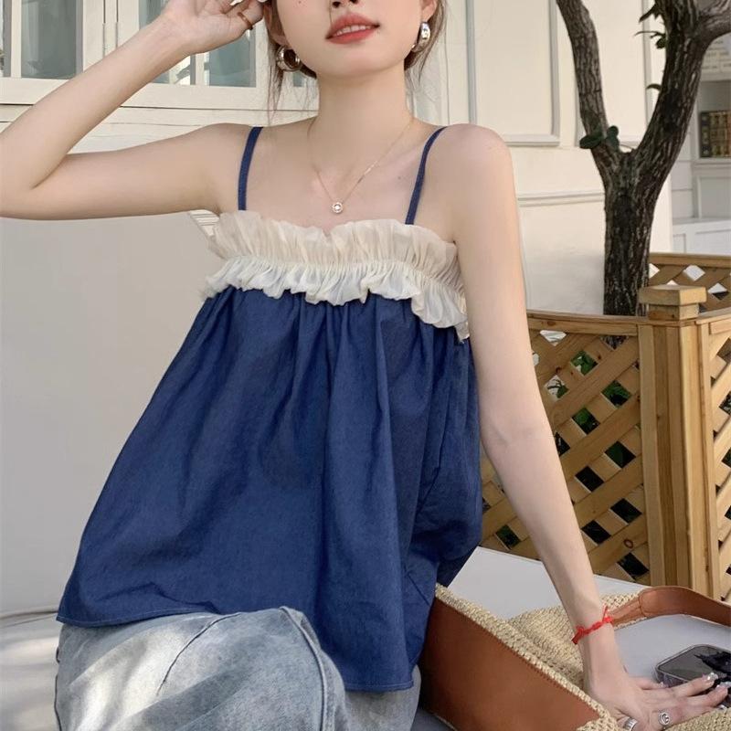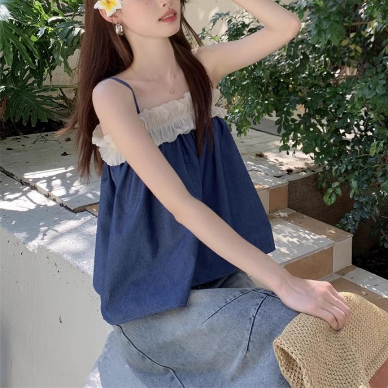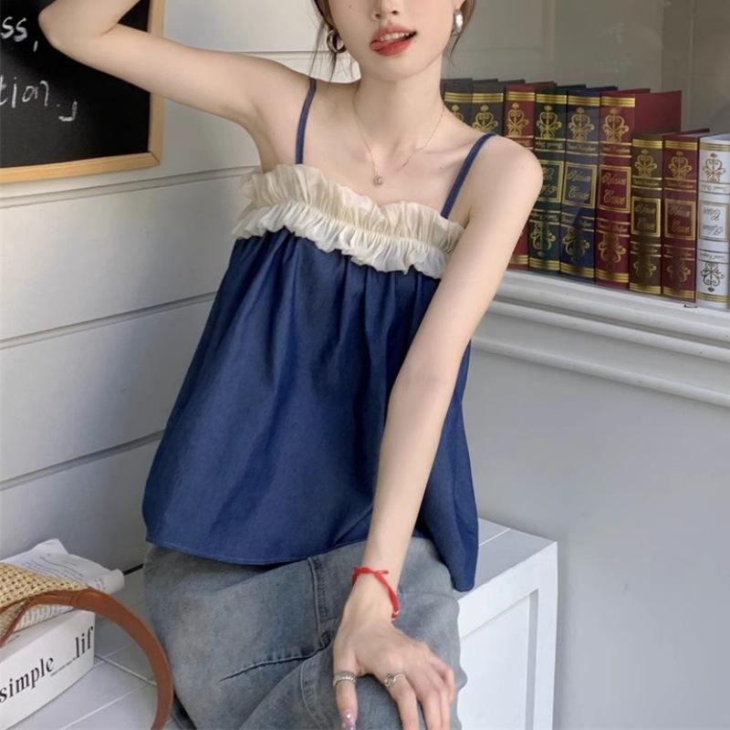Camisola Pequeña Versátil Francesa de Estilo Retro Nuevo de Alta Gama Ropa Interior de Mujer Verano Top con Volantes Empalmado