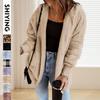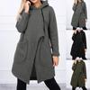 Abrigo de suéter con capucha holgado informal de longitud media con borde cruzado para mujer de talla grande de otoño e invierno de Europa y América para mujer