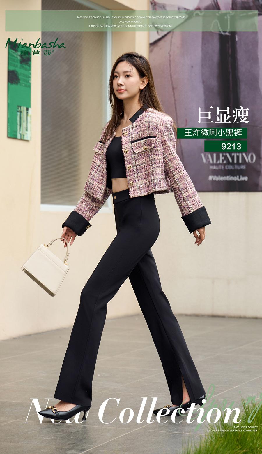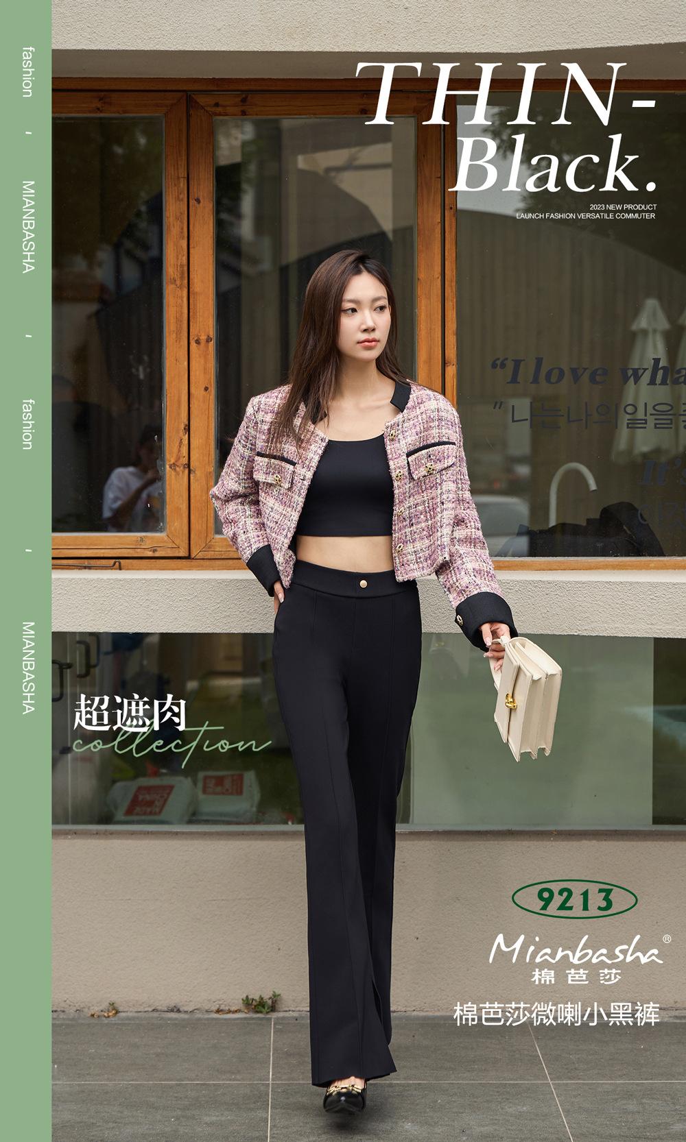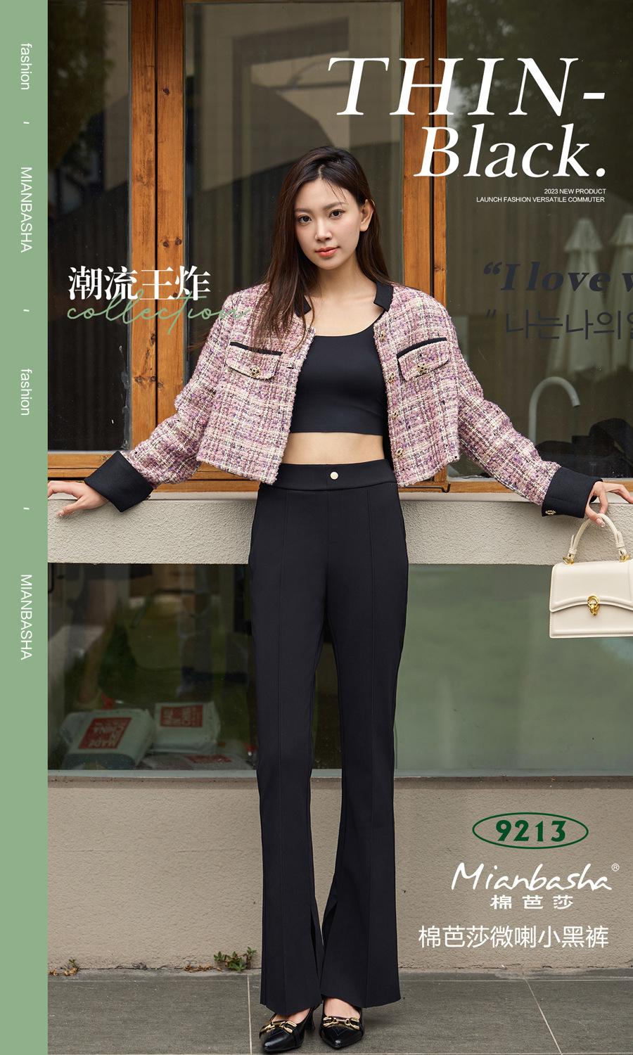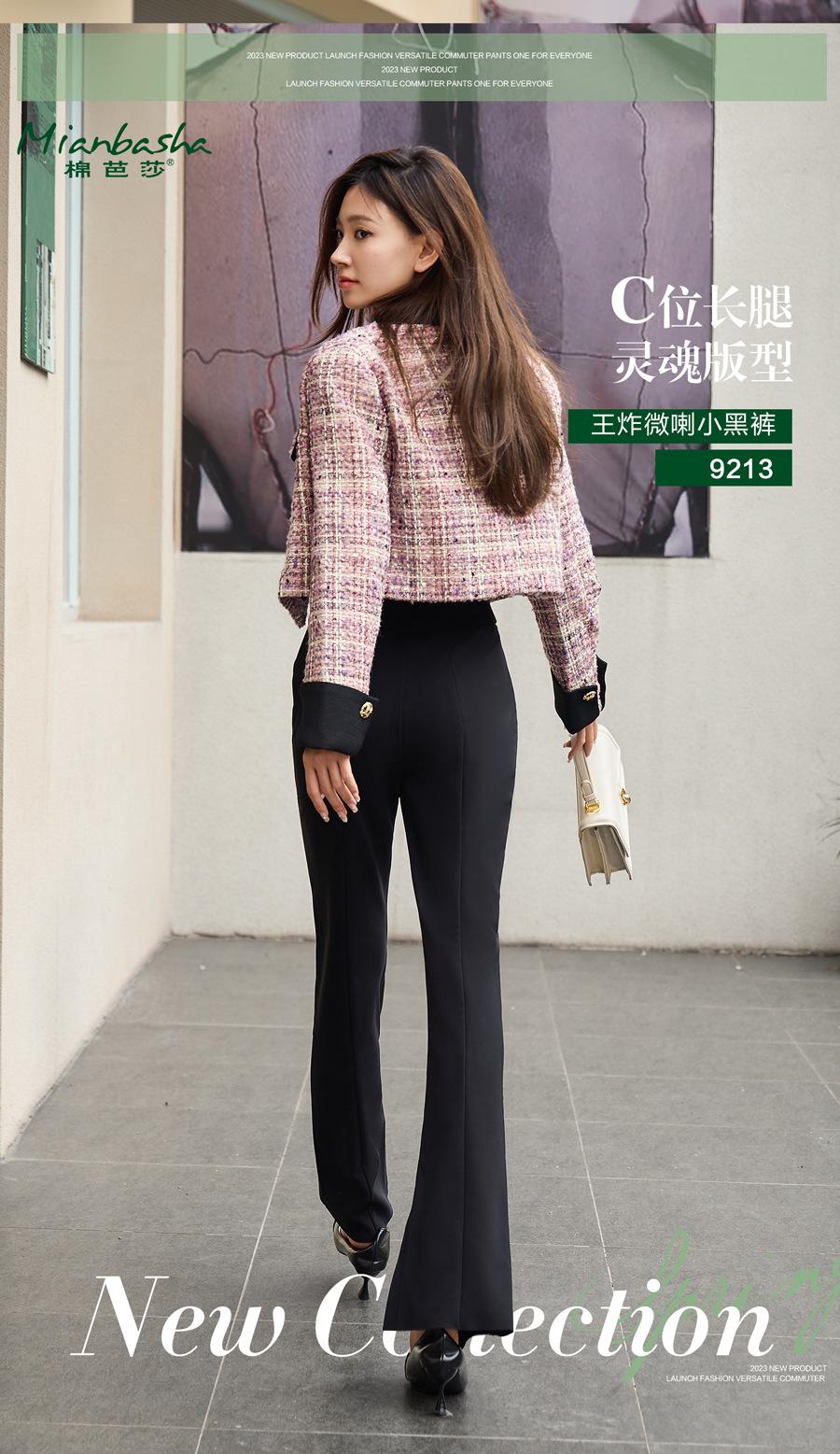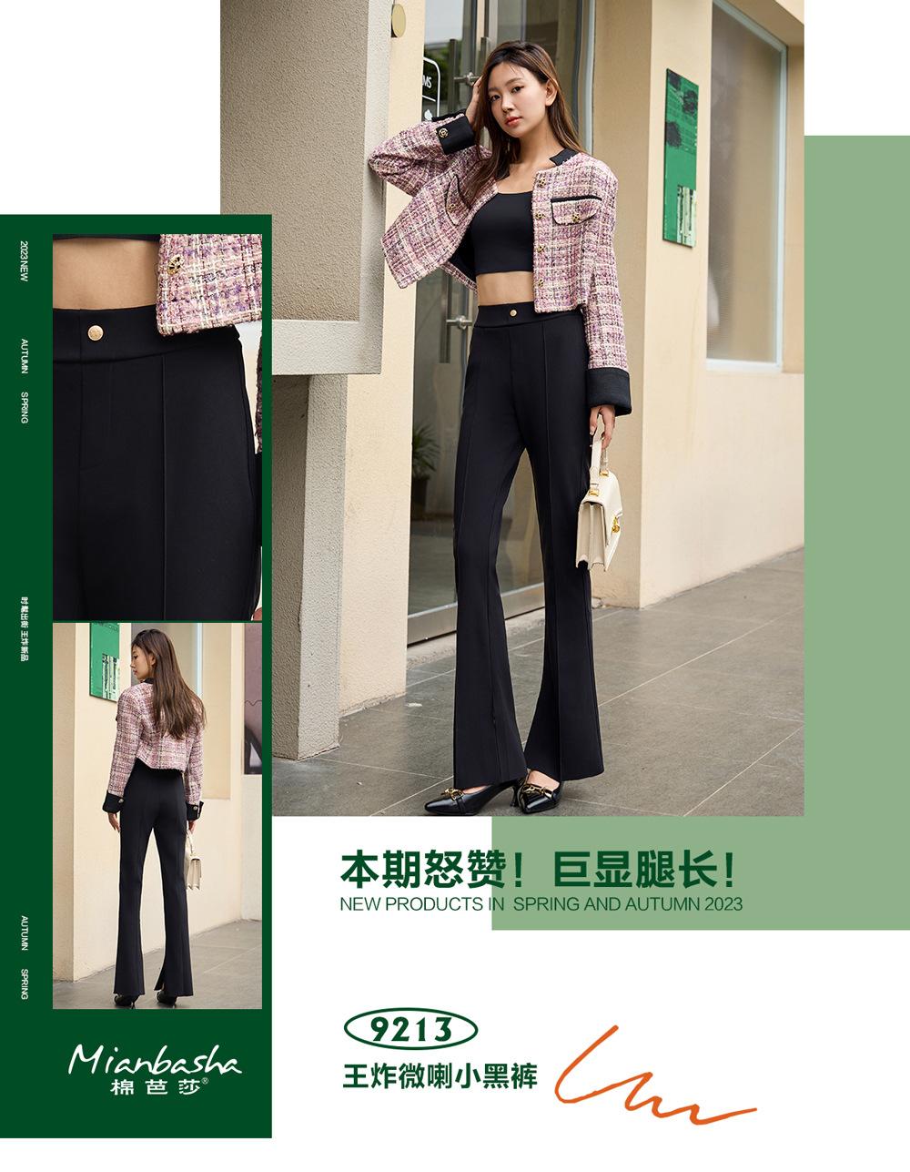 Pantalones Micro-Lara divididos de primavera y verano para mujer, cintura alta, elásticos, ajustados, adelgazantes, pantalones casuales pequeños acampanados