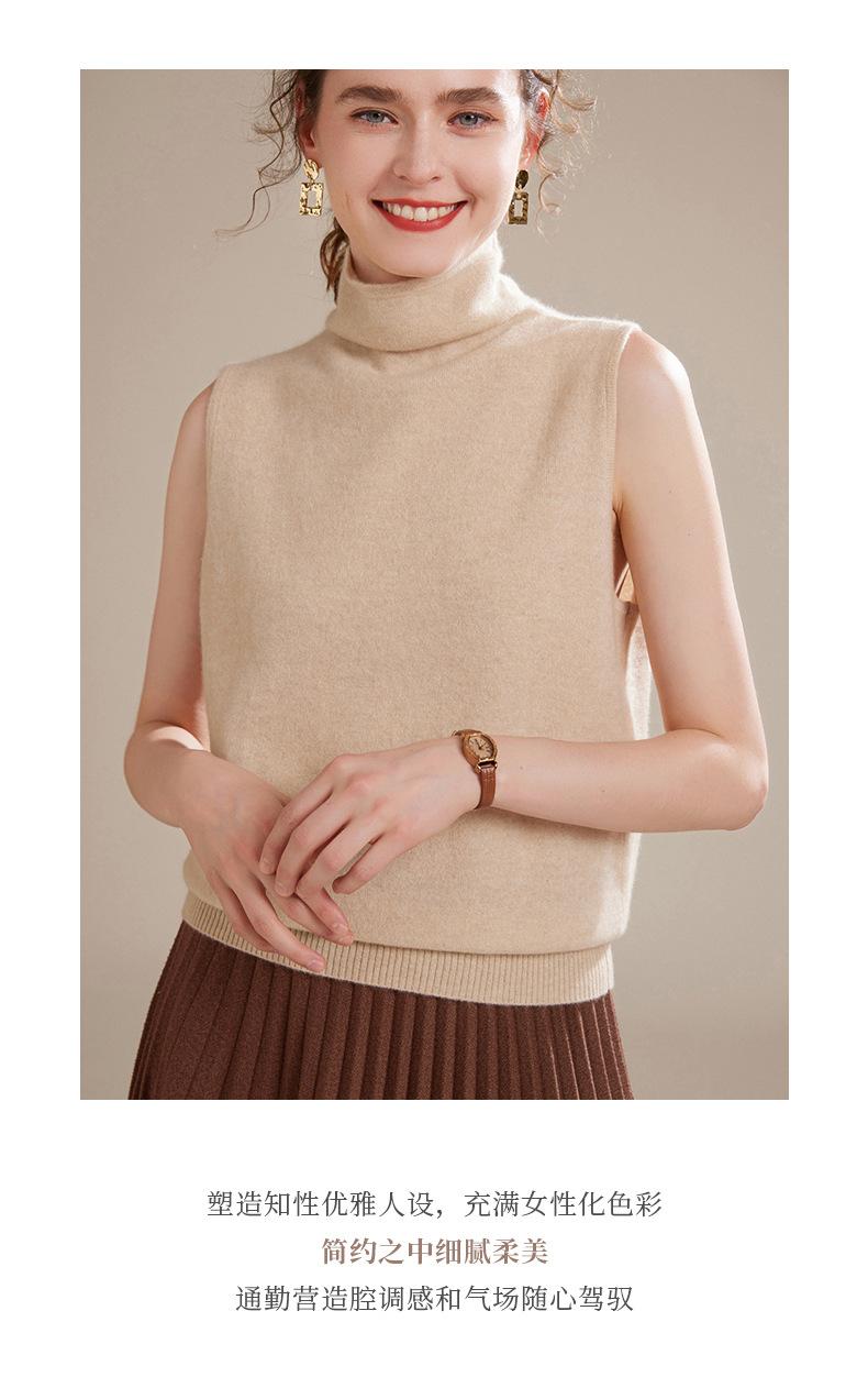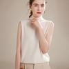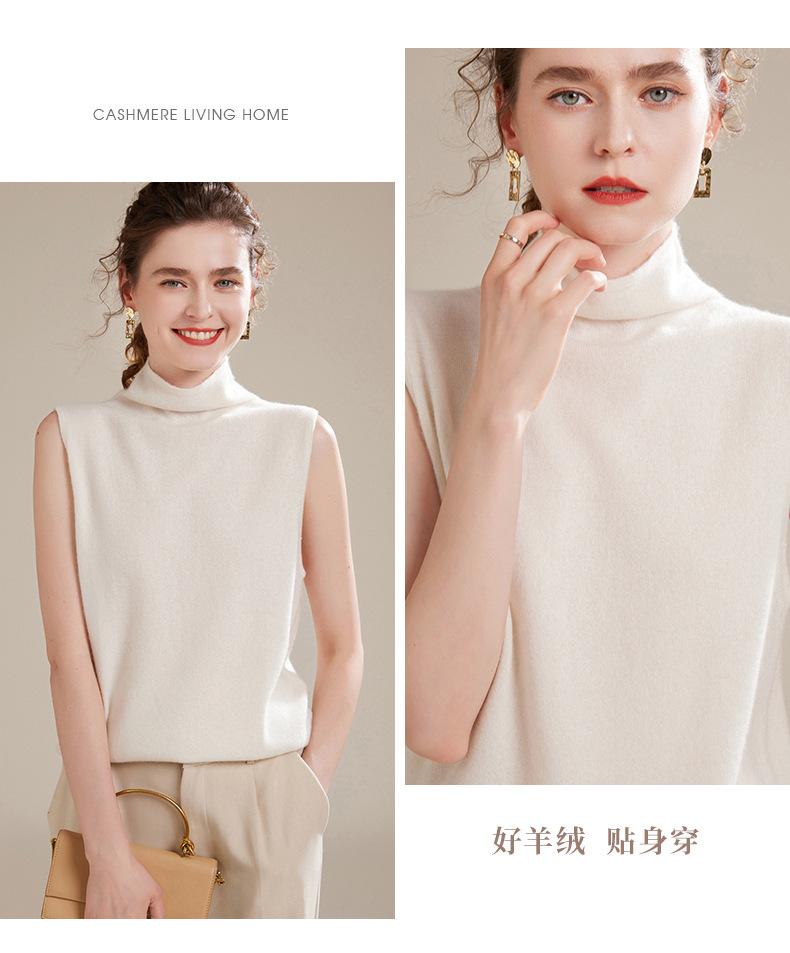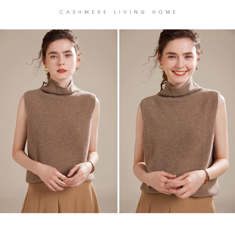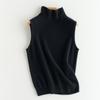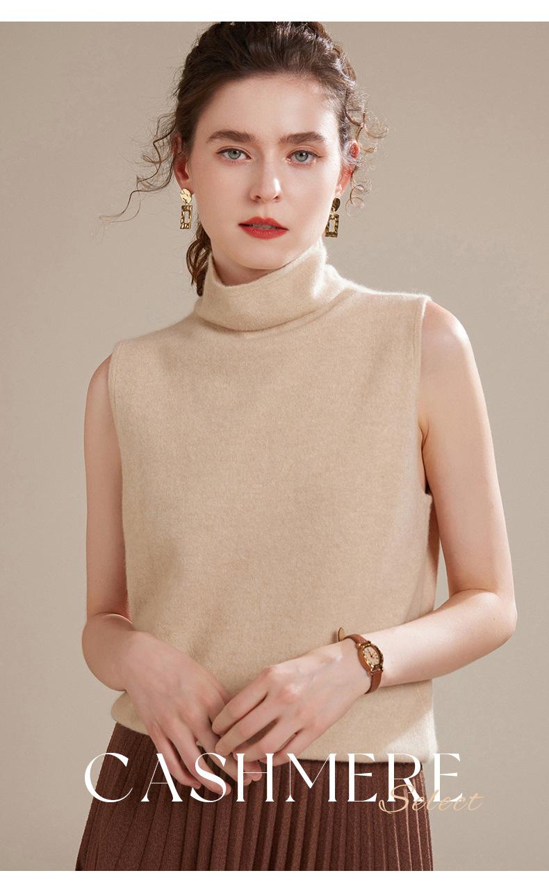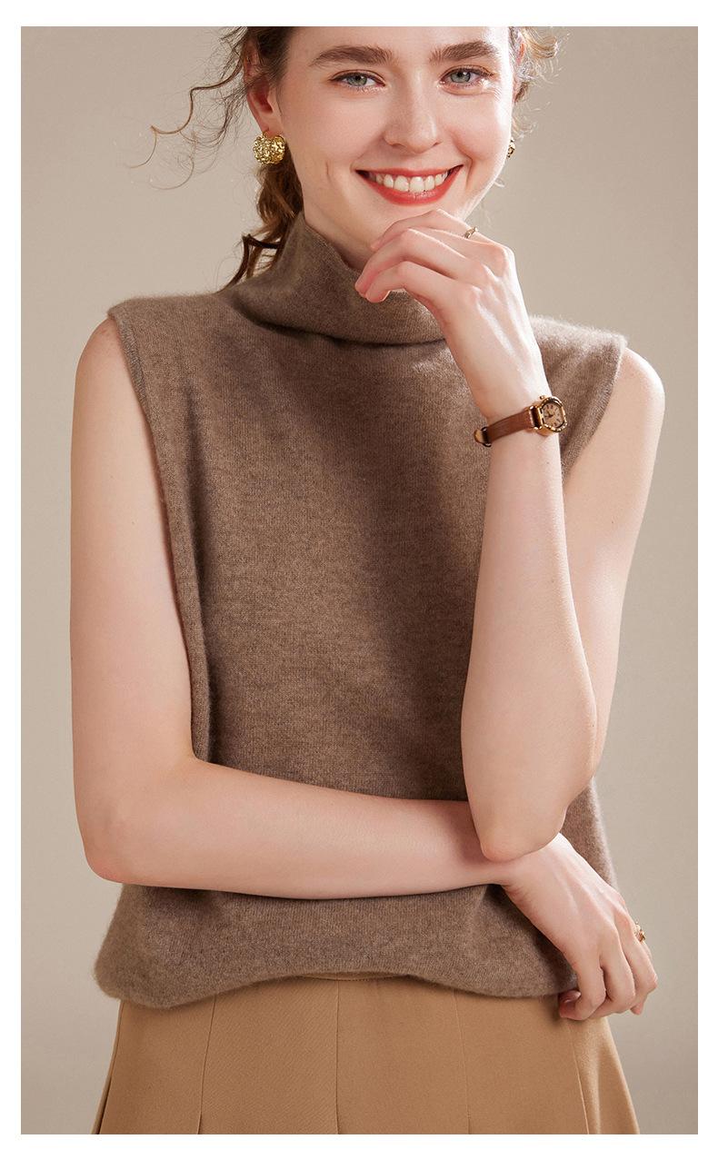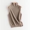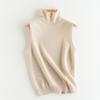 Chaleco de Cachemira 100% Pura para Mujer Otoño e Invierno 2024 Nueva Moda Color Puro Cuello Alto Jersey Tejido sin Mangas