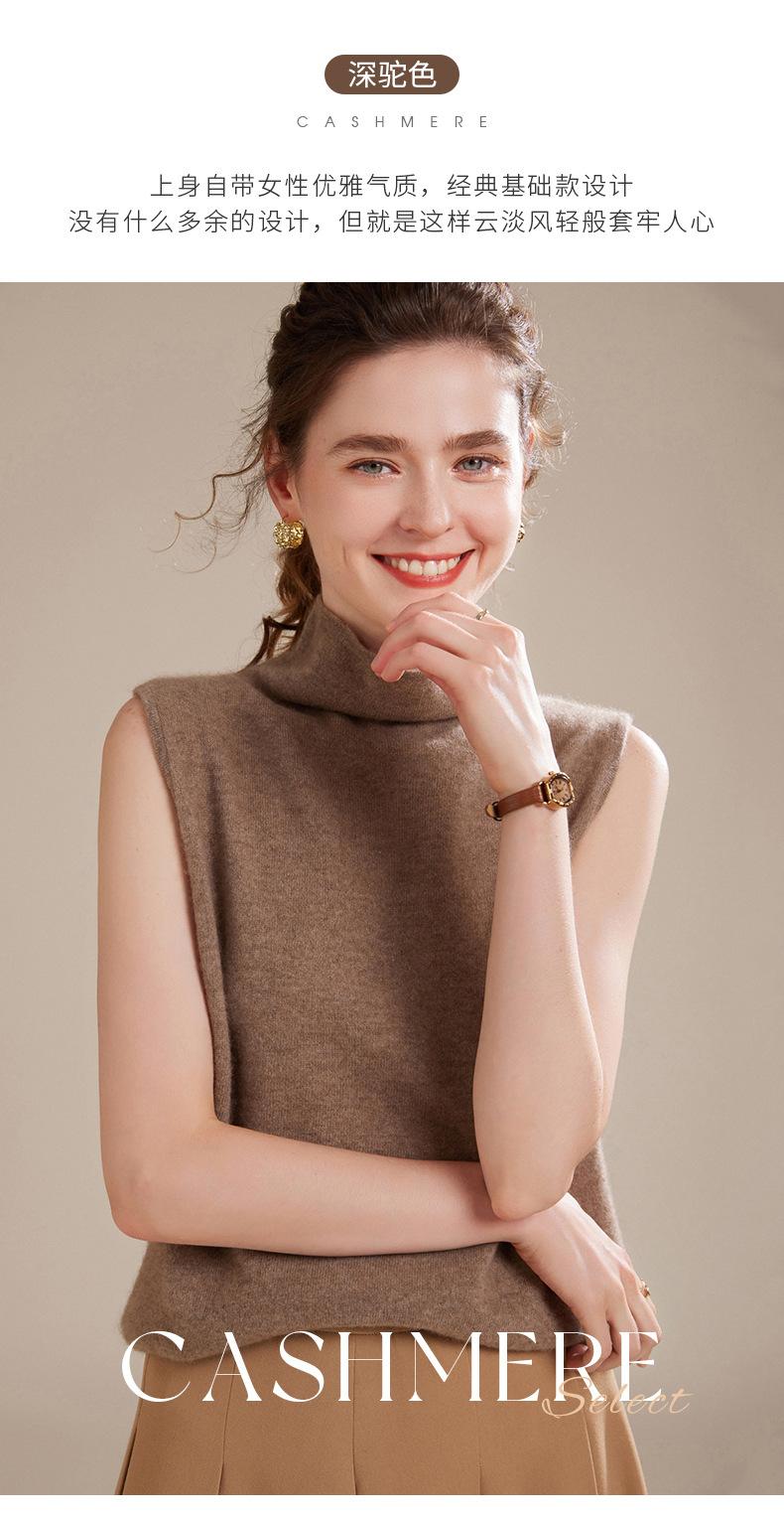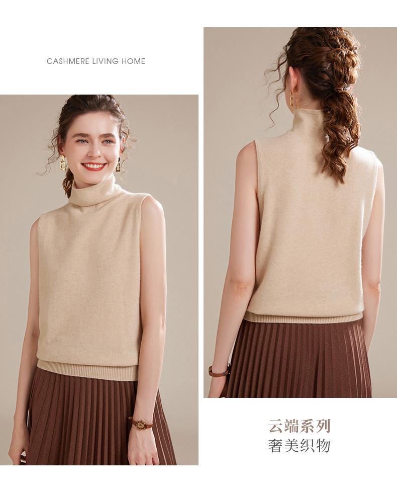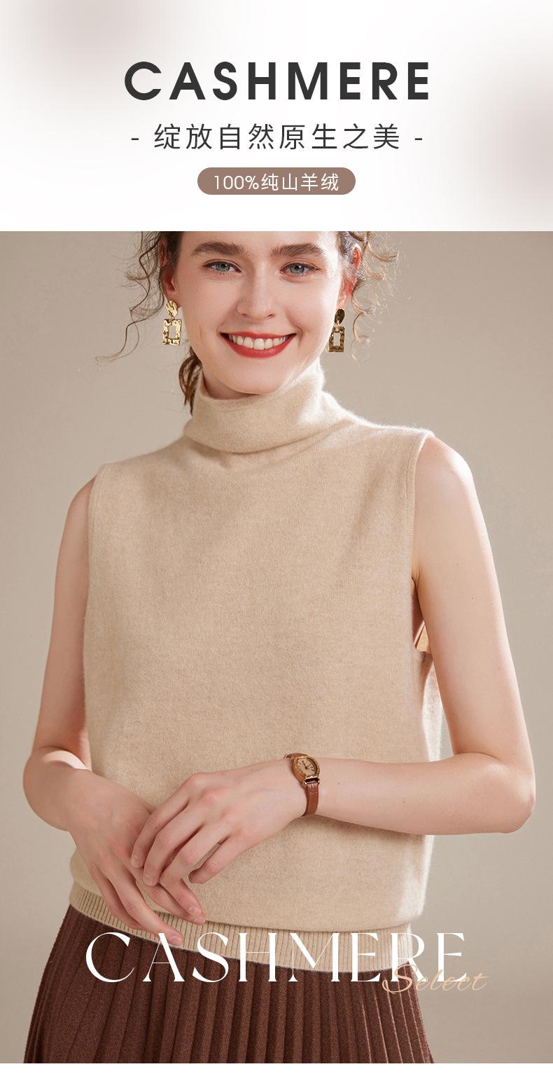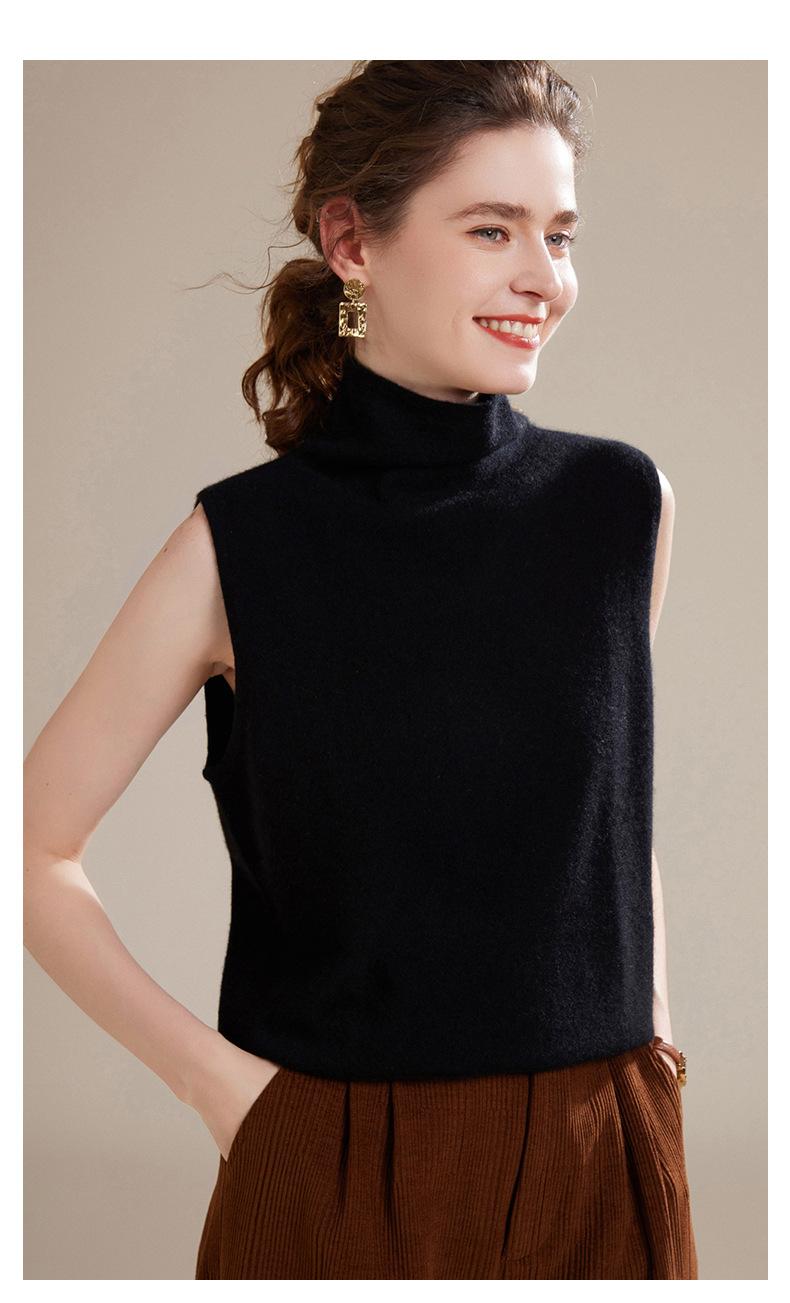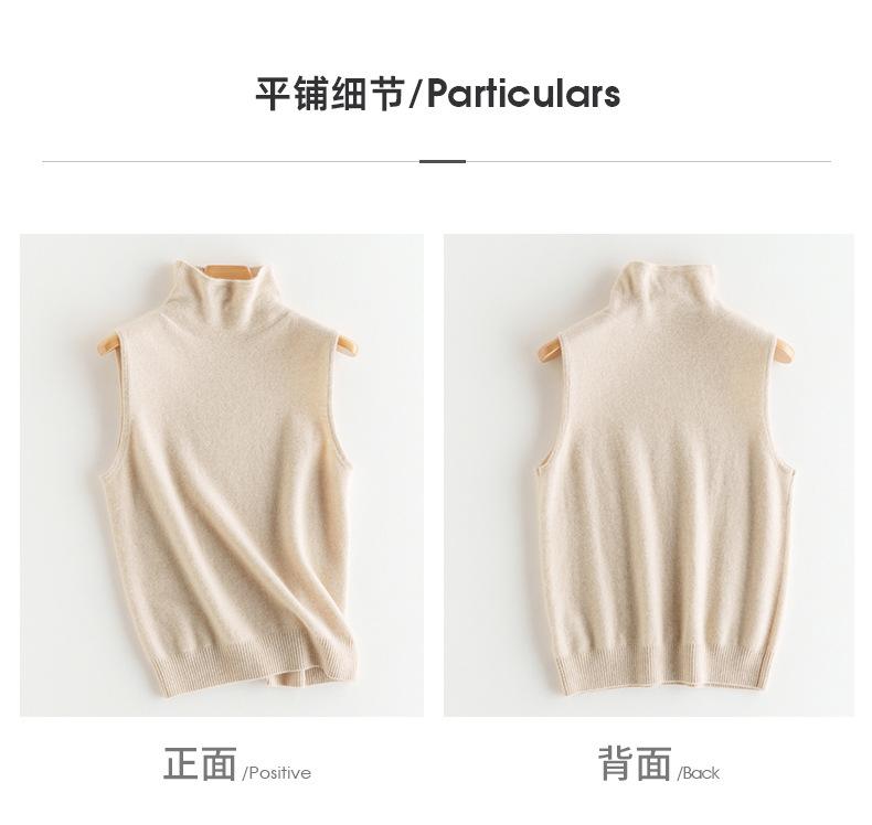 Chaleco de Cachemira 100% Pura para Mujer Otoño e Invierno 2024 Nueva Moda Color Puro Cuello Alto Jersey Tejido sin Mangas