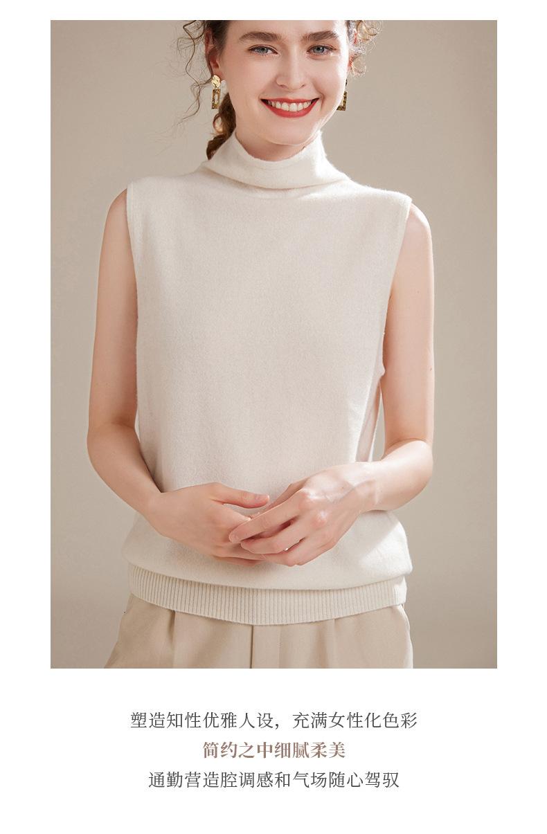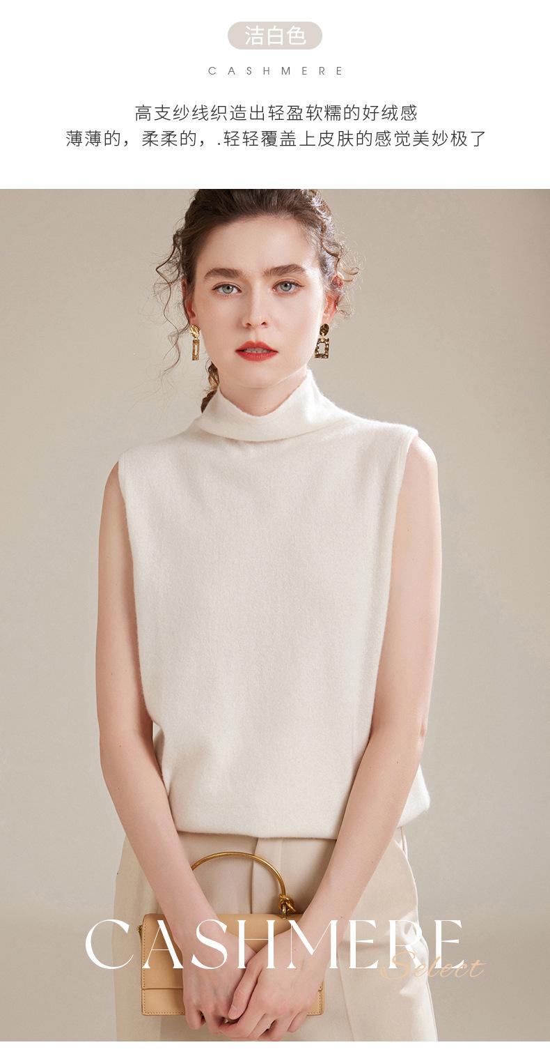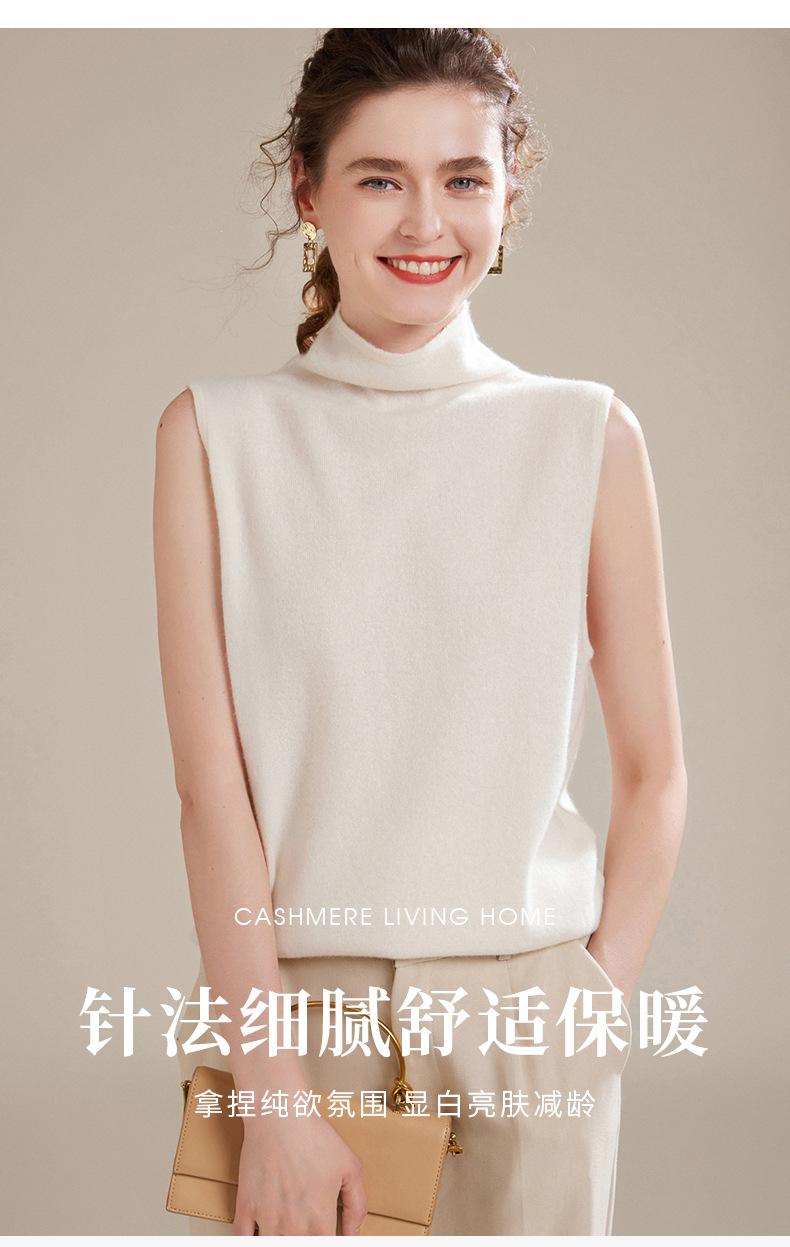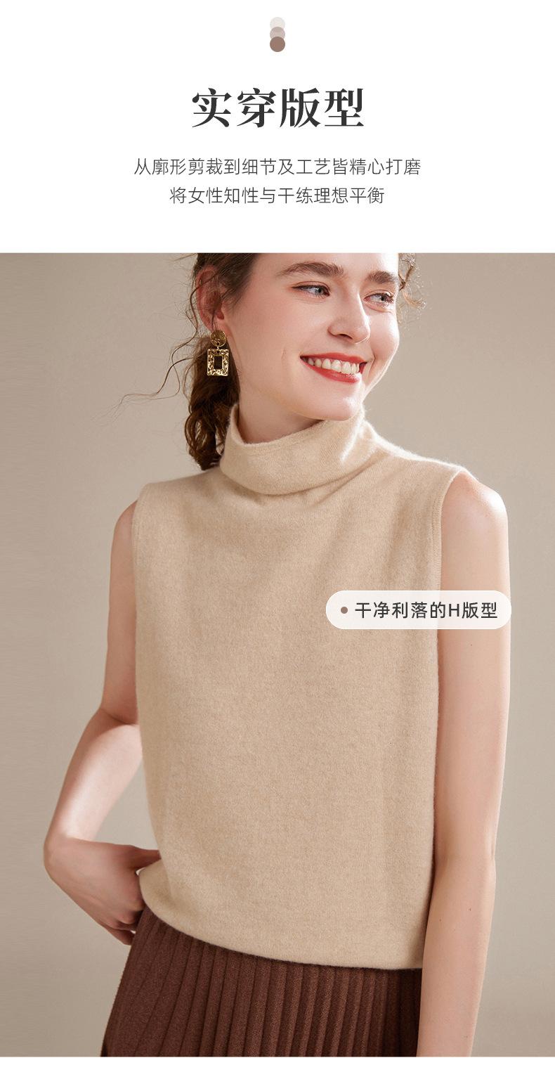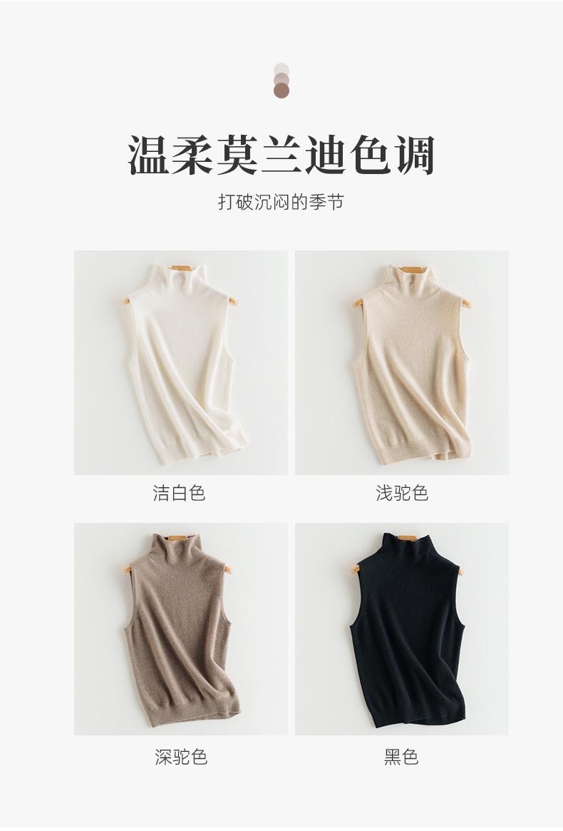 Chaleco de Cachemira 100% Pura para Mujer Otoño e Invierno 2024 Nueva Moda Color Puro Cuello Alto Jersey Tejido sin Mangas