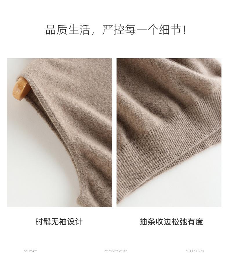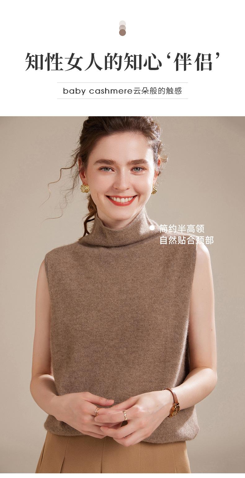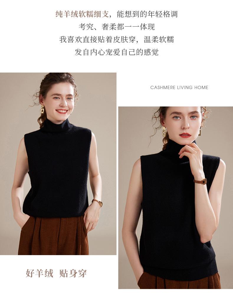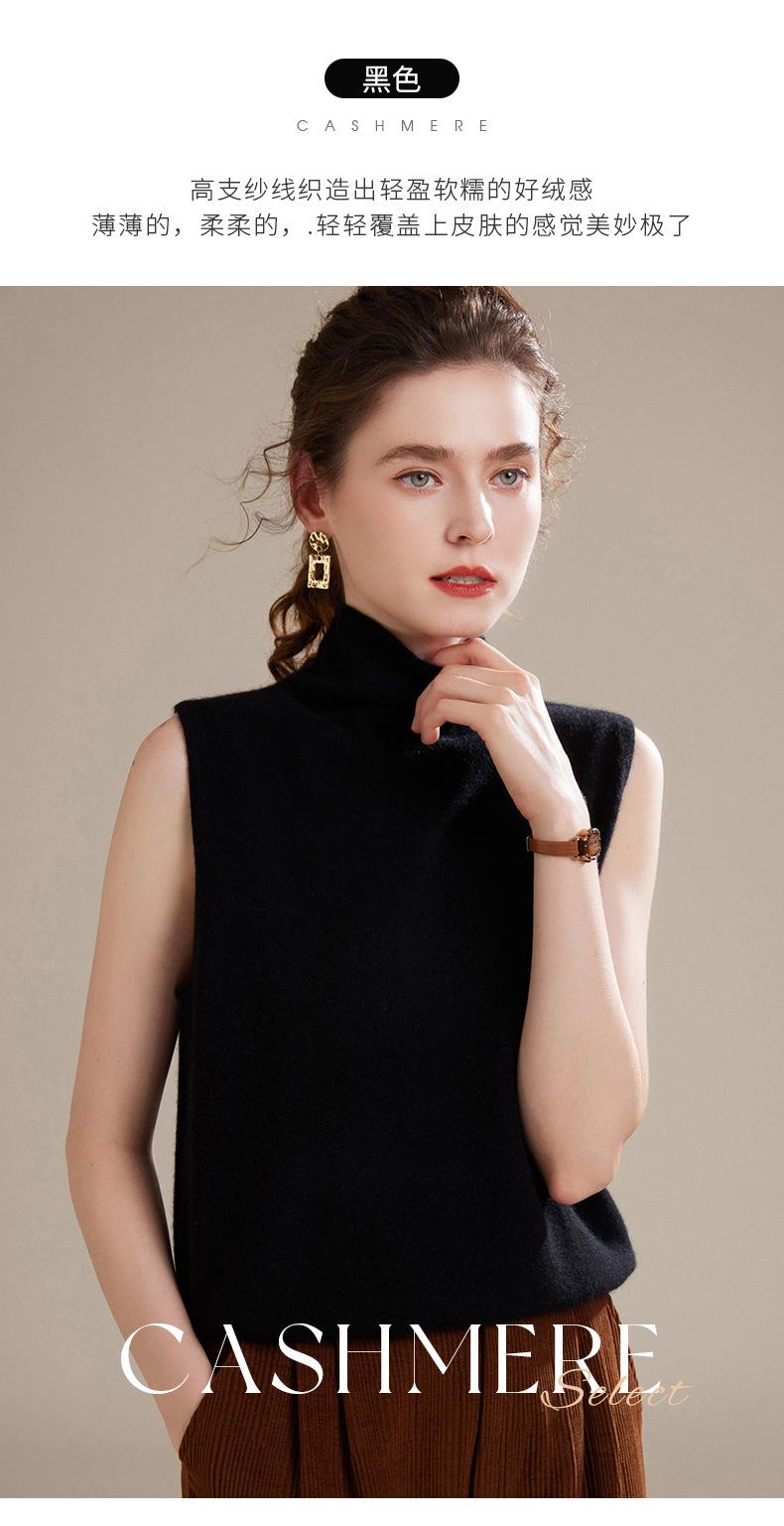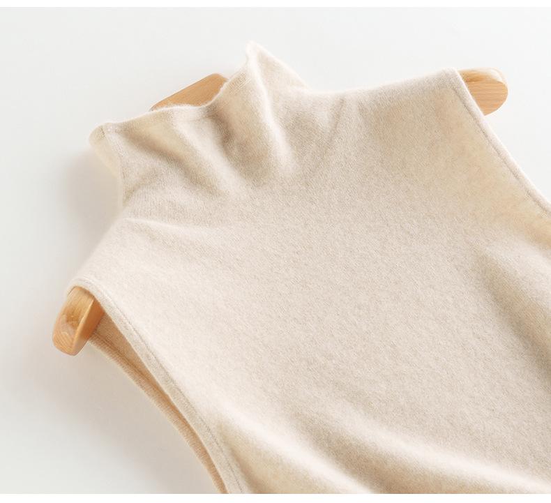 Chaleco de Cachemira 100% Pura para Mujer Otoño e Invierno 2024 Nueva Moda Color Puro Cuello Alto Jersey Tejido sin Mangas