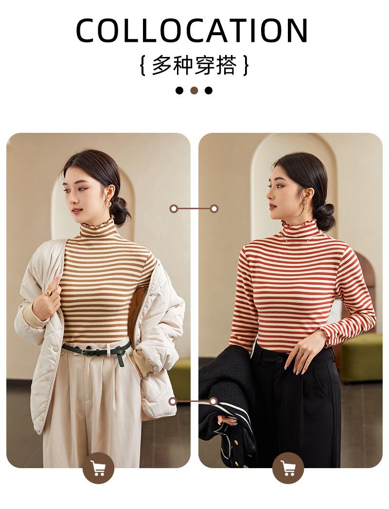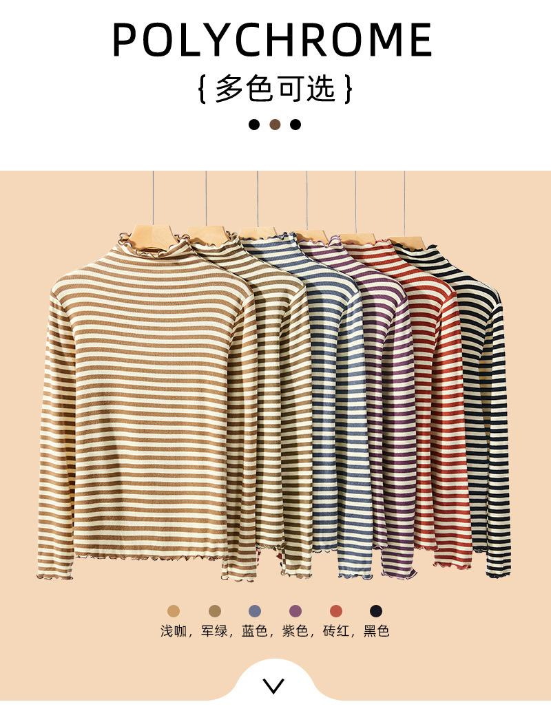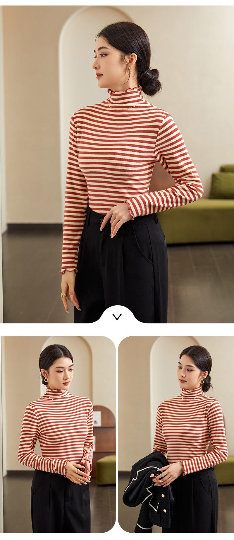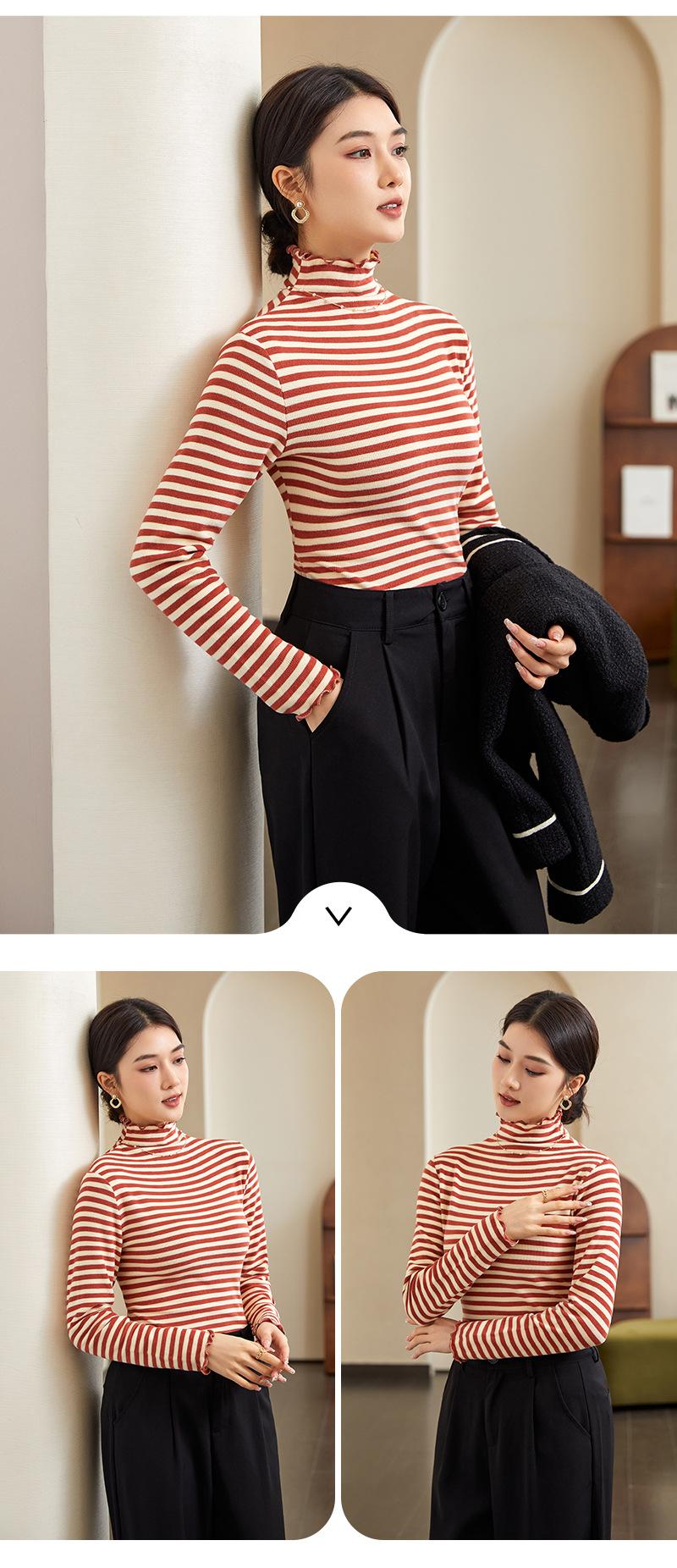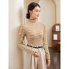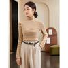 Suéter de cuello alto de otoño e invierno para mujer, estilo occidental, camisa de fondo a rayas que combina con todo, suéter de punto ajustado de manga larga para mujer