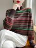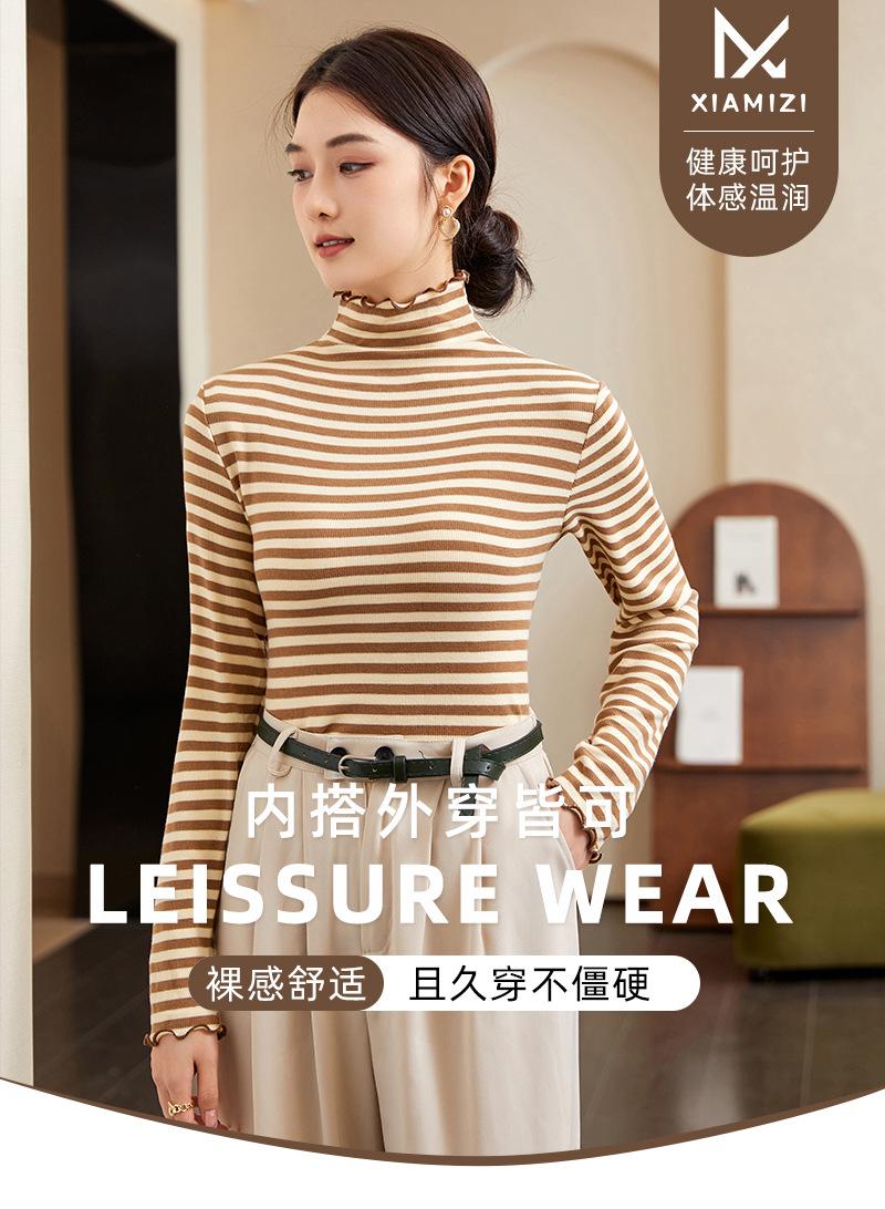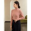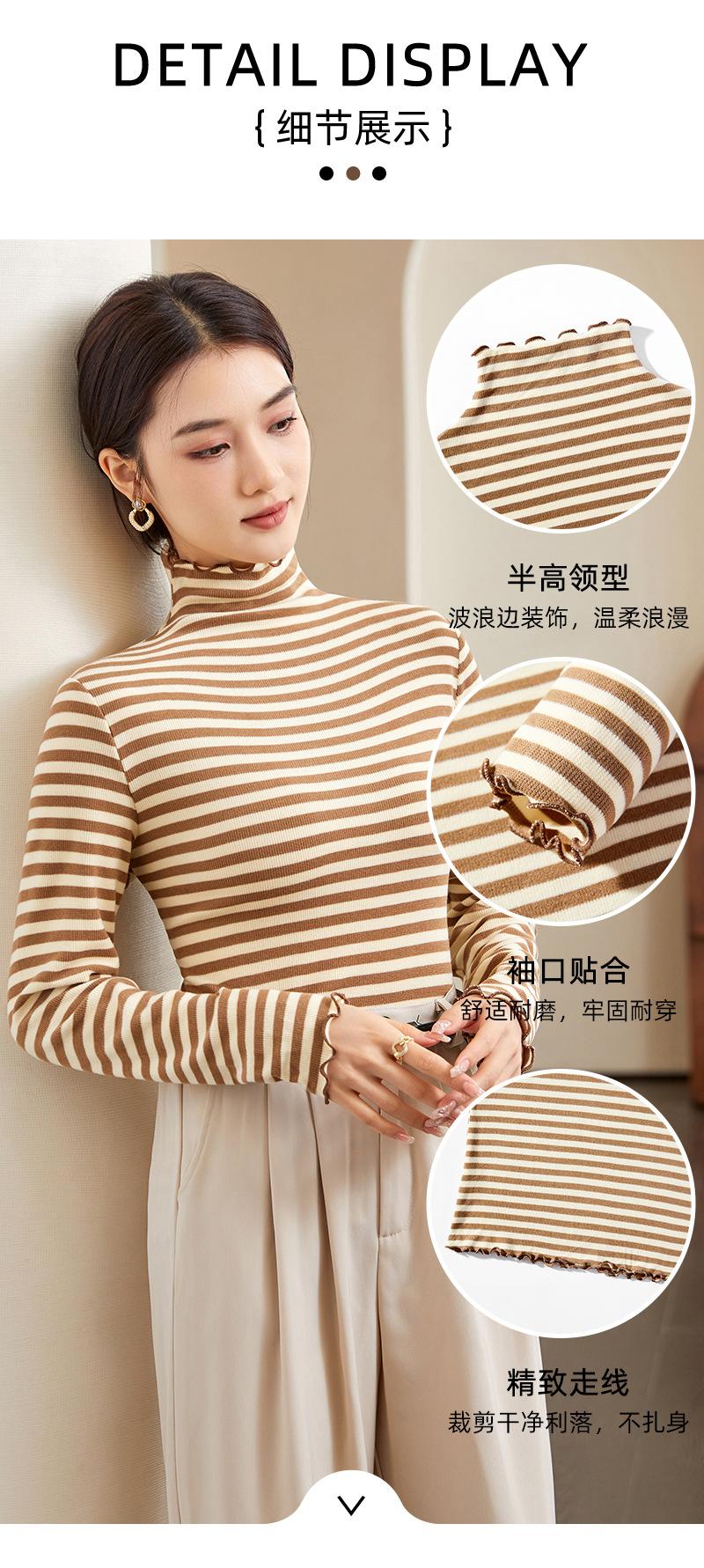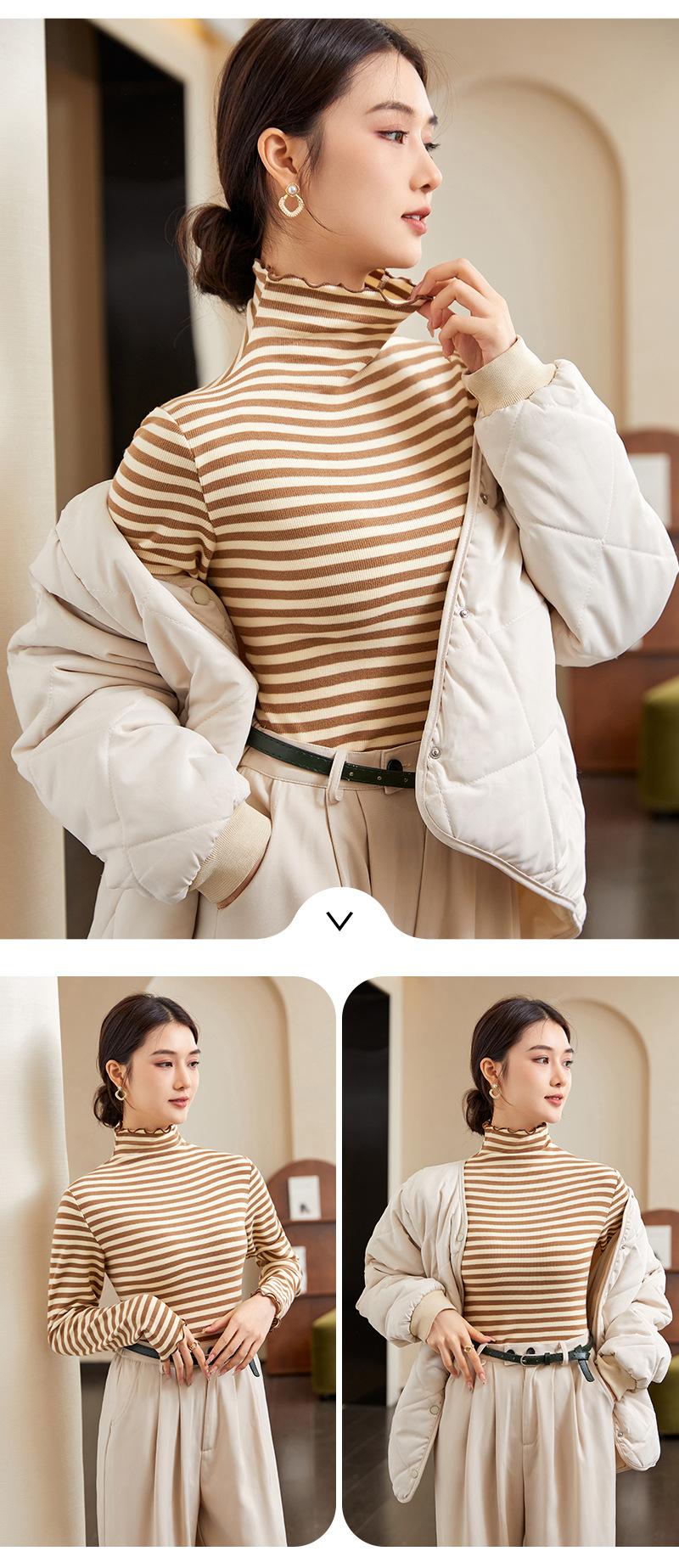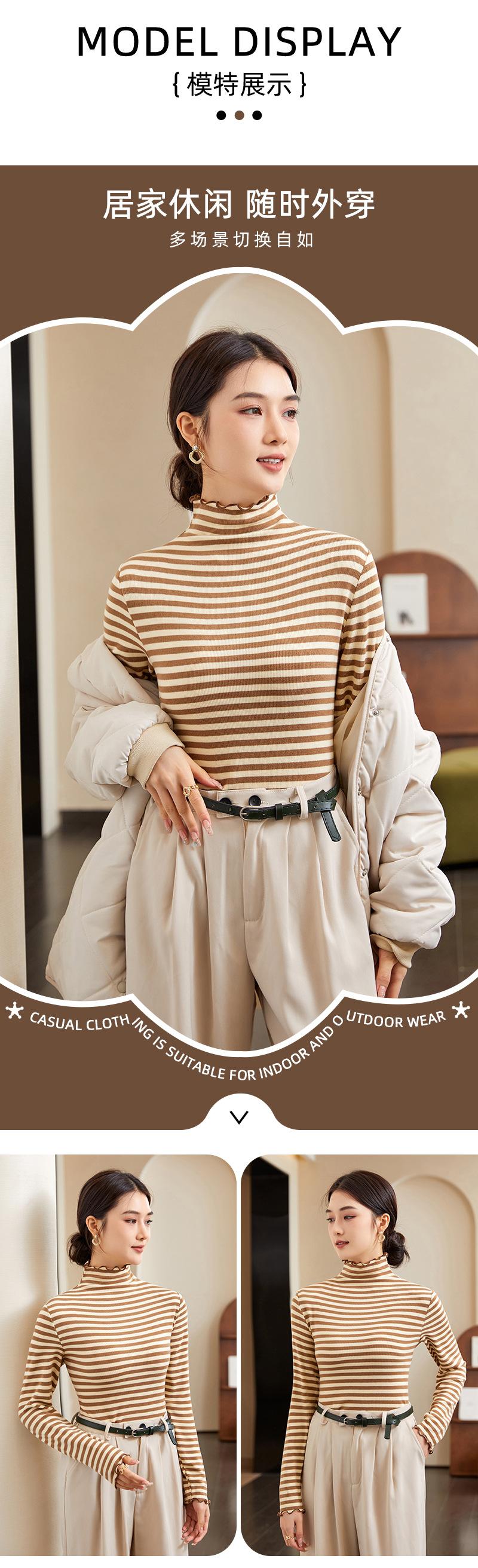 Suéter de cuello alto de otoño e invierno para mujer, estilo occidental, camisa de fondo a rayas que combina con todo, suéter de punto ajustado de manga larga para mujer