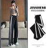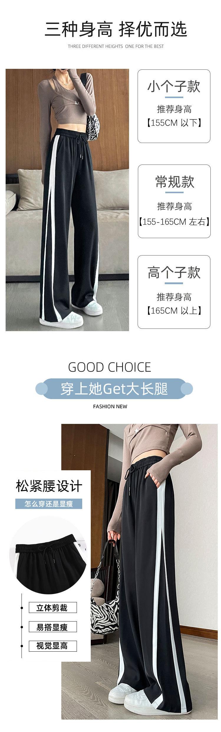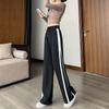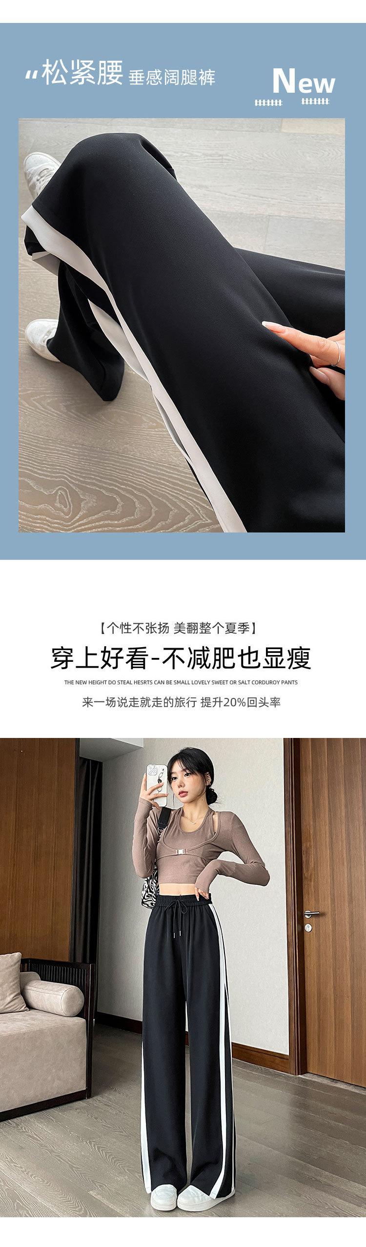 Pantalones de pierna ancha con cordón Pantalones de mujer 2024 Nuevo Cintura alta Recto Holgado Negro Casual Primavera y Verano Ajuste Pantalones deportivos