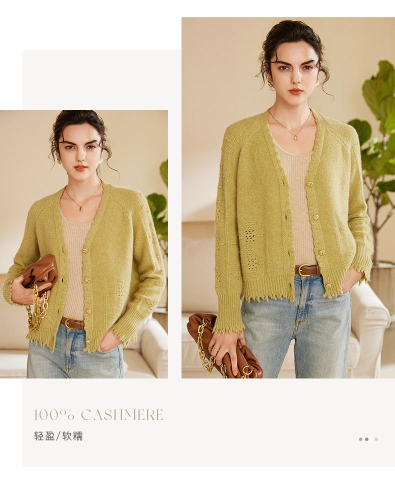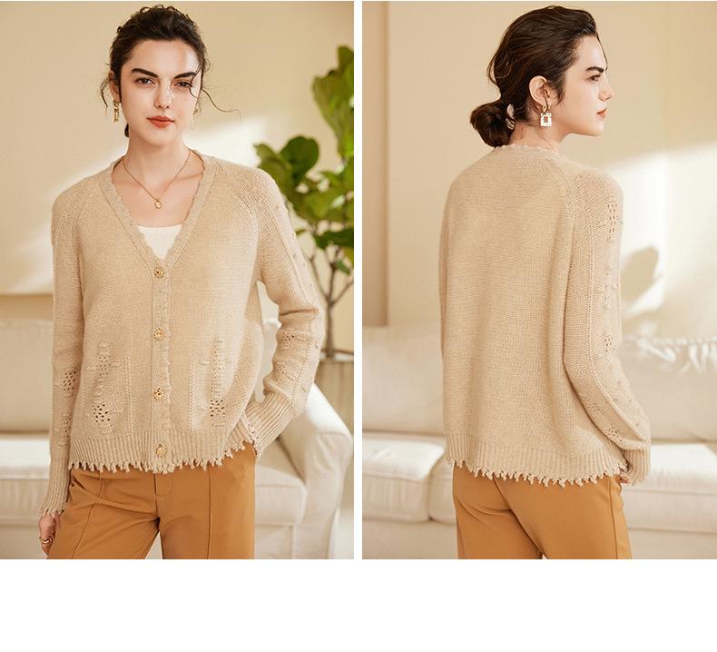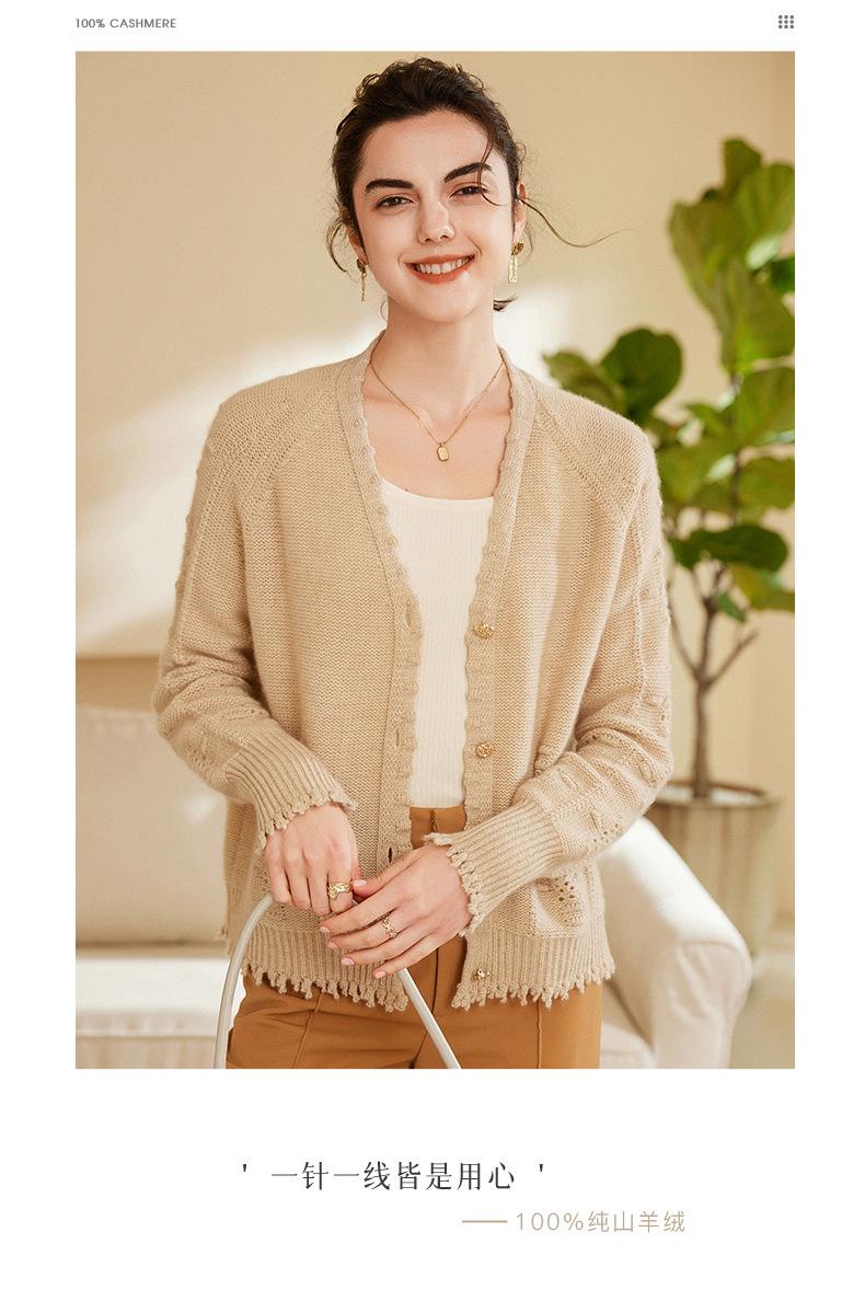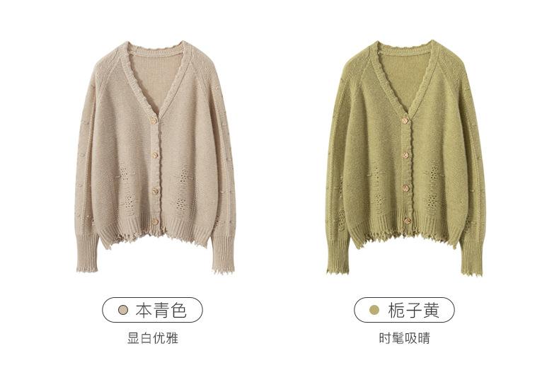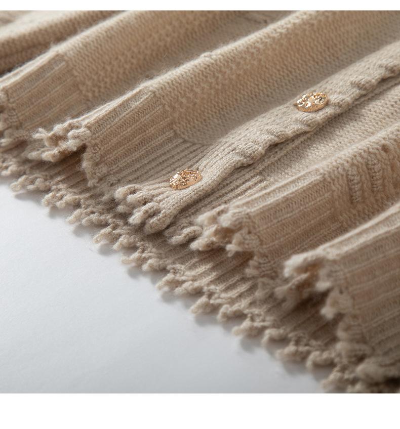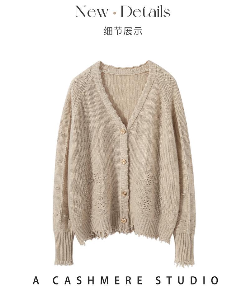 Suéter de Cachemira 100% Pura Otoño e Invierno 2024 Nuevo Suéter de Cachemira Suelto Color Puro Chaqueta Cuello en V Cárdigan con Borlas a la Moda